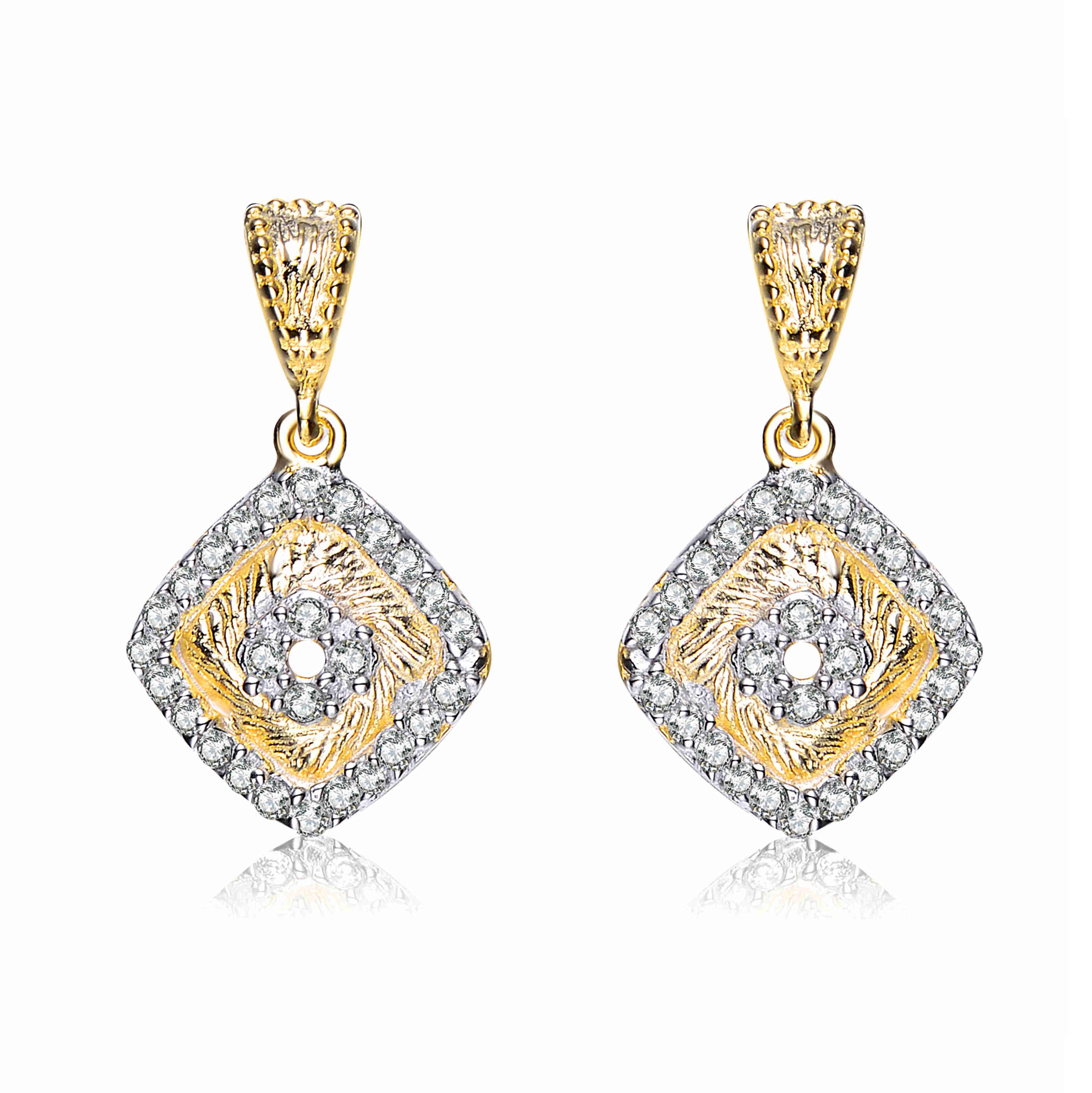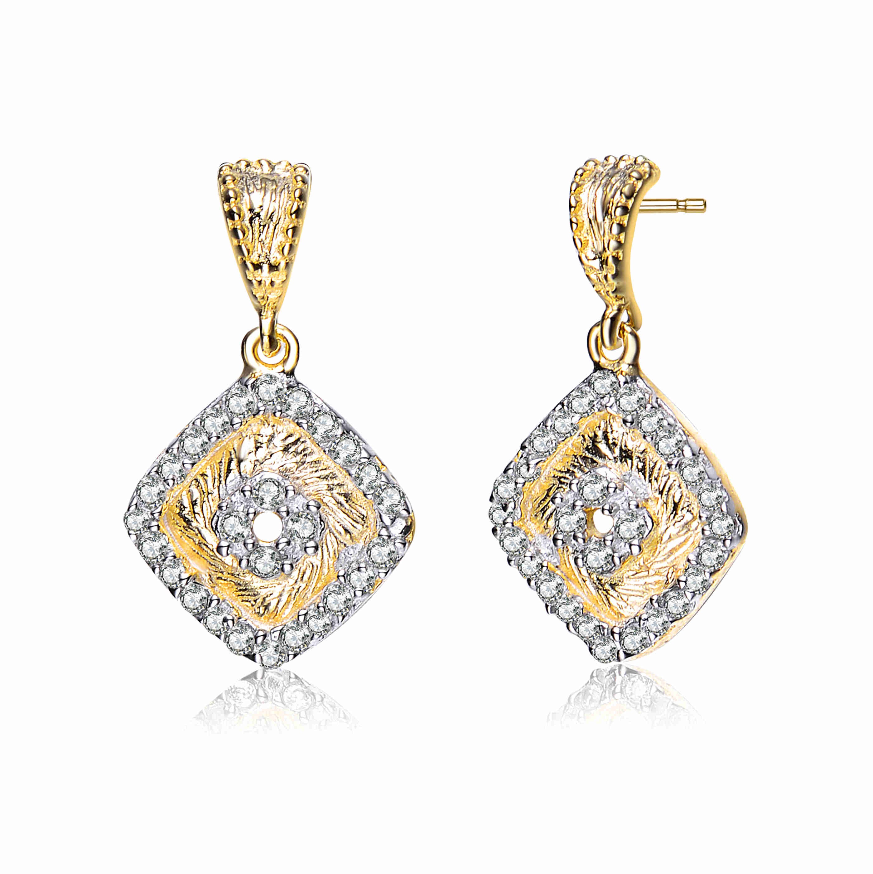 These stylish earrings showcase a -shape pendant with a gold-plated accent and a white cubic zirconia border. Crafted with sterling silver, these earrings shine with a highly polished finish and secure with butterfly clasps.