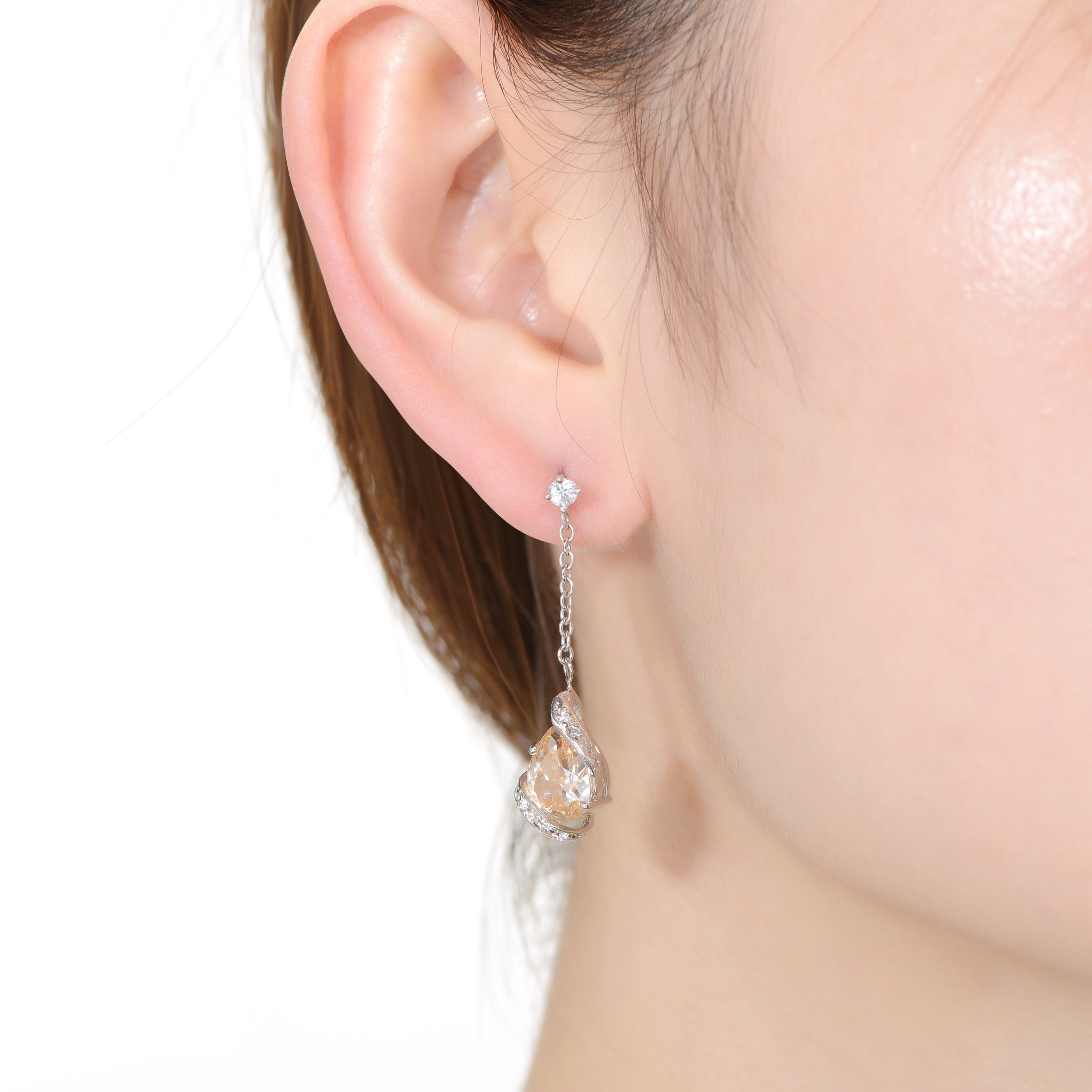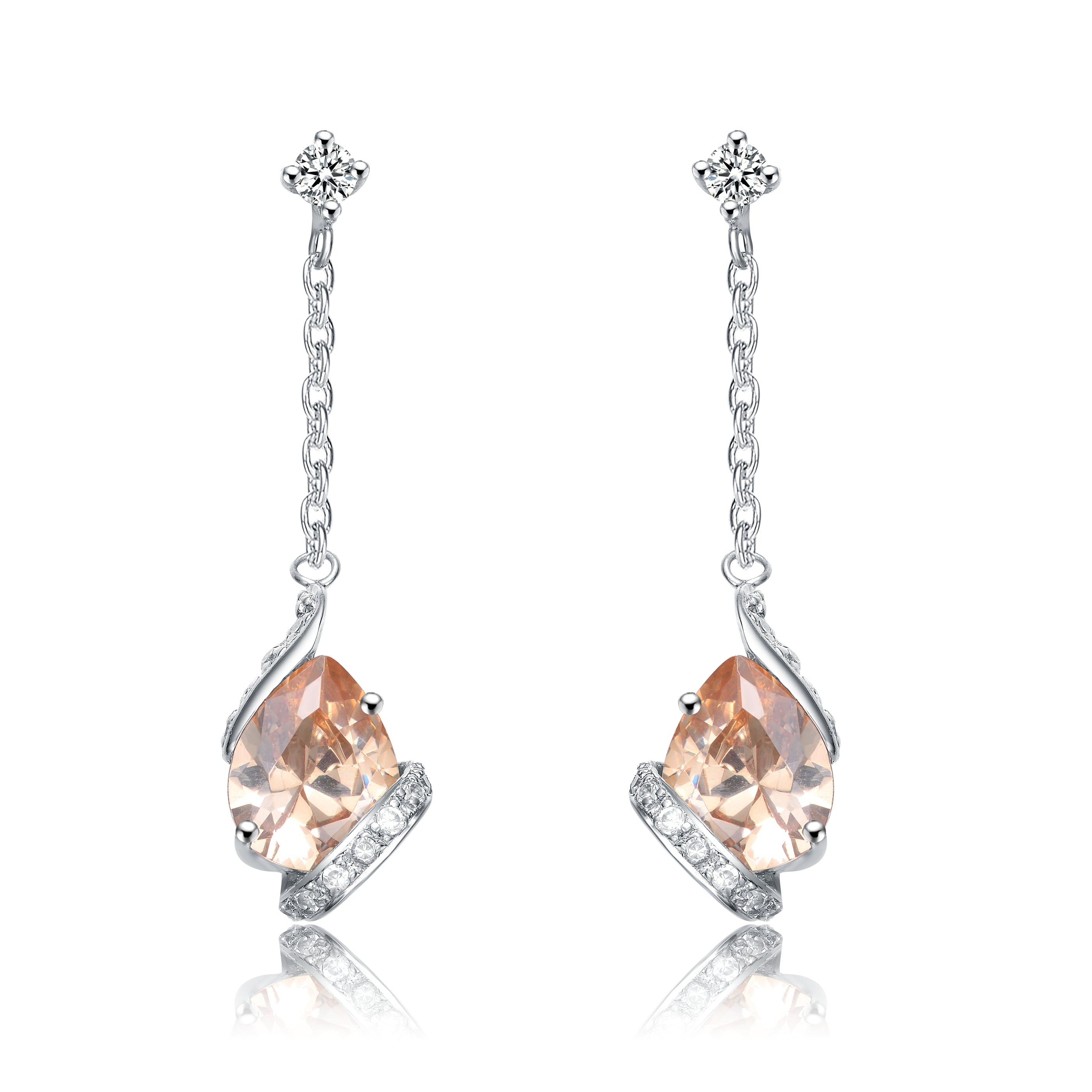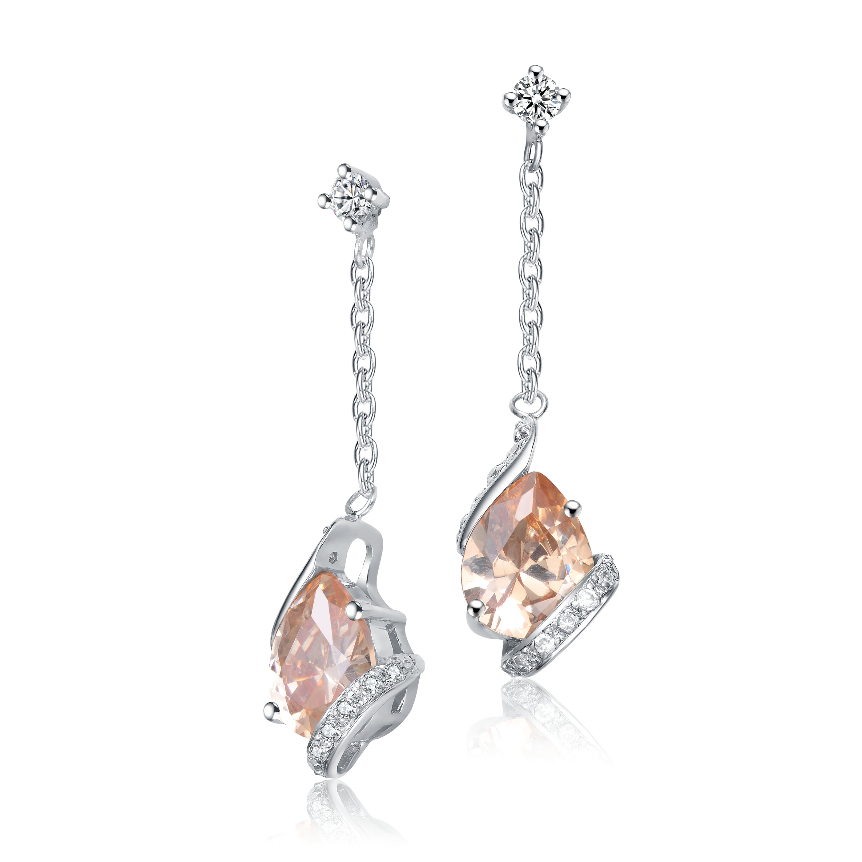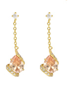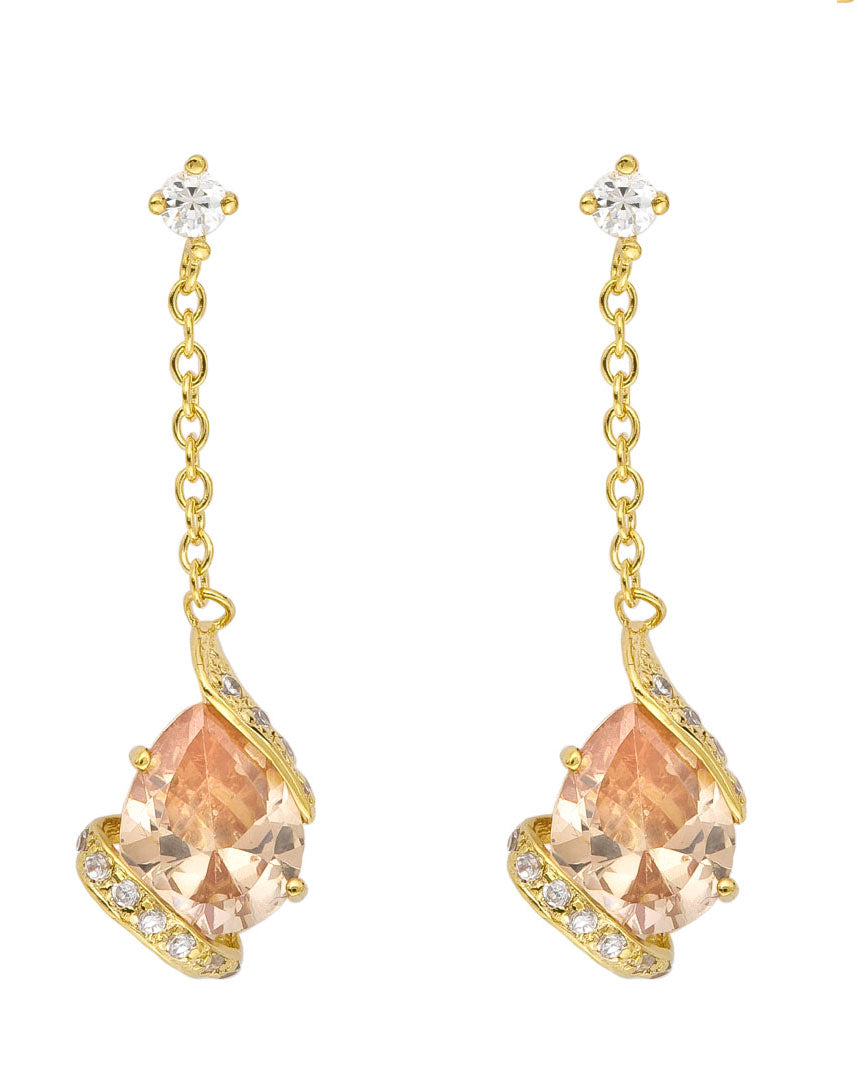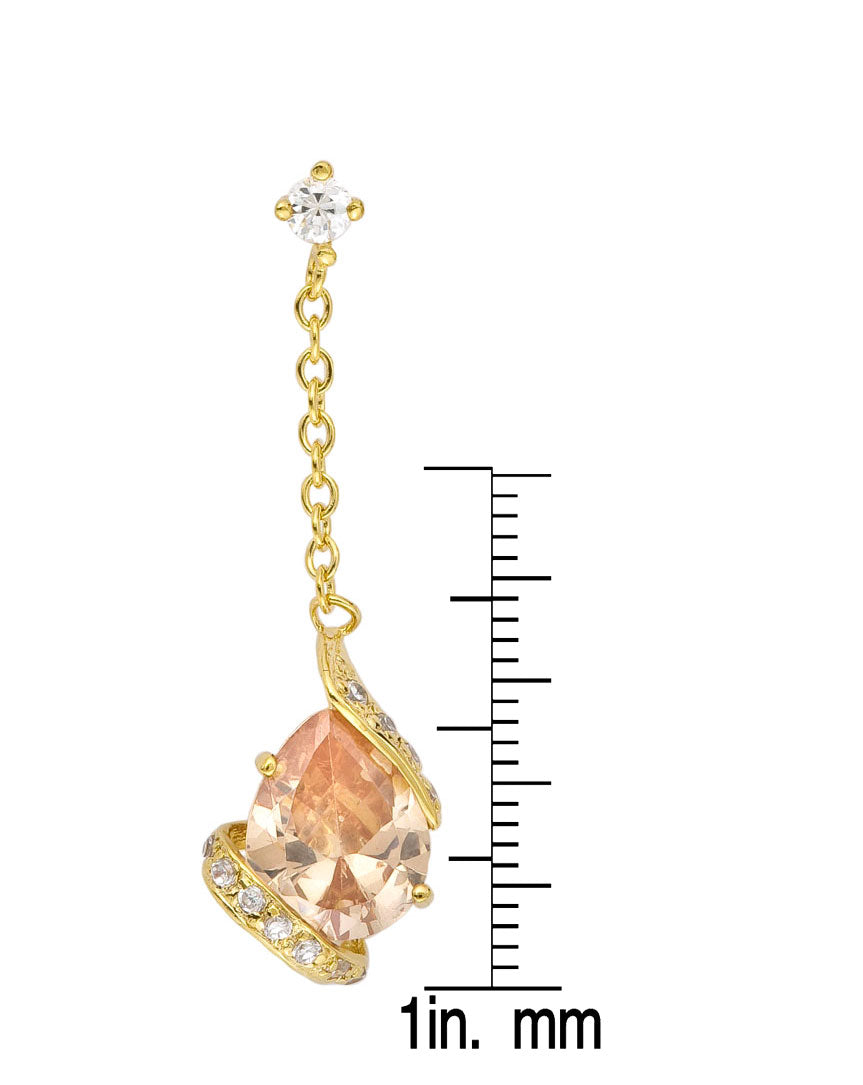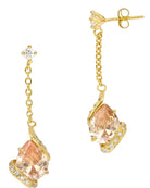Cubic zirconia sterling silver gold plated champagne pear shape long drop earrings. Whether worn for a special occasion or as a statement piece, it’s sure to turn heads and capture attention.