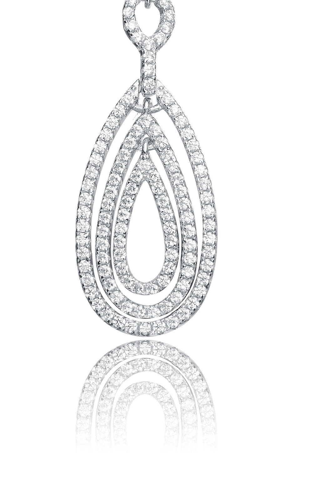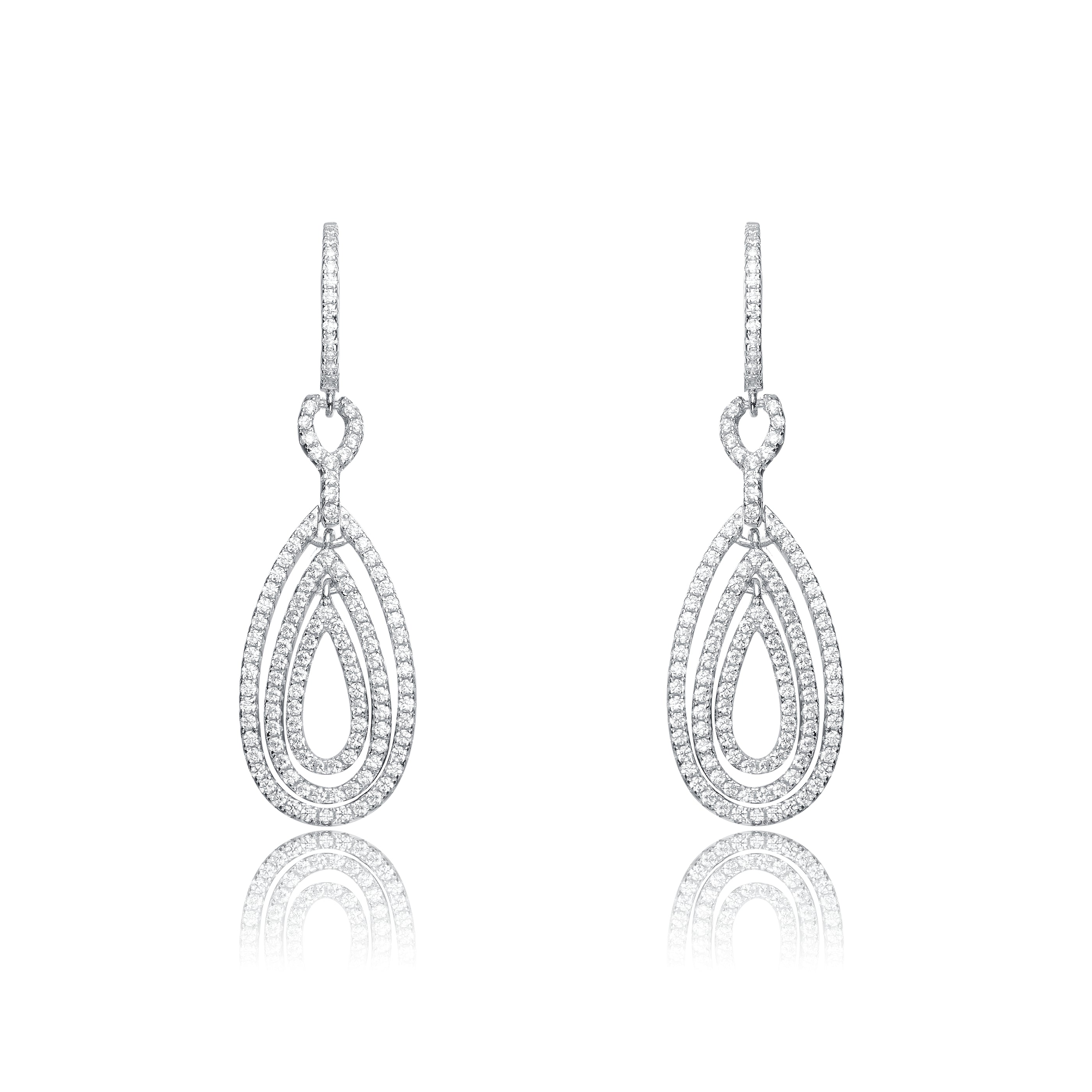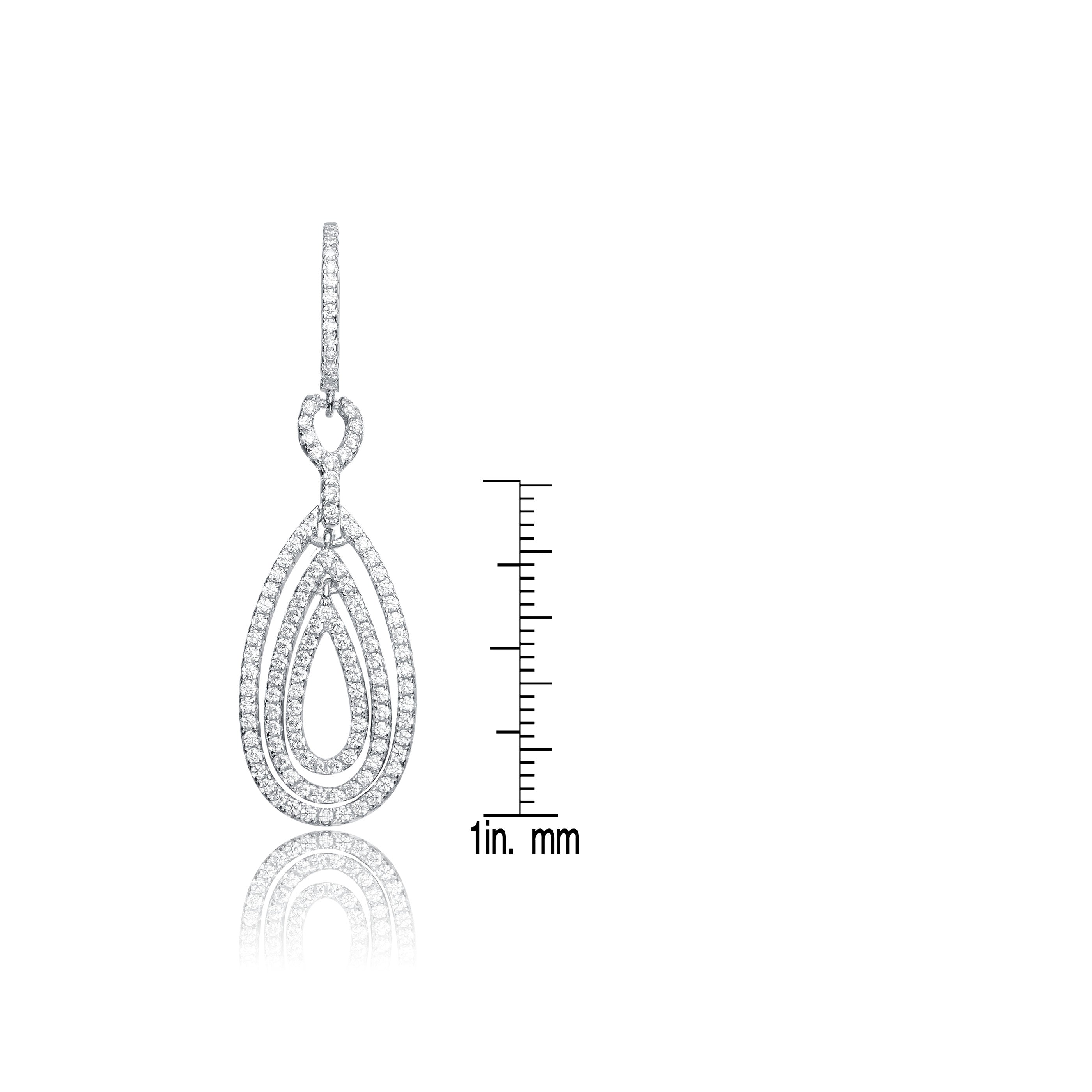 Cubic Zirconia Sterling Silver Rhodium Plated Outlined Pear Drop Earrings