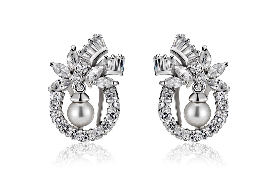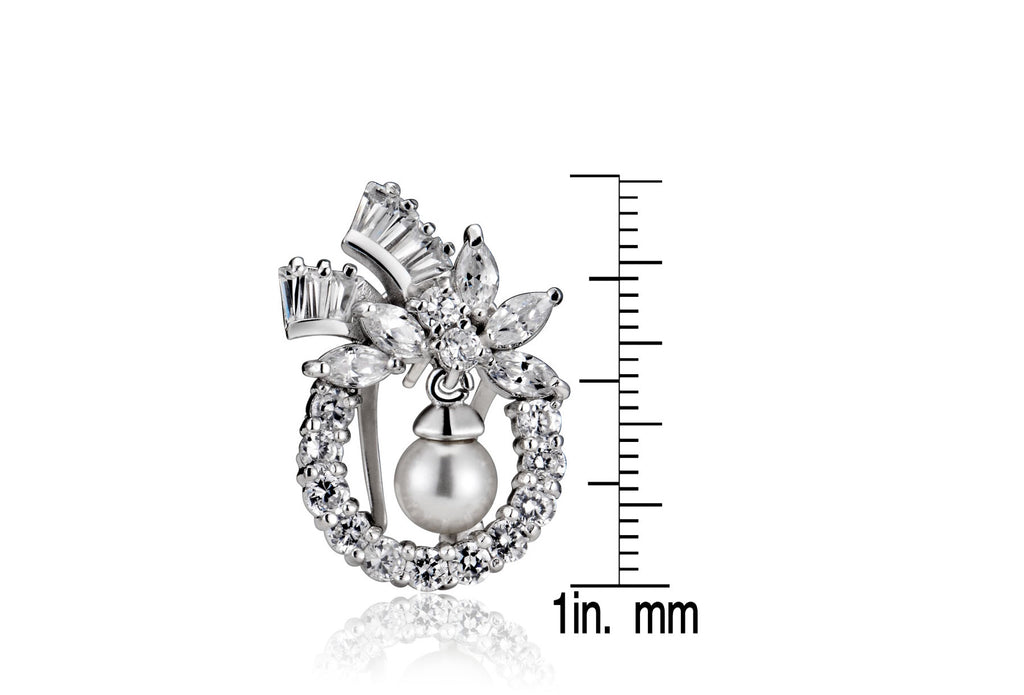 Cubic Zirconia Sterling Silver Rhodium Plated Pearl Earrings