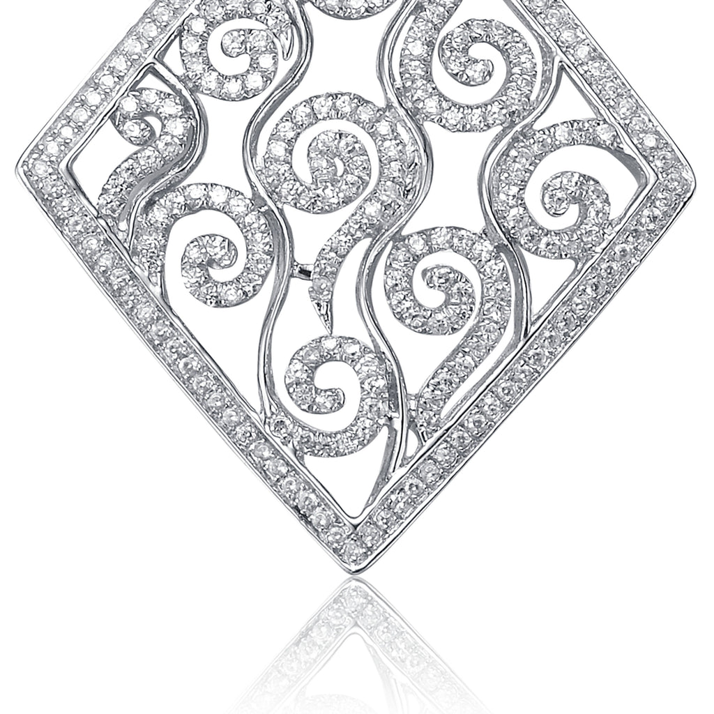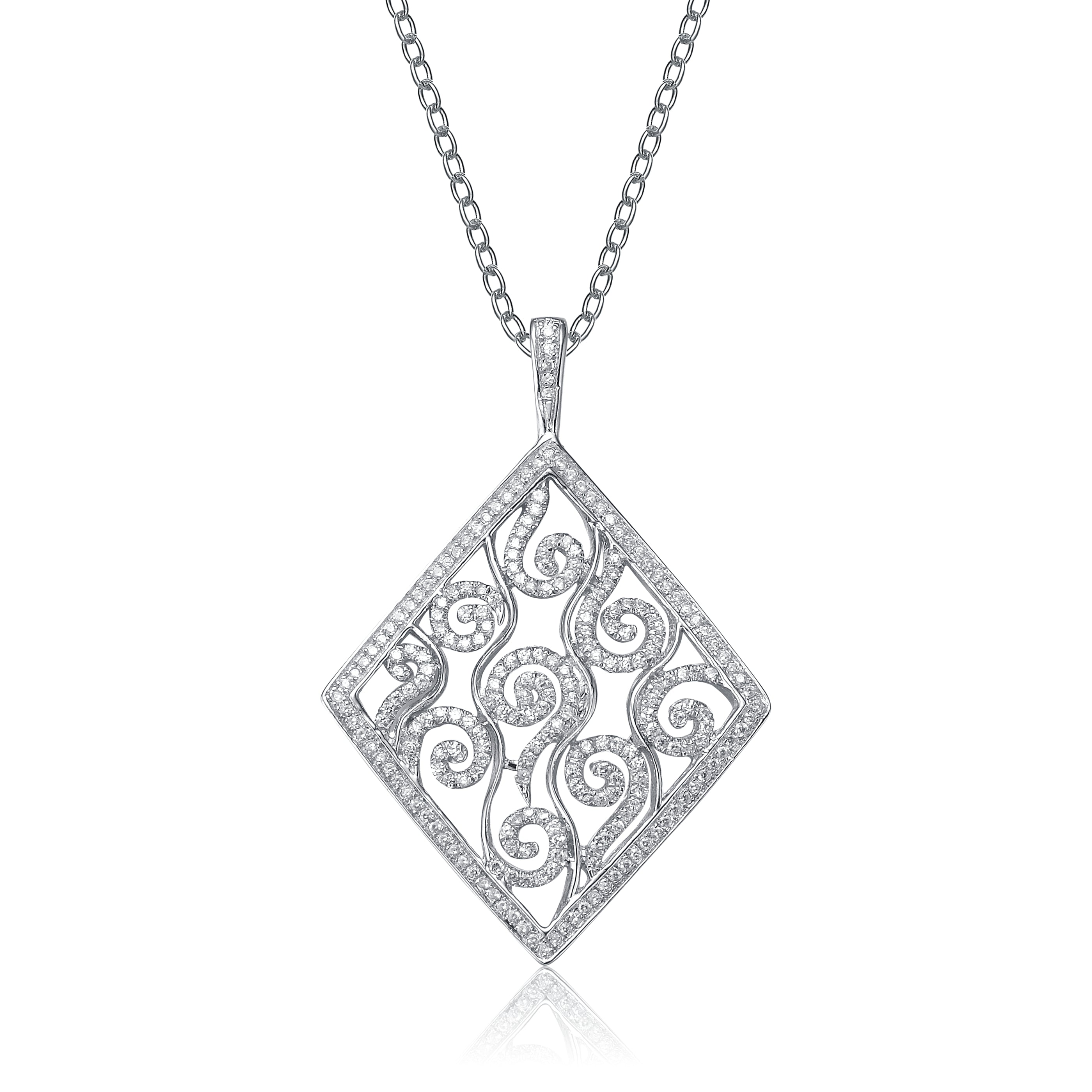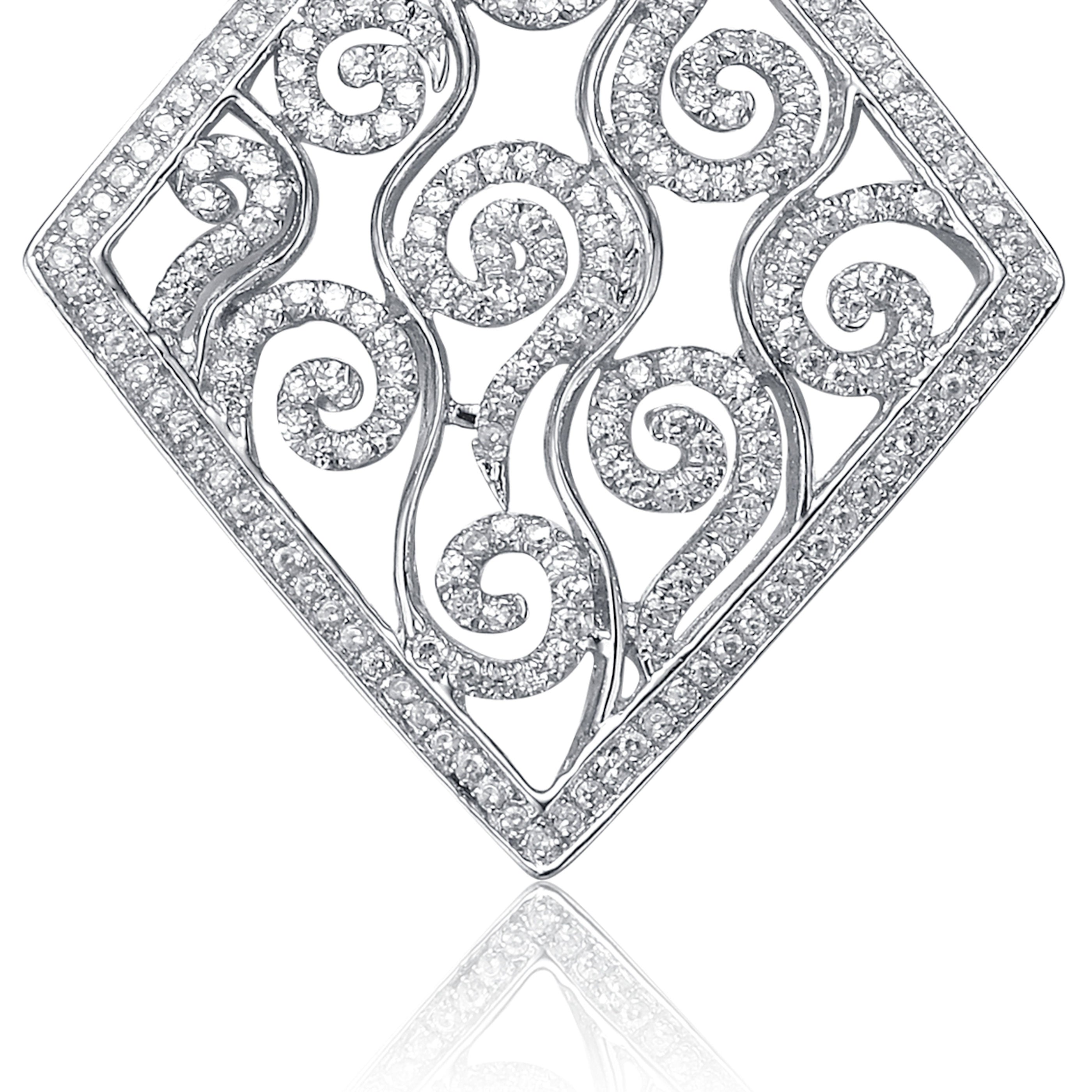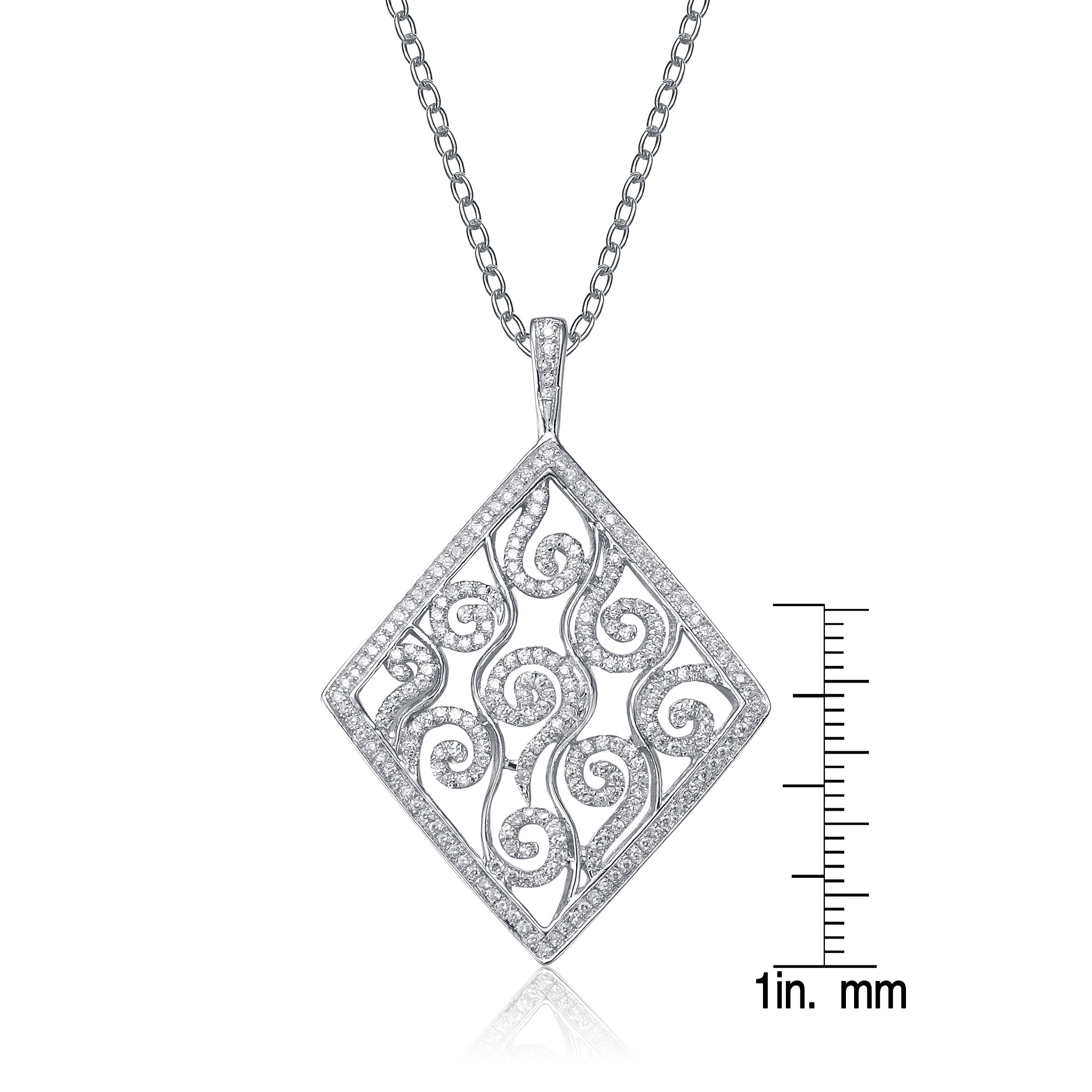 Cubic Zirconia Sterling Silver Rhodium Plated Shape Swirl Design Drop Pendant