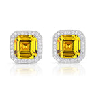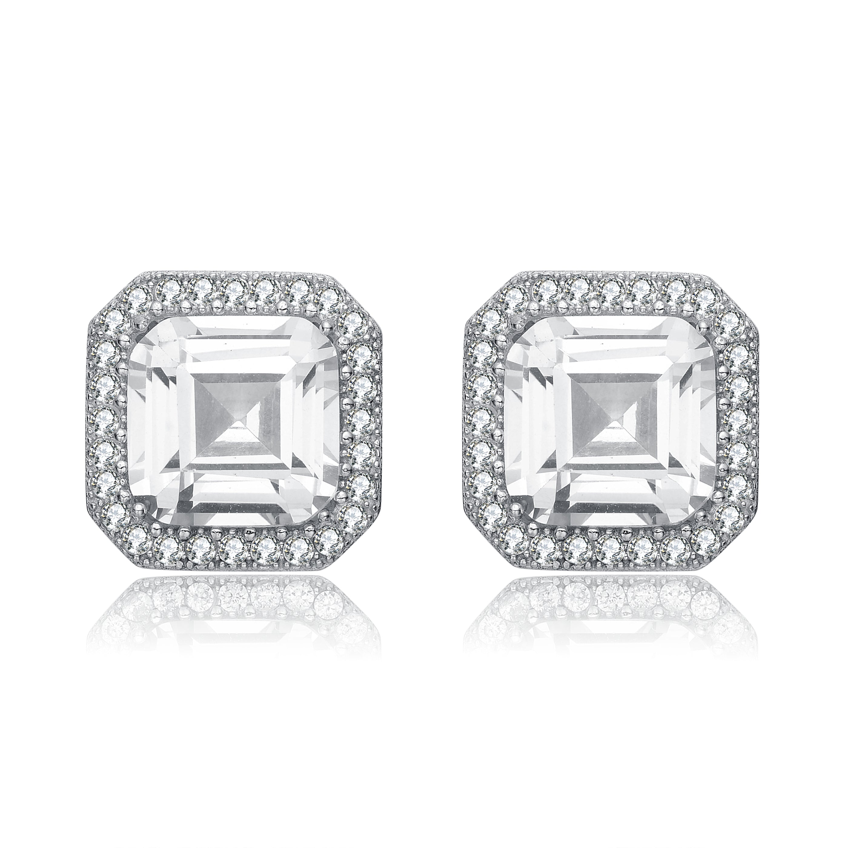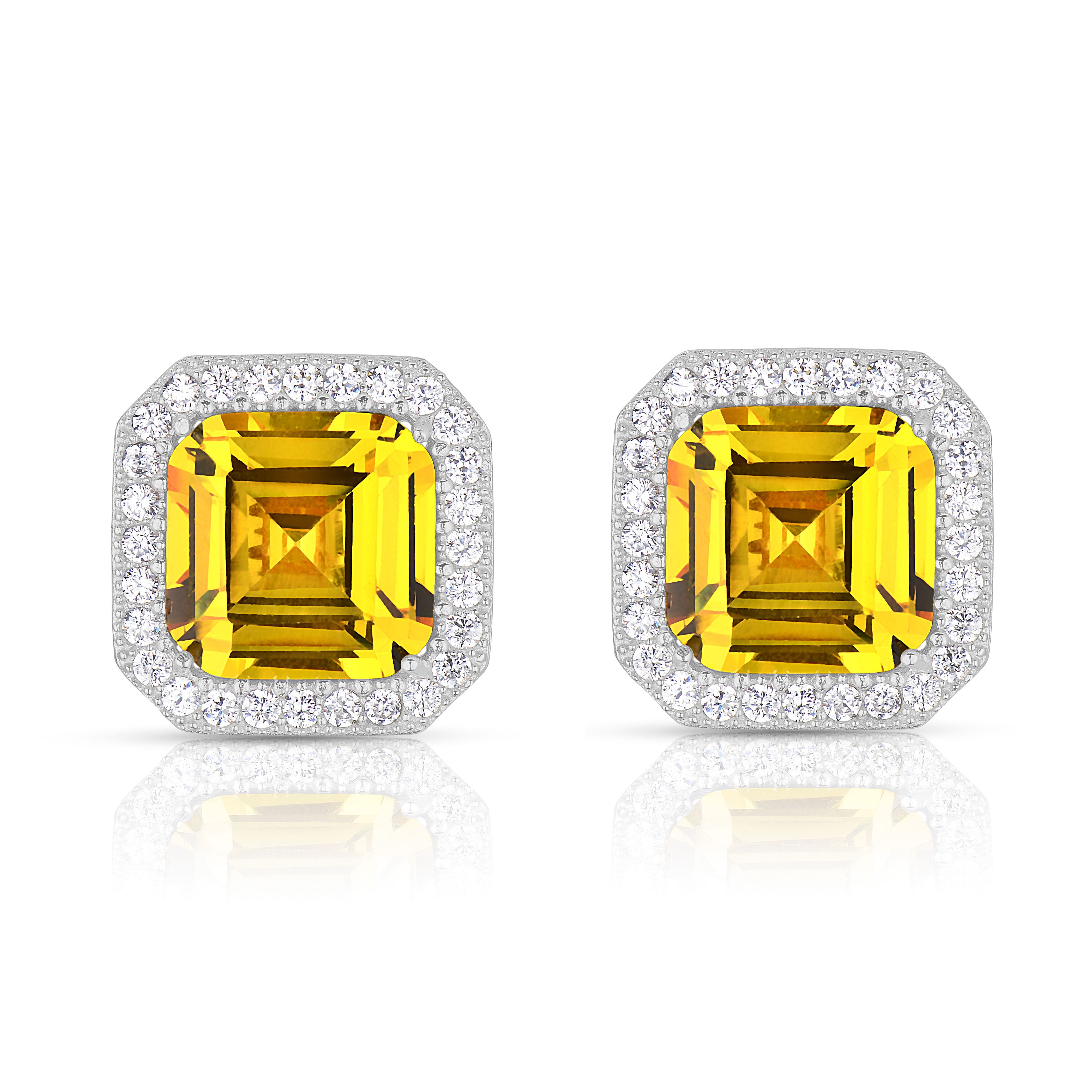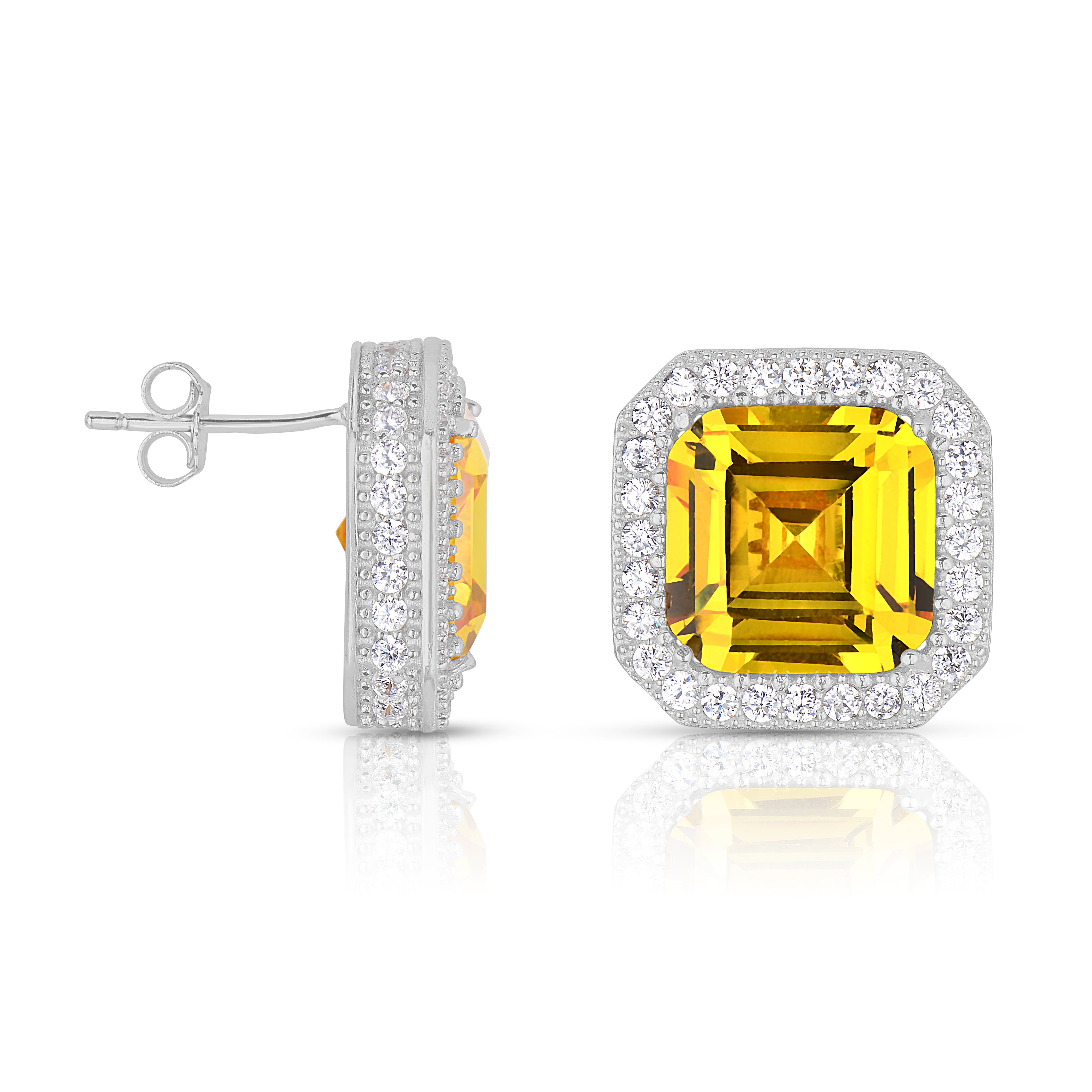 These stud earrings enthrall with an octadic cornered square railing with a sprinkle of shiny cubic dotting surrounds a center encrusted voluminous cubic stone.
