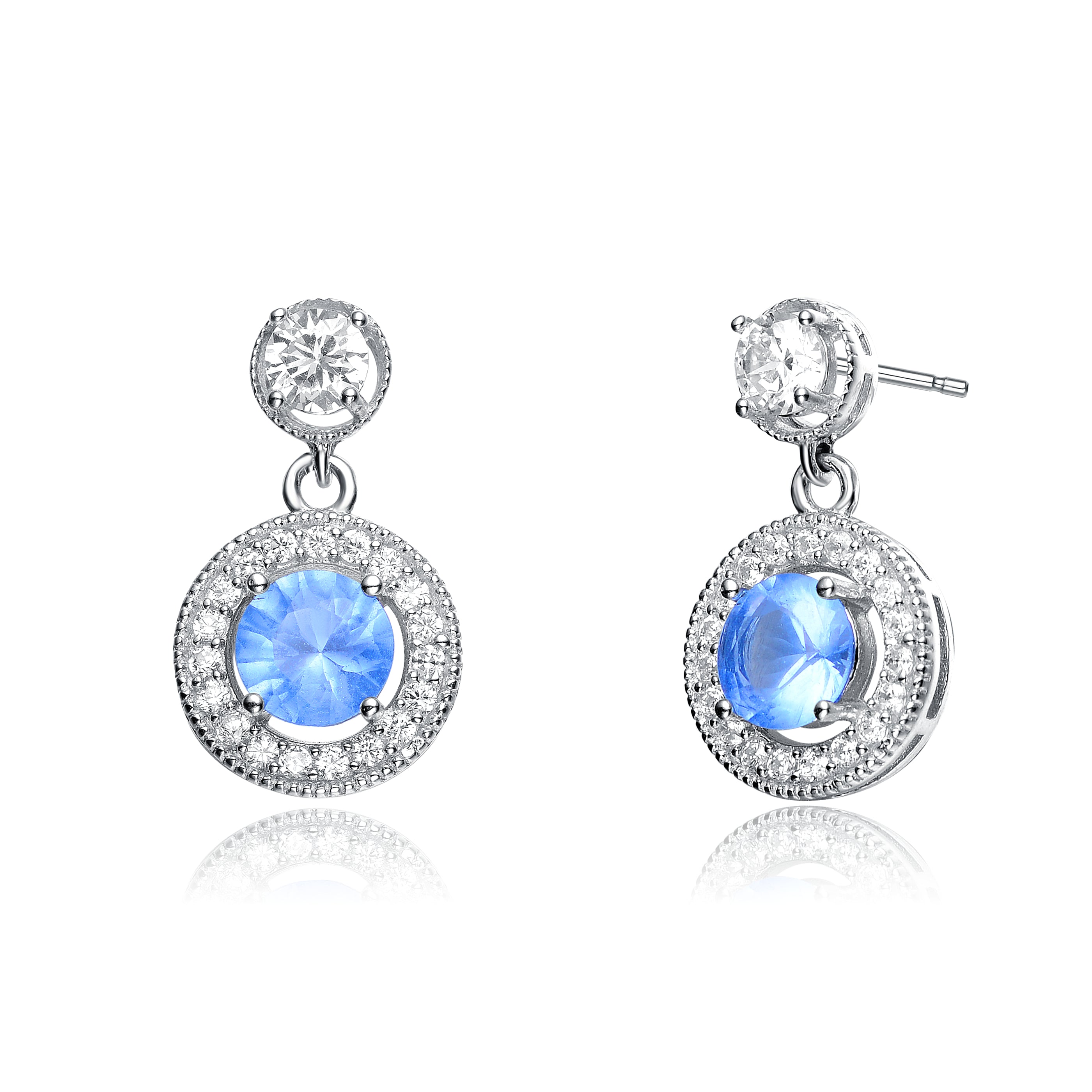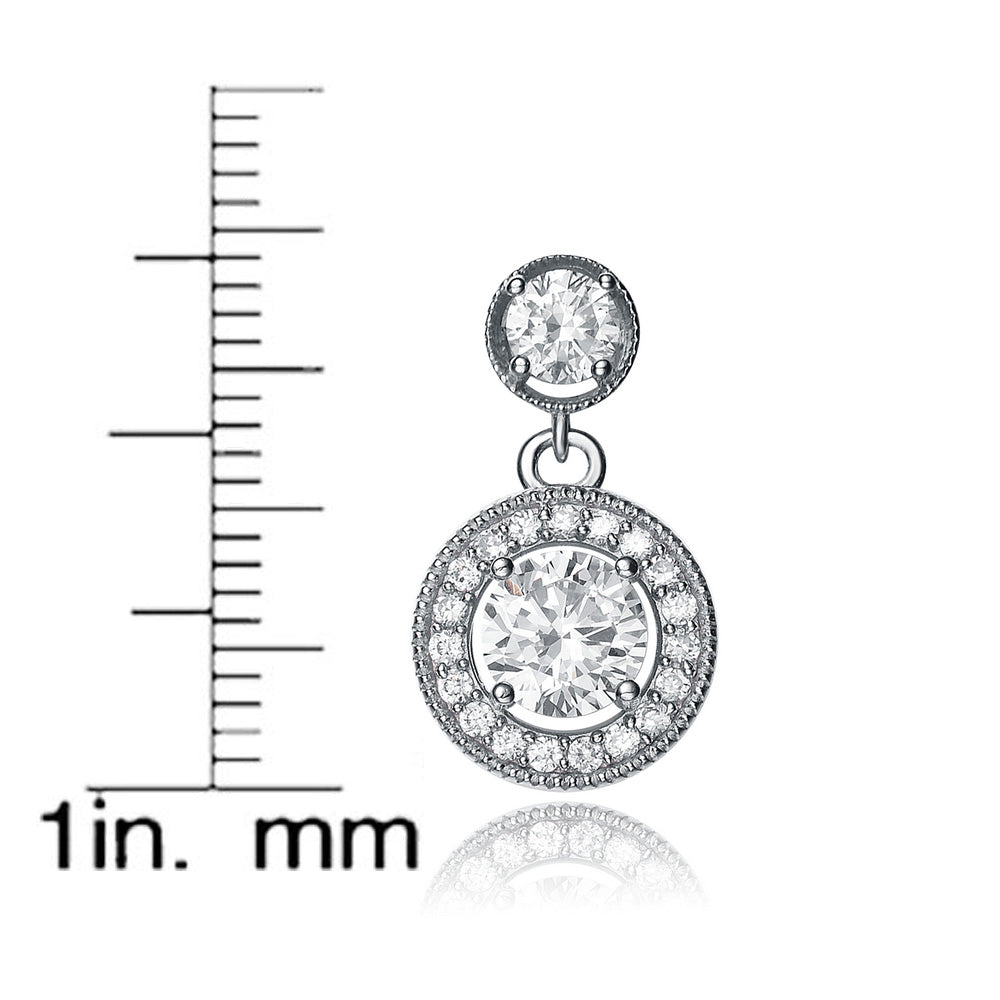 These nice drop earrings feature white round-cut cubic zirconia stones outlined with smaller ones. Crafted of 0.925 sterling silver, the earrings secure with butterfly clasps.