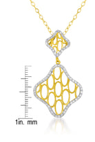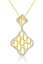This delicate, dainty, and vintage-inspired double -shaped pendant is crafted of .925 sterling silver with gold plating. The necklace features an intricate, open-worked petals design with textured detailing