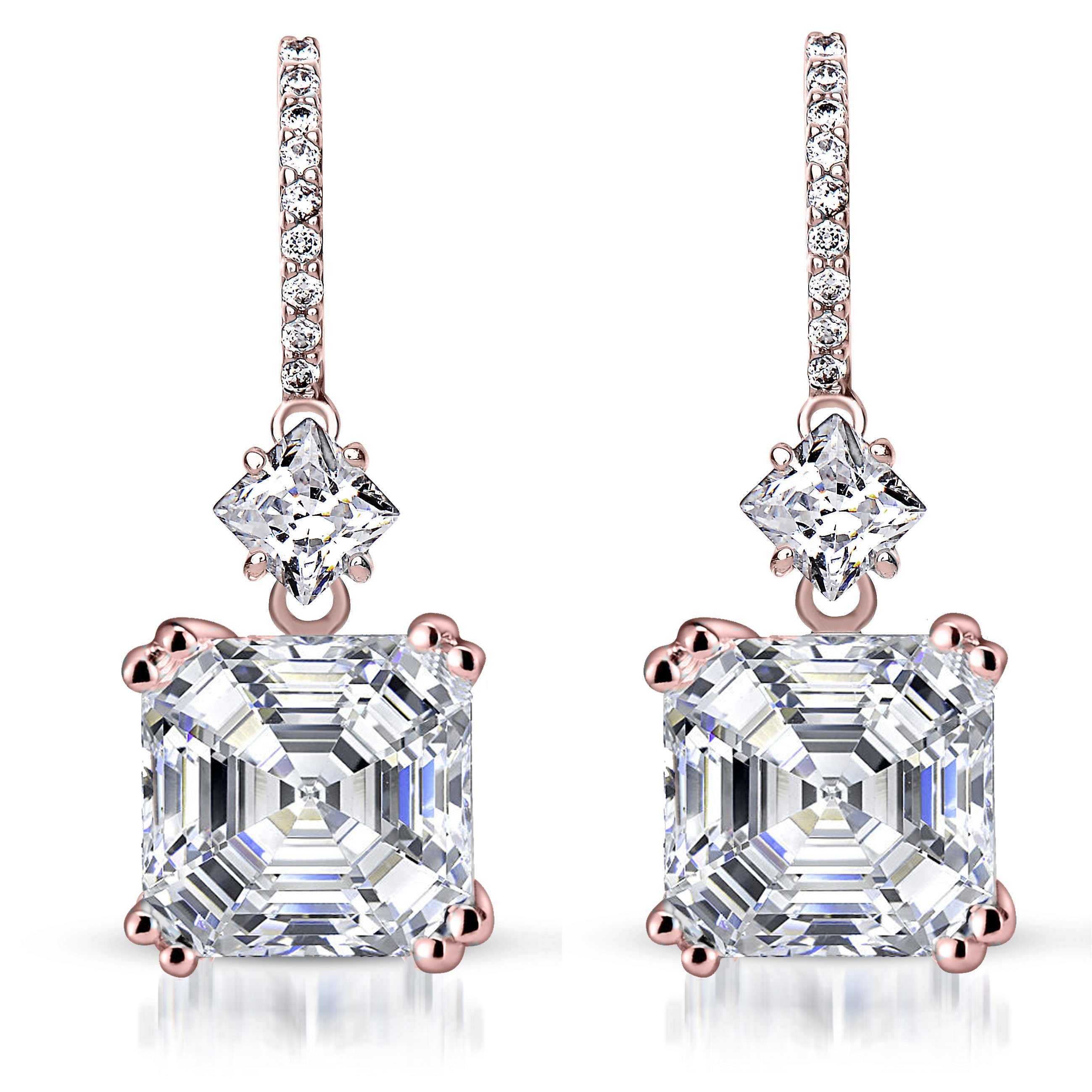 These gorgeous asscher-cut cubic zirconia drop earrings add sparkle and style to any ensemble. In your choice of highly polished rose gold or sterling silver settings, these dazzlers are an eye-catching addition to your jewelry collection