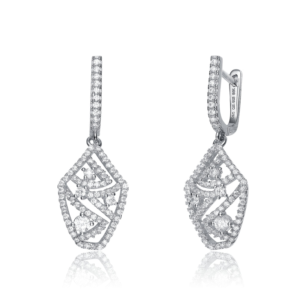 These dainty dangling earrings are decorated with white round-cut cubic zirconia stones. Crafted of .925 sterling silver, the earring secure with clip-in clasps.