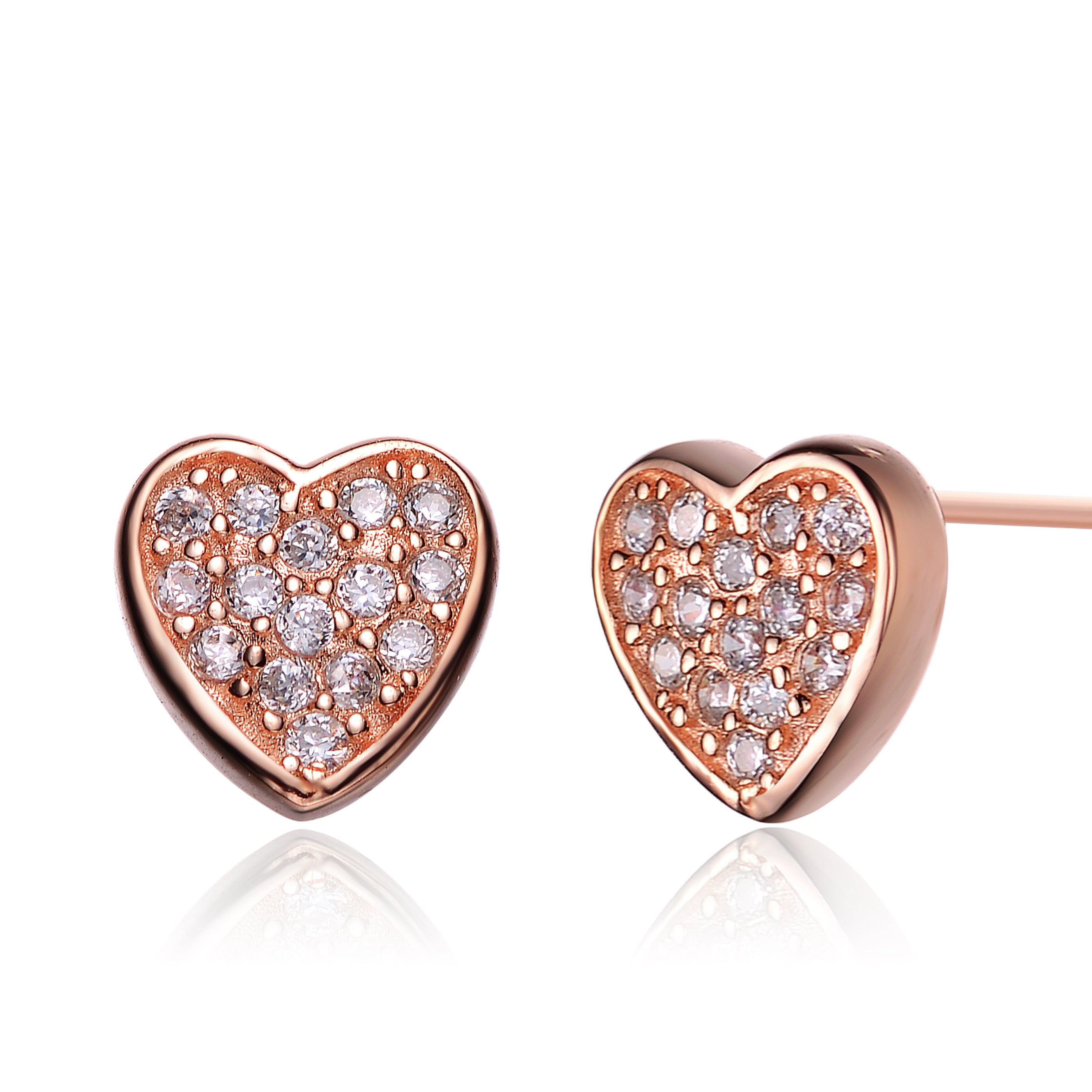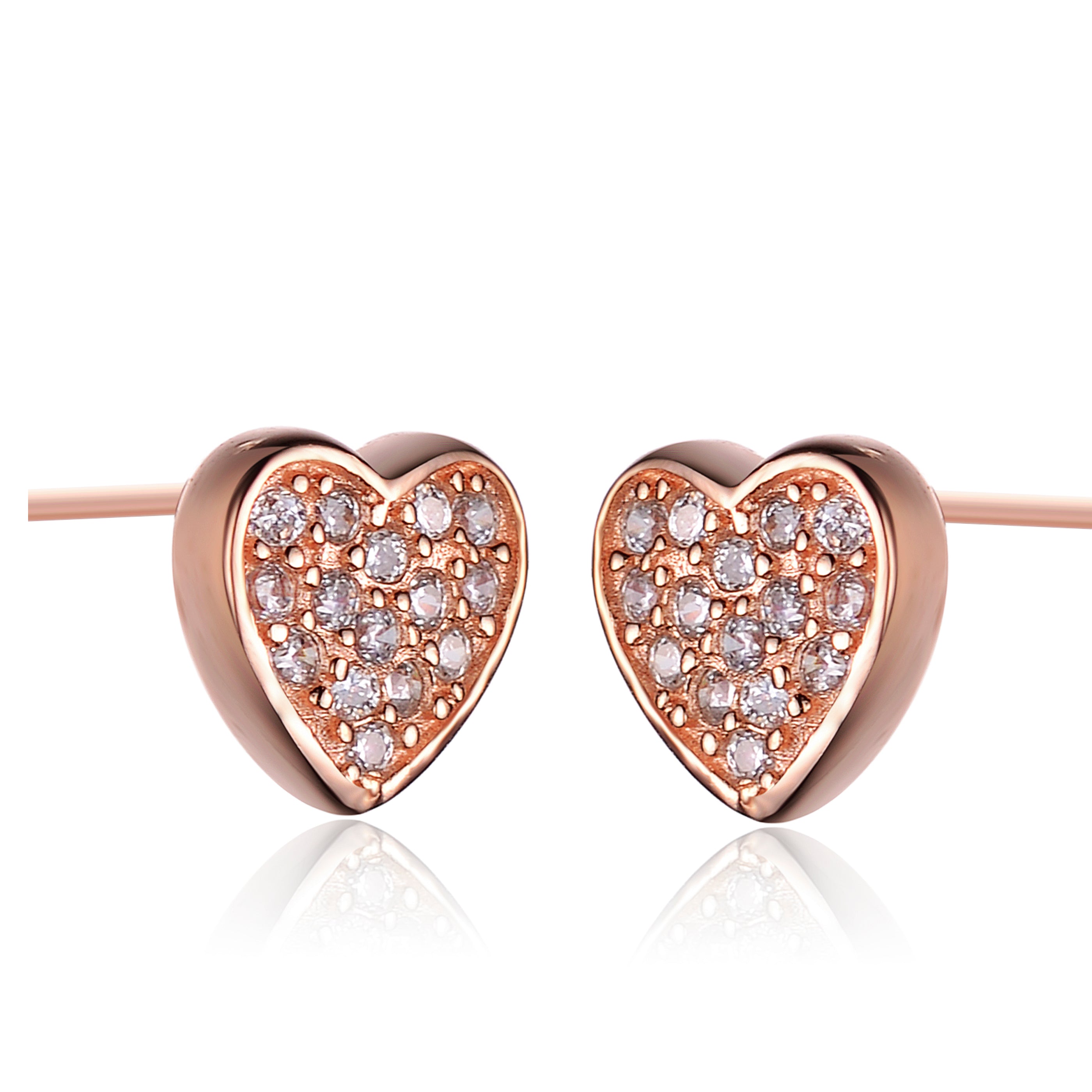 Cubic zirconia sterling silver rose plated heart shape earrings features beautiful heart design adorned with cubic zirconia.