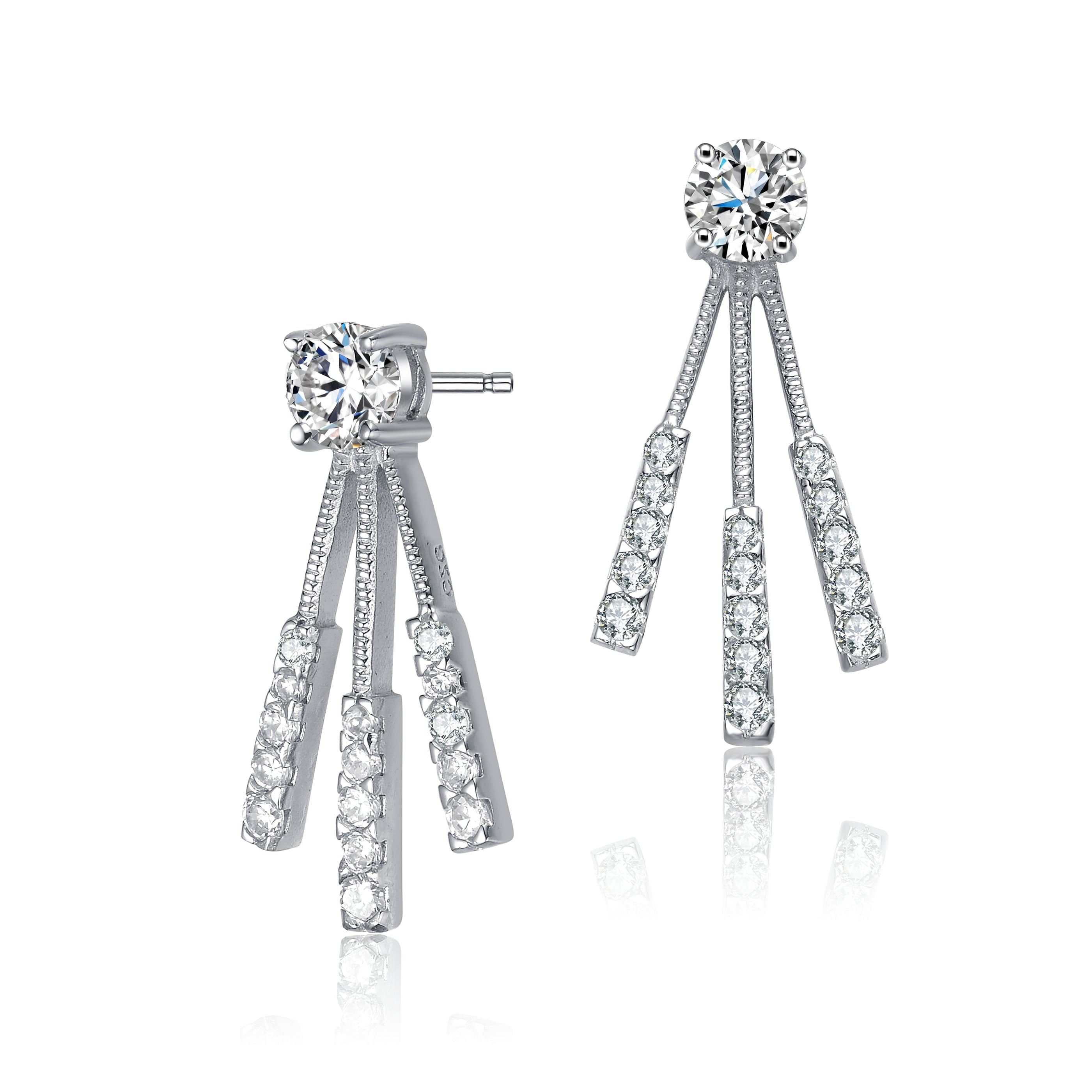 Crafted with care, these earrings feature lustrous sterling silver, renowned for its durability and radiant shine. The clear cubic zirconia gemstones exude a brilliant sparkle reminiscent of diamonds, catching the light with every movement. Each stone is meticulously cut and faceted to maximize its dazzling effect, creating a captivating display of shimmer and shine.