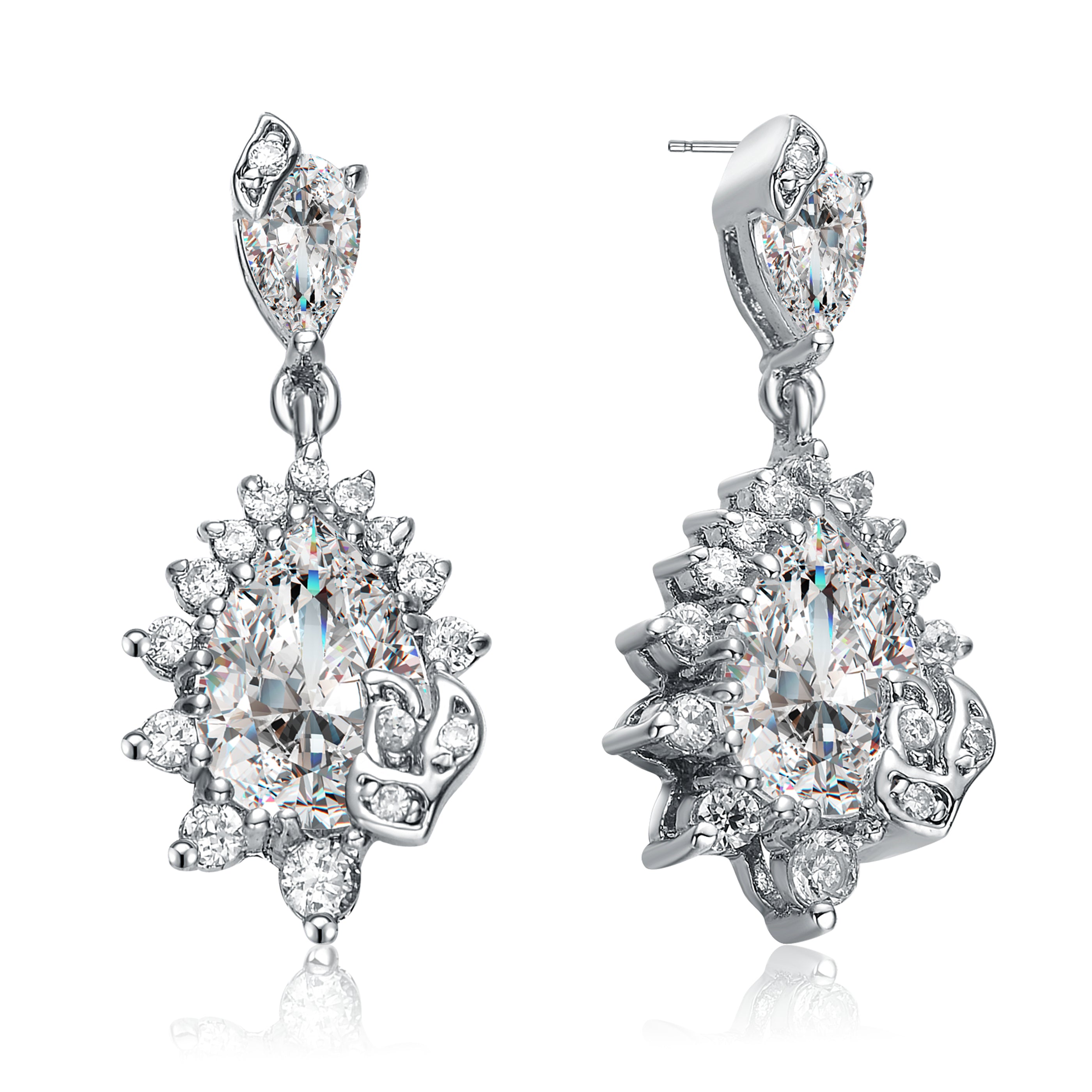 CZ Sterling Silver Dangling Pear Shape Earrings