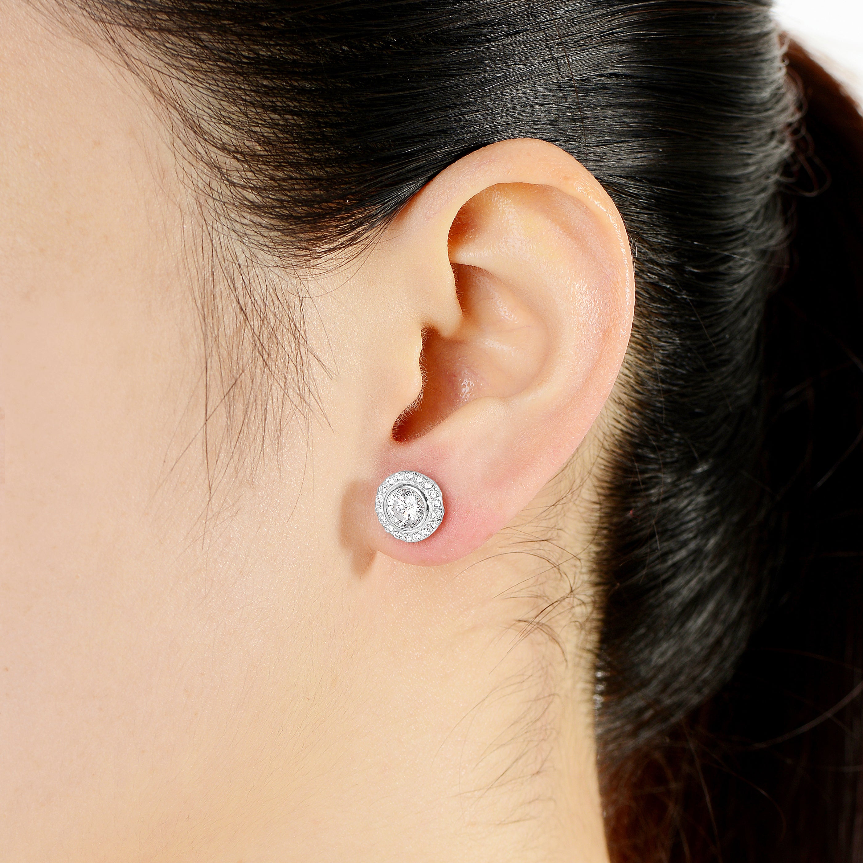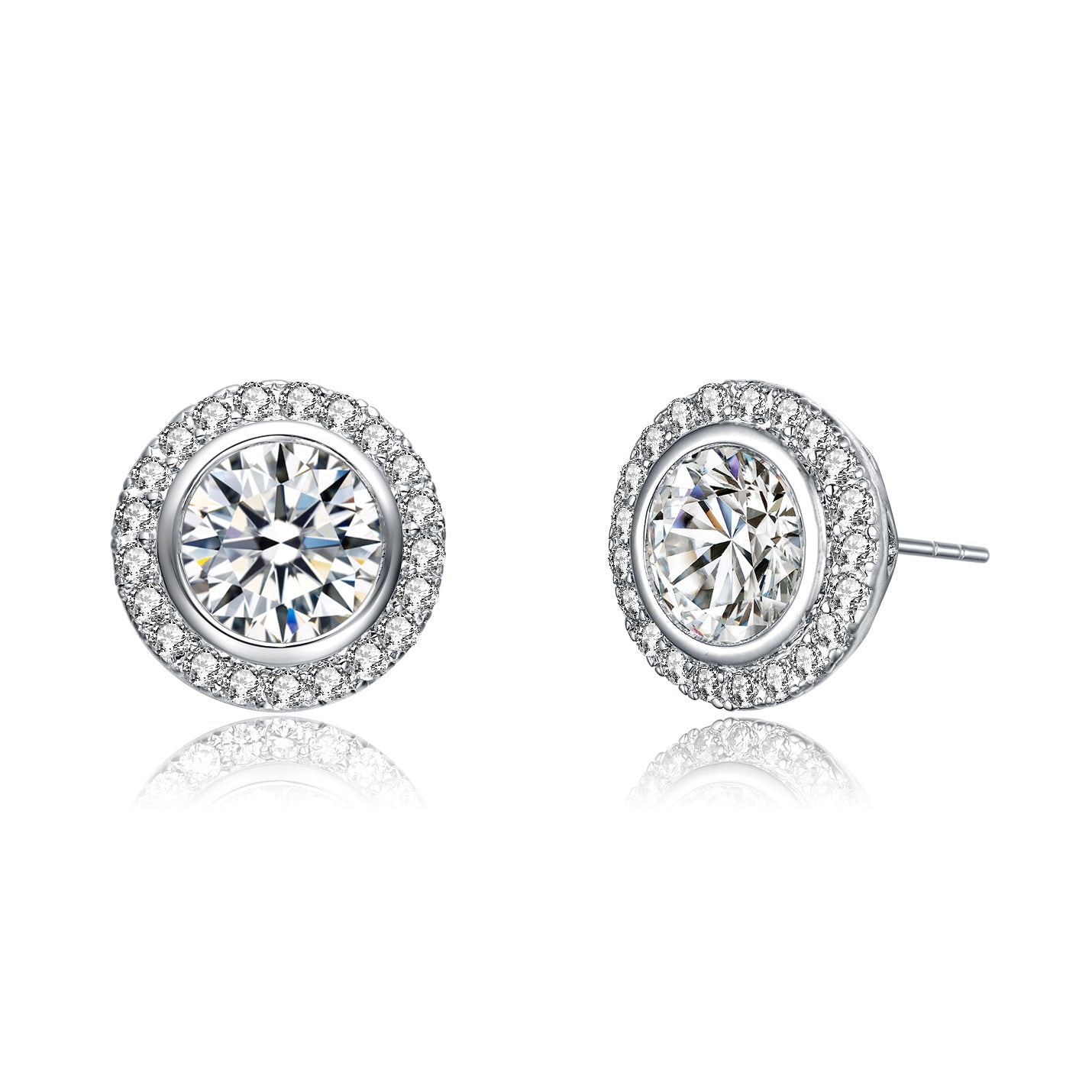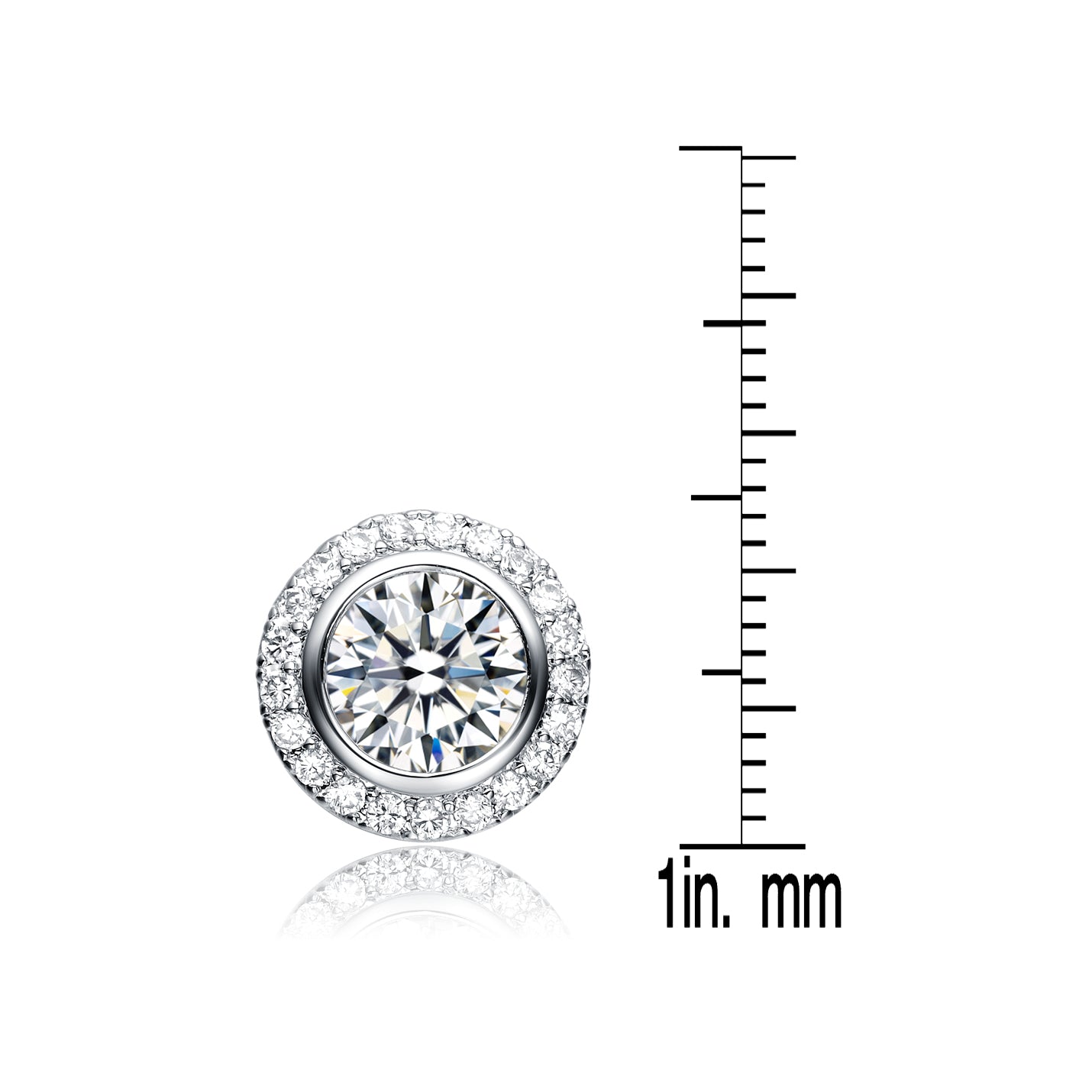 These stud style earrings are decorated with dazzling white round-cut cubic zirconia stones. Crafted of .925 sterling silver the earrings secure with butterfly clasps.