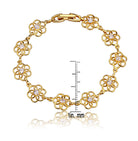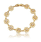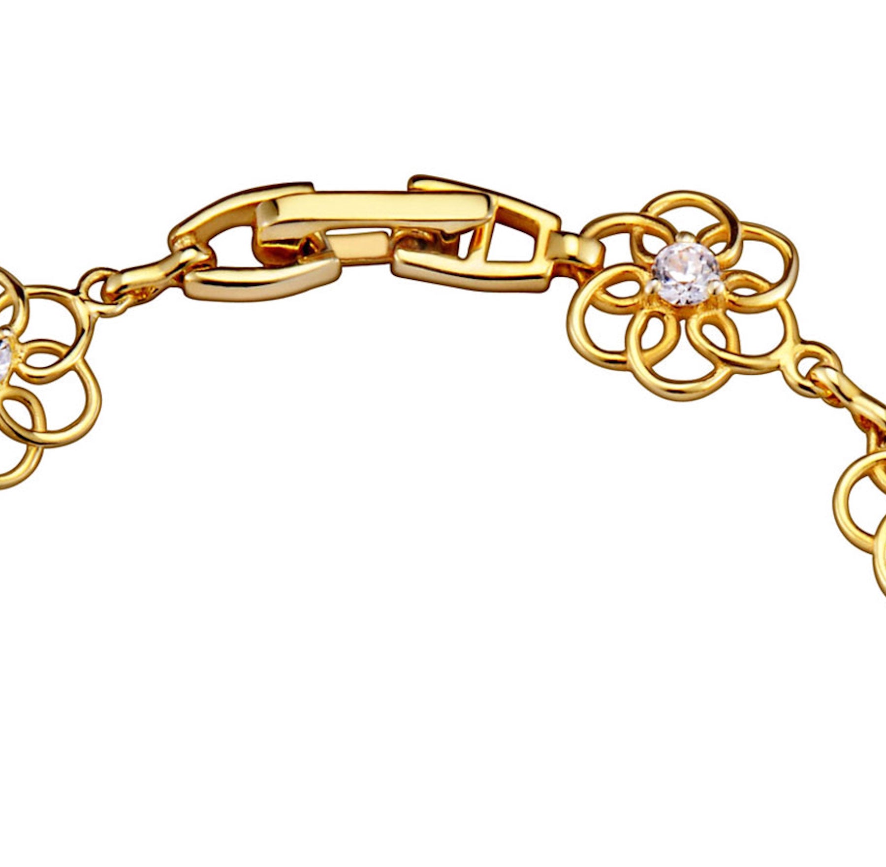 This gold overlay bracelet offers an elegant touch to any style. It also uses a wreath of flowers for a soft and subtle look.
