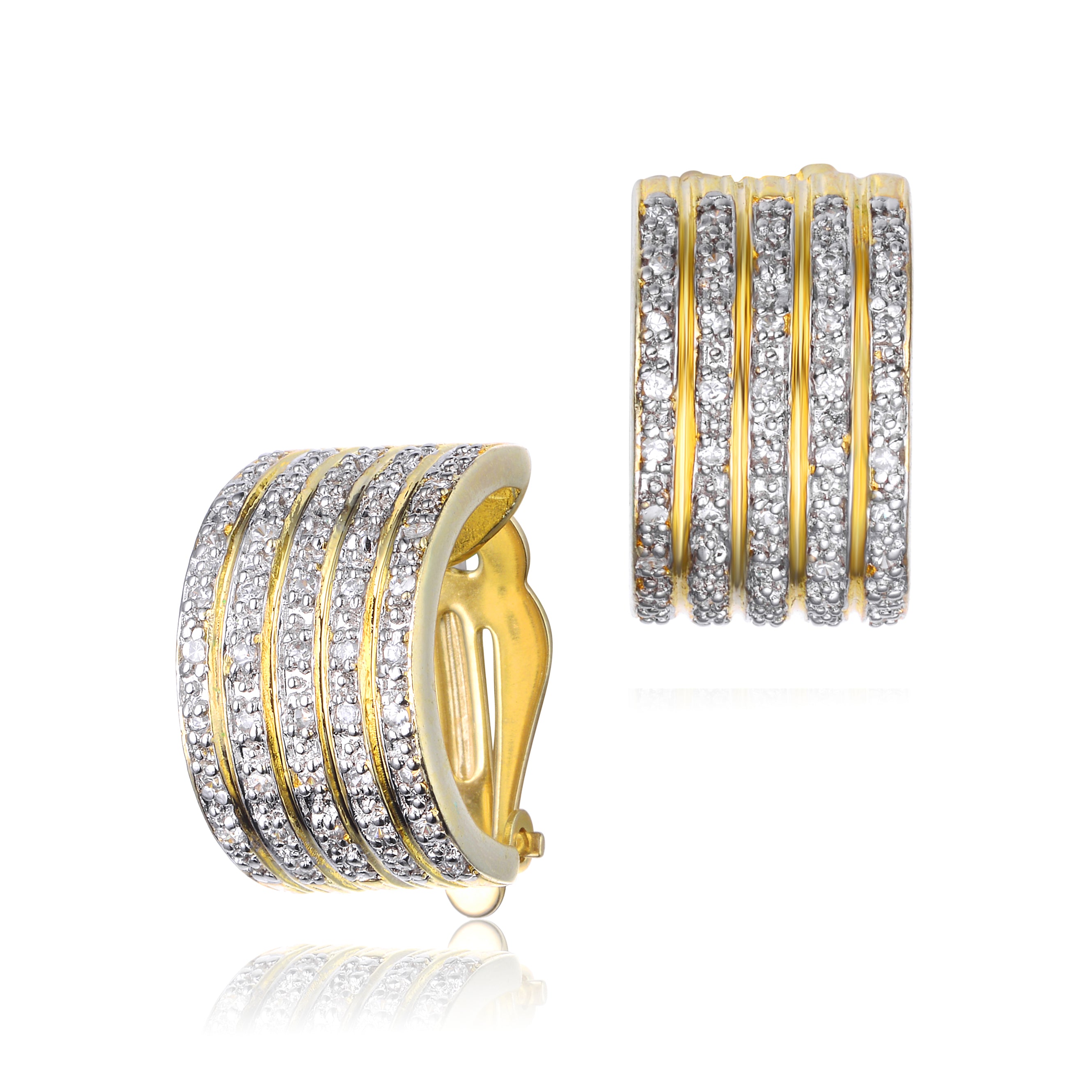 Gold overlay provides a canvas for stripes of clear cubic zirconia stones in this set of earrings. These earrings will never be out of style.