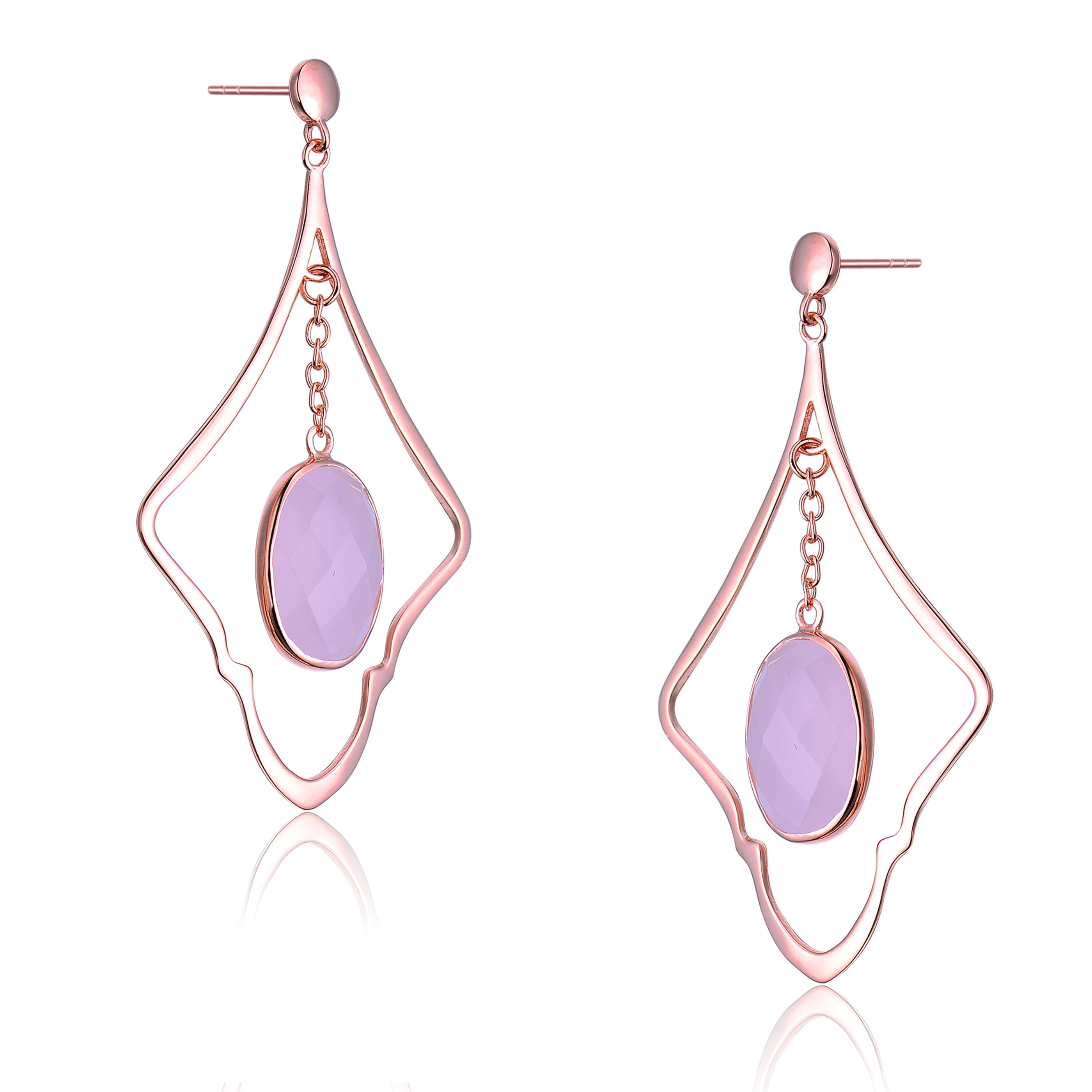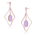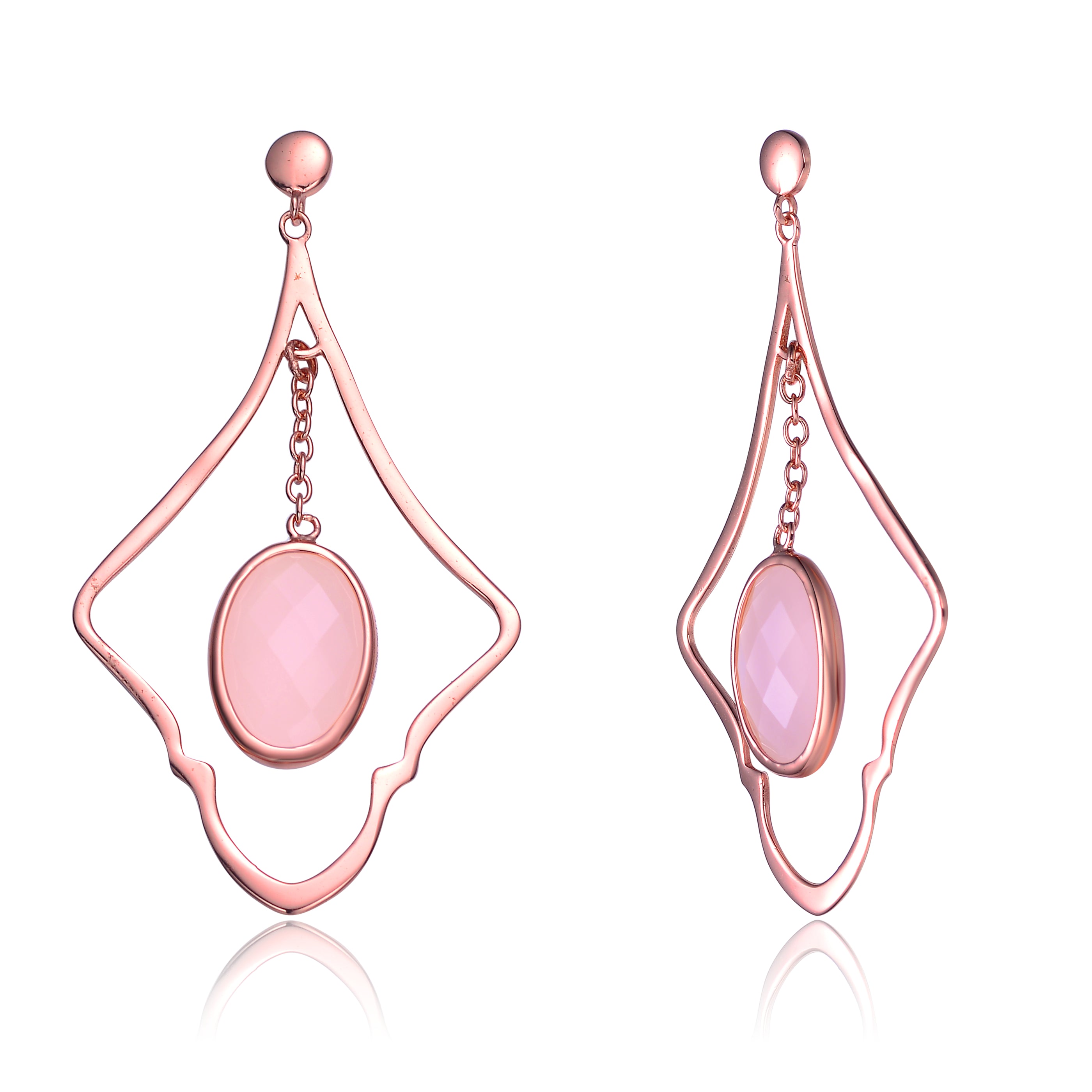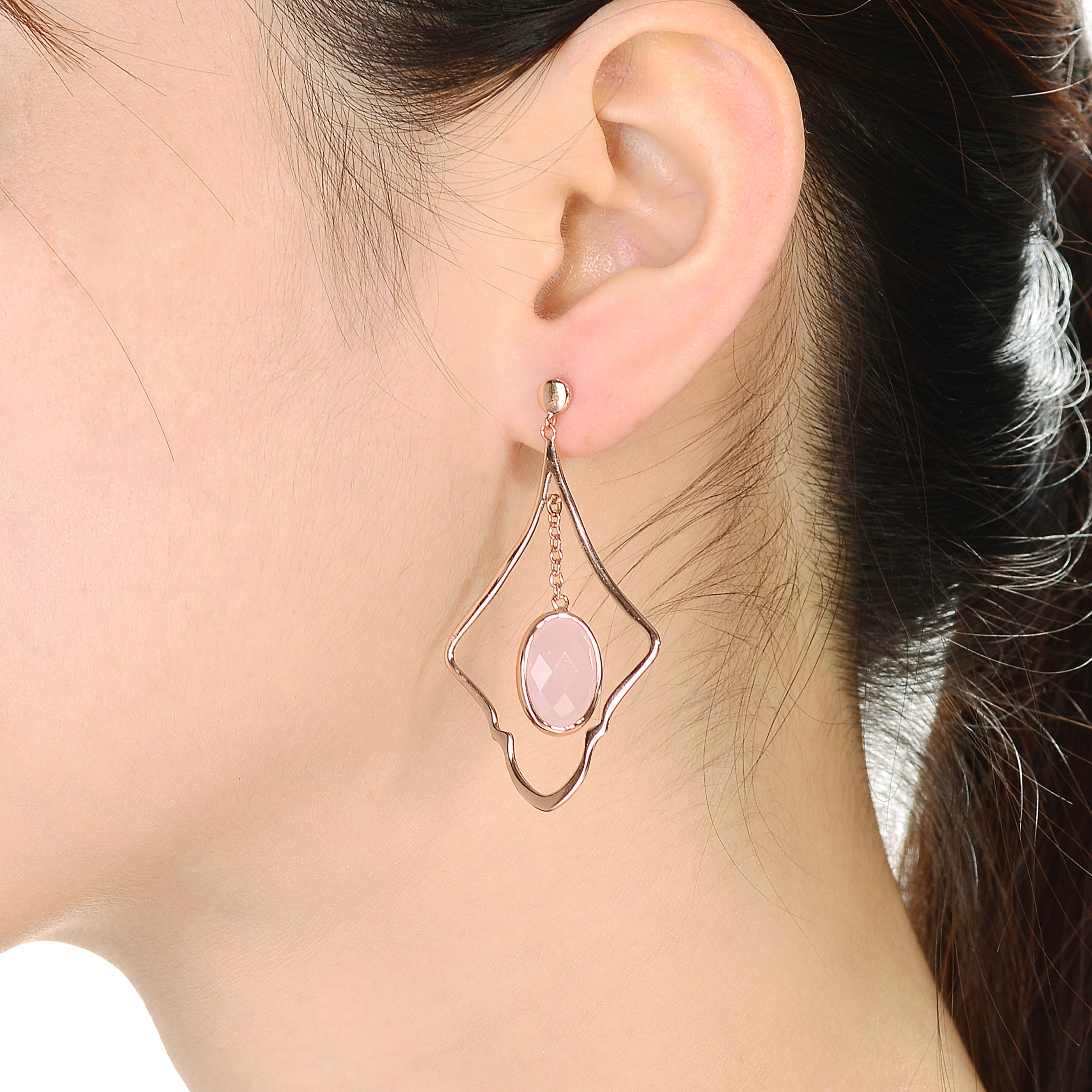 A suspended pink stone is at the core of this distinctive set of earrings. It is then complemented by a smart use of gold overlay.