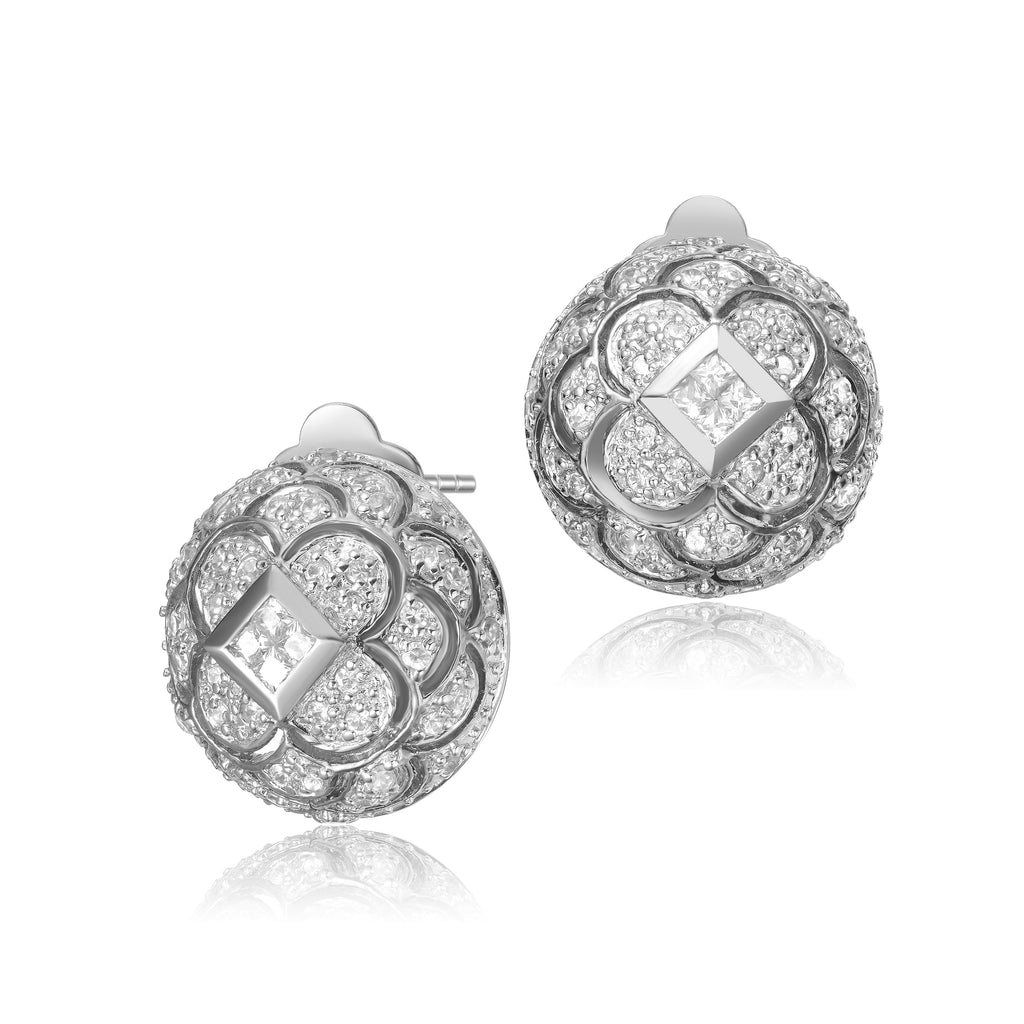 Add a touch of sophistication to your style with these sterling silver stud earrings. Featuring an intricate floral design, these earrings are encrusted with dazzling cubic zirconia that radiate brilliance from every angle. The center geometric detail adds a modern twist, making these earrings perfect for elevating both casual and formal looks.