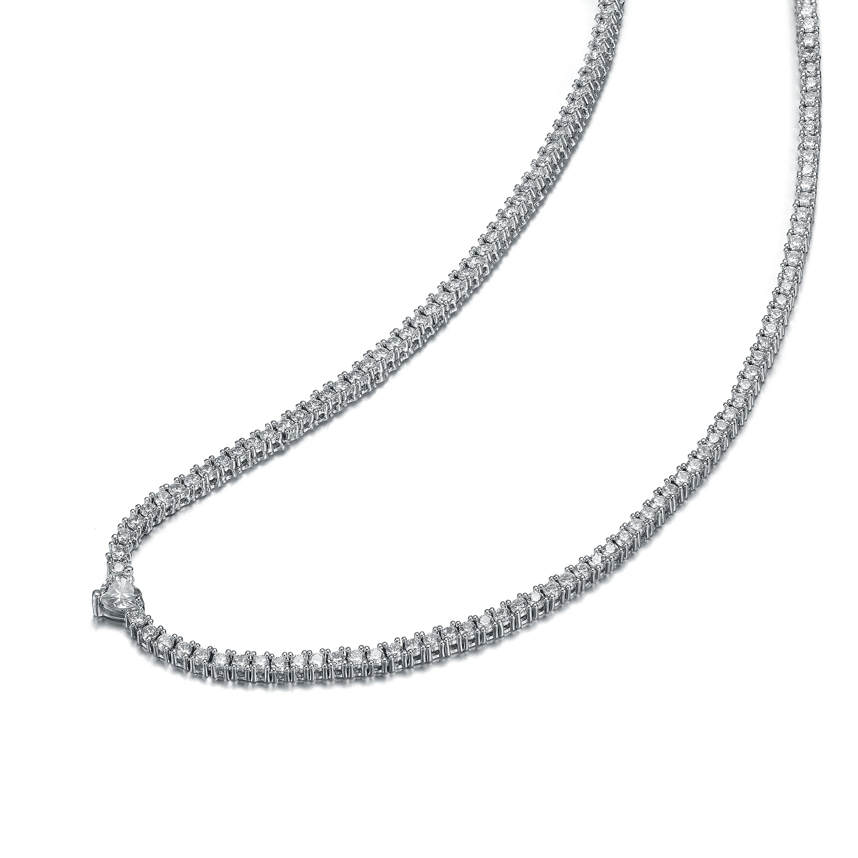 Experience timeless elegance with our 17-inch High-Quality Cubic Zirconia Tennis Necklace. This stunning piece features a continuous line of 2mm brilliant-cut cubic zirconia stones that offer radiant sparkle. At the heart of this necklace lies a captivating 5*5mm heart-shaped cubic zirconia, creating a beautiful focal point. Secured with a durable box clasp, this exquisite necklace combines sophistication and security. Perfect for any occasion, it promises to add a touch of luxury to your jewelry collection.