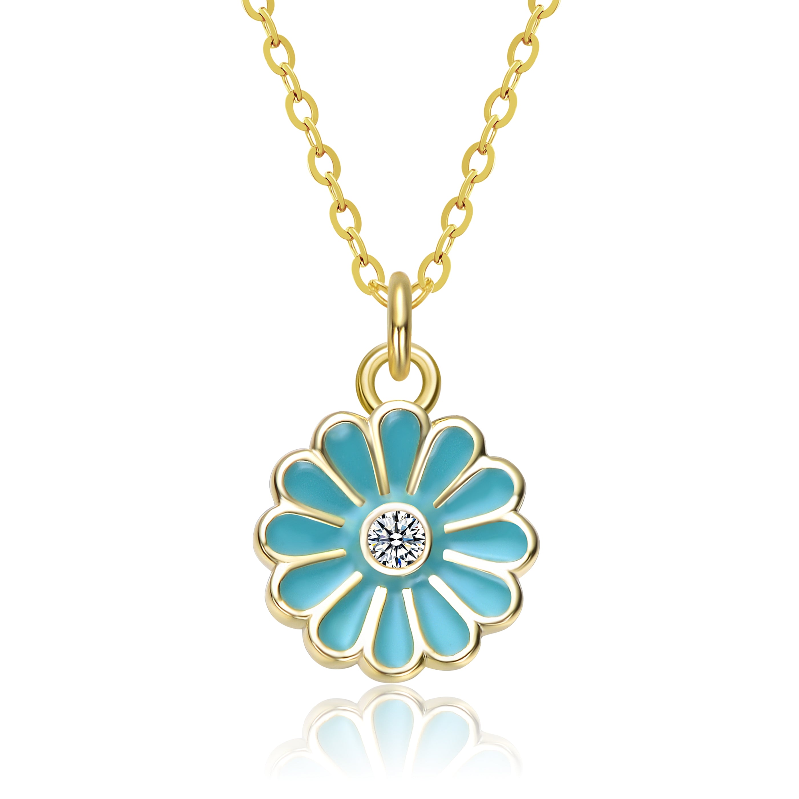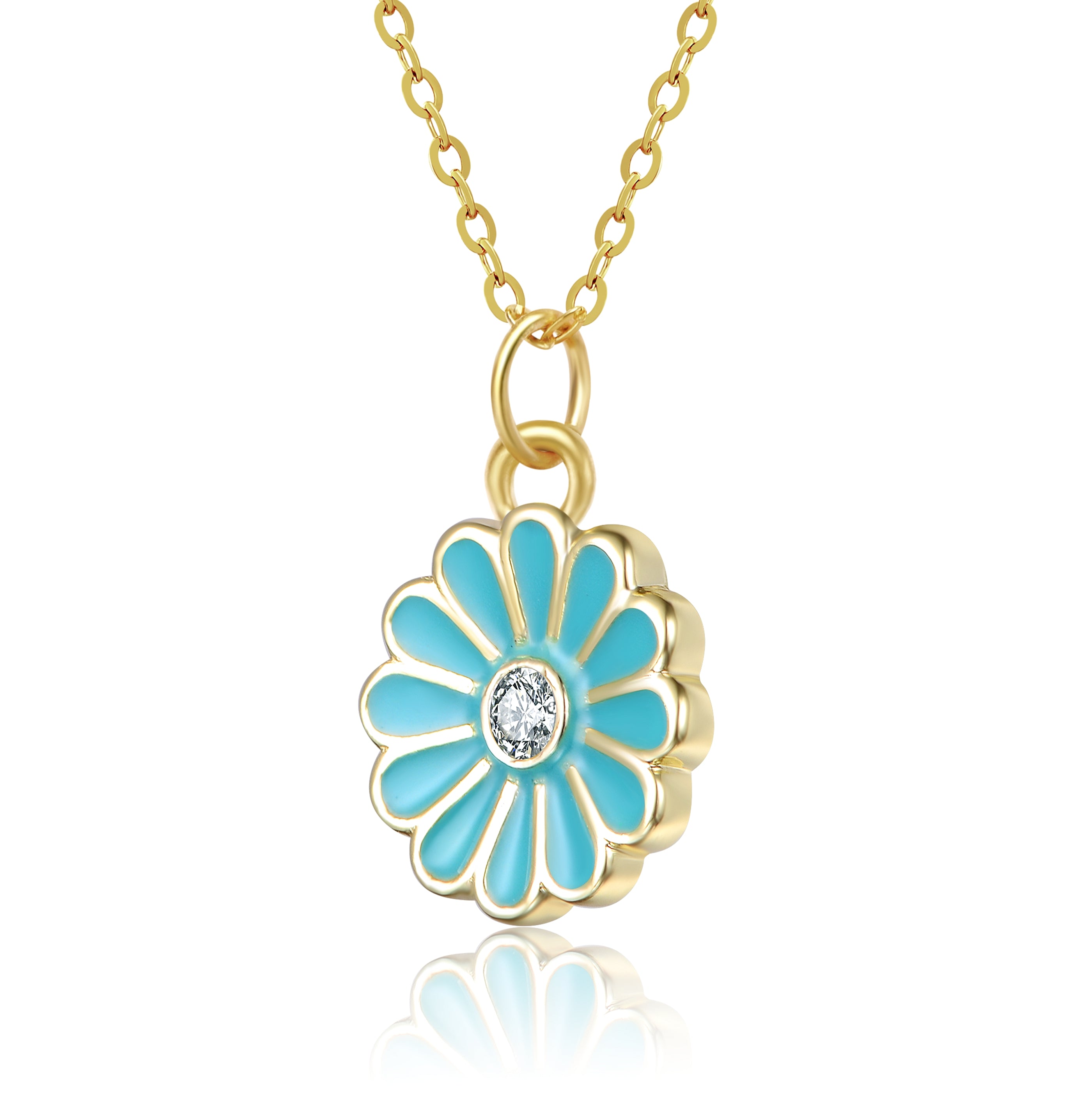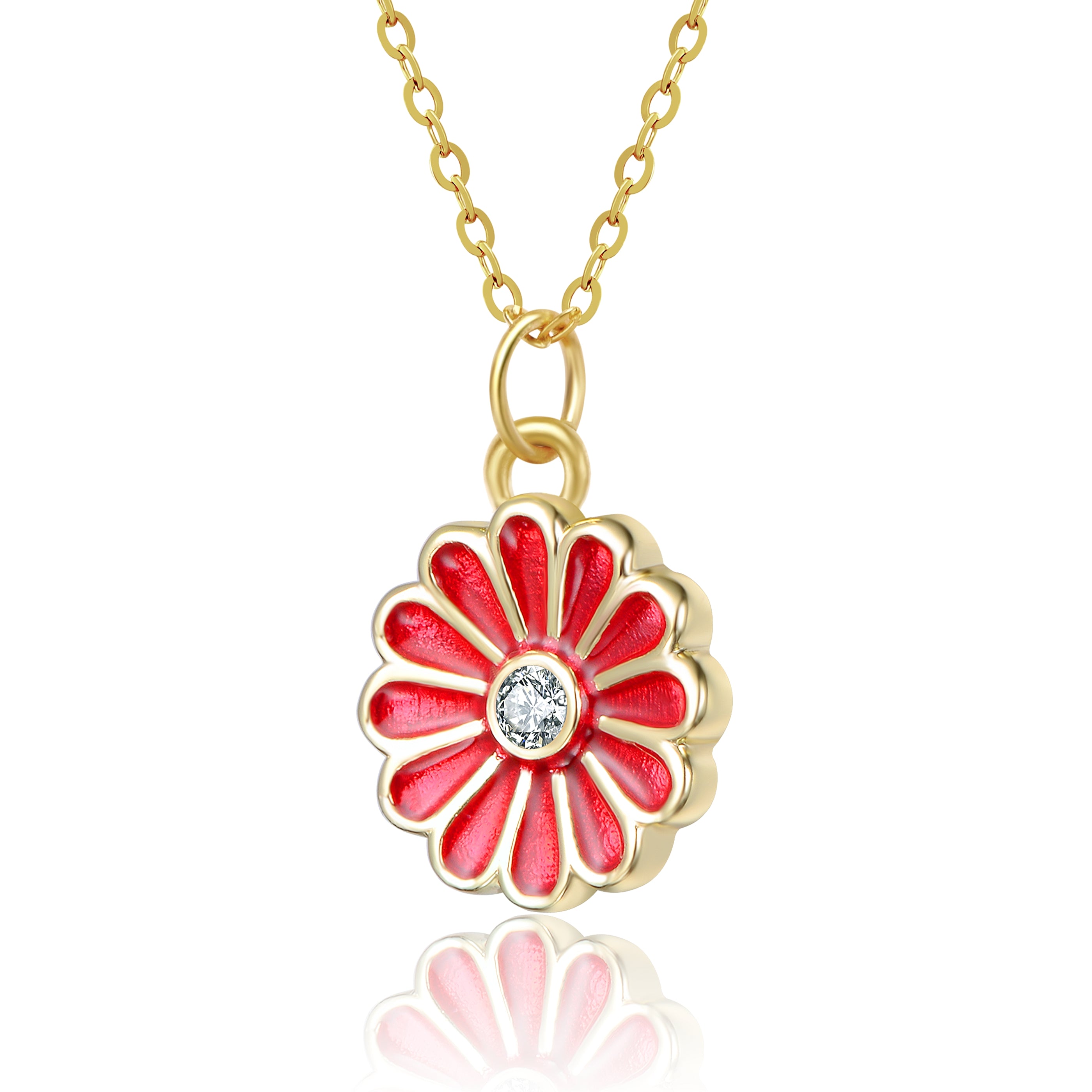 Flowers bring joy, happiness, and love, making this romantic yet chic 14K gold plated flower necklace the perfect gift. Each blooming flower pendant is adorned with sparkling round brilliant-cut cubic zirconia at its center, glittering against the rich red enamel petals. Secured with a lobster clasp, this kids' sterling silver pendant necklace ensures a safe and stylish wear. Available in both Red enamel and Tiffany Blue, it’s an ideal accessory for any special occasion.