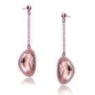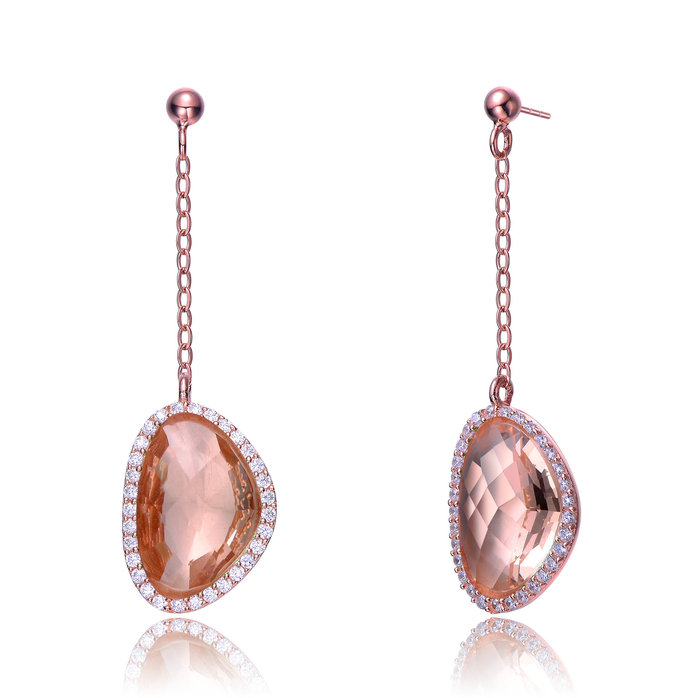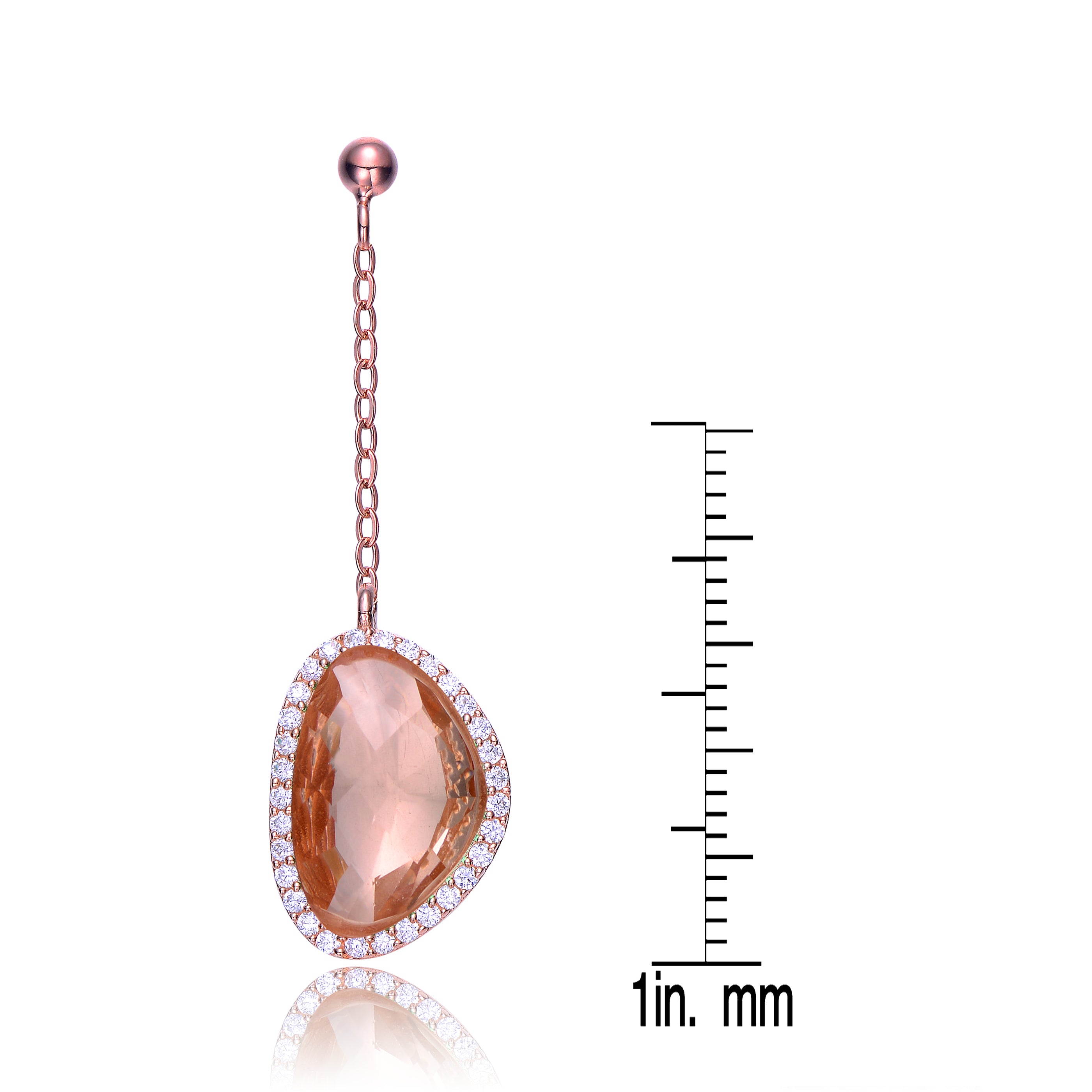 A large and stunning bronze cubic zirconia stone is at the core of these rose gold overlay earrings. It is further embellished with a halo of tiny clear cubic zirconia stones.