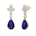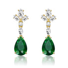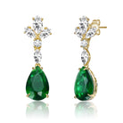 Sterling Silver 14k Gold Plated Green & White Cluster Dangle Earrings. These 14k gold plated sterling silver dangle earrings feature pear-shaped green cubic zirconia secured in prong settings on the ends, giving these pretty earrings vibrancy and prestige. Mixed-cut white cubic zirconia prong set in a cluster on the top and middle creates a look of timeless elegance. Butterfly backs keep these glamorous earrings secure once placed on the ears, making them the perfect choice for those who love fire and color.