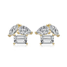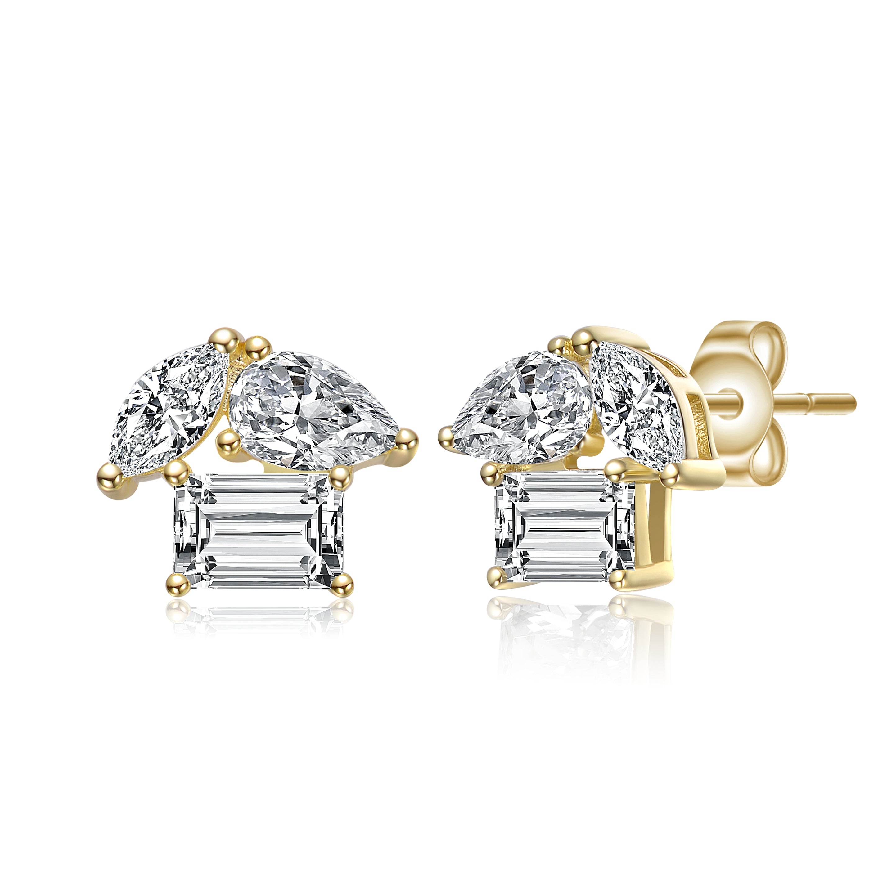 Sterling Silver 14k Gold Plated Marquise & Emerald Cut Triple Stone Stud Earrings. Upgrade any look with these brightly polished 14k gold plated sterling silver stud earrings featuring marquise cut cubic zirconia and emerald cut cubic zirconia prong set with luxury and fire. Create a style all your own with these elegant stud earrings, uplifting your jewelry collection with shine and sophistication. Pin and post backs keep them in place.