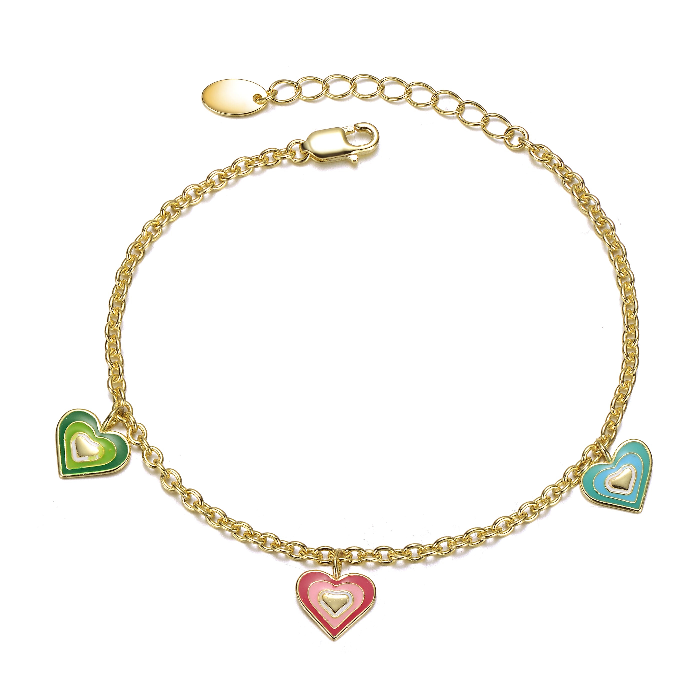 Sterling Silver 14K Gold Plated Multi Color Enamel Halo Heart Charm Bracelet for Kids and Teens