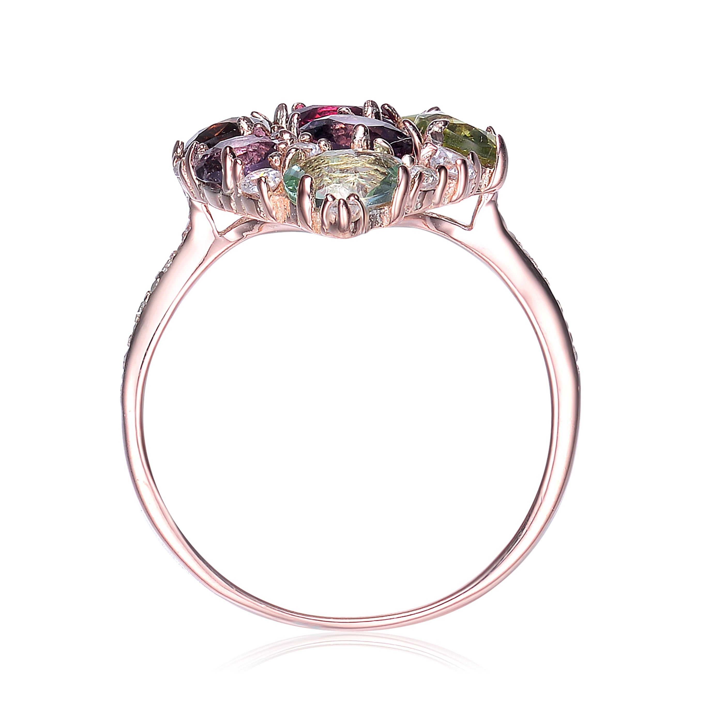 Add a touch of color to your fingers with this multi colored cubic zirconia ring. Dazzling large oval and round cubic zirconia in different colors are featured in this ring. Accentuated with a pave of clear round cubic zirconia inset in .925 Sterling silver with rose gold plated band making this ring dazzle in every angle, and it is available in size 6,7,8.