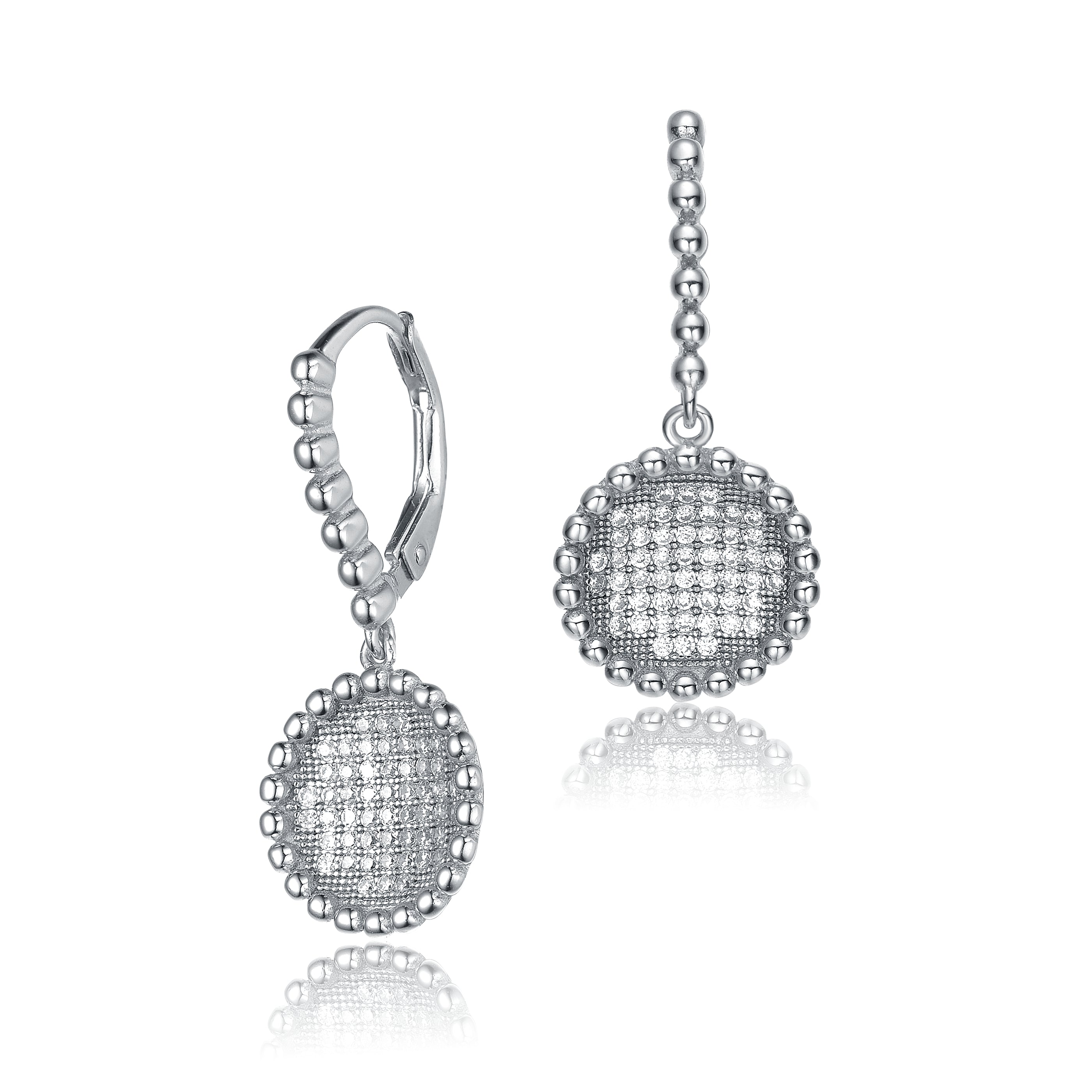 These sophistocated circle drop earrings are just the thing for an evening out on the town. Each piece is encrusted with dazzling white cubic zirconia.