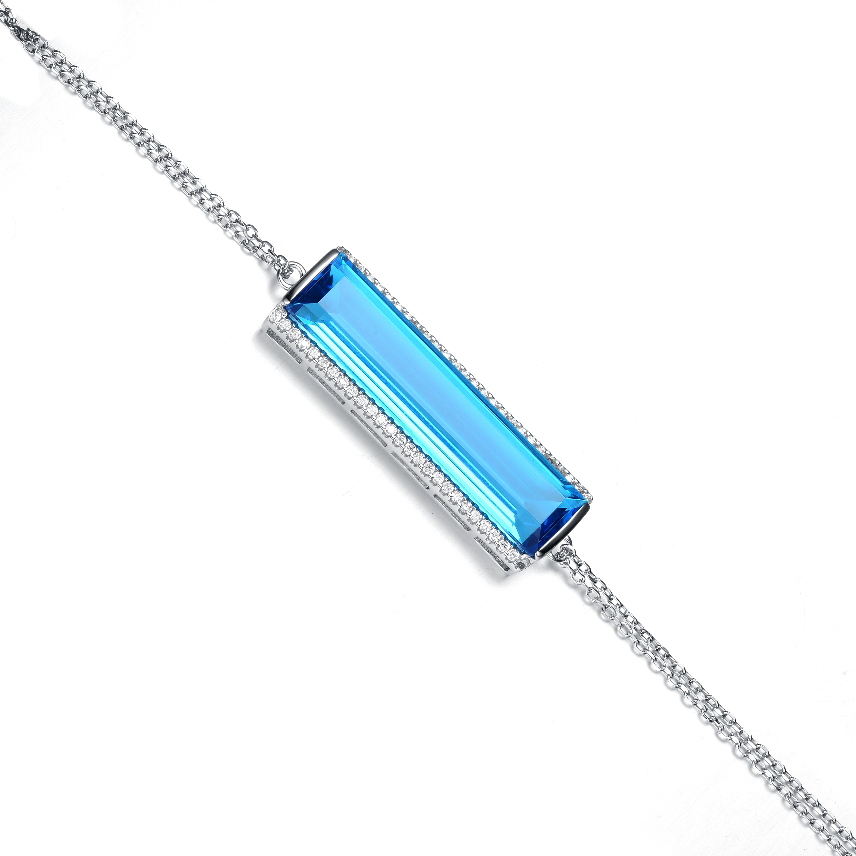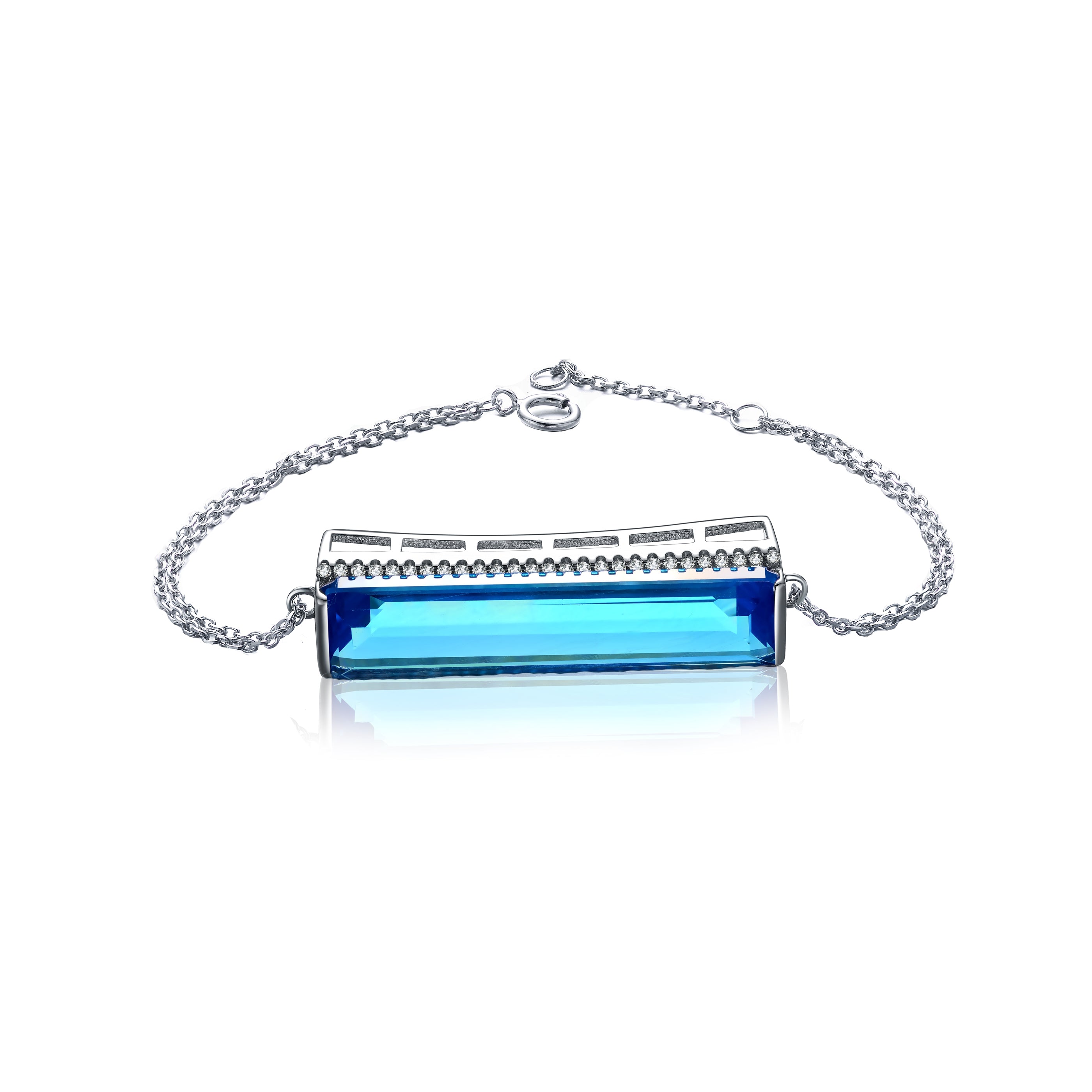 Turn on the charm when modeling this sterling silver bracelet. The best part is the large blue cubic zirconia stone at the forefront. Available in other colors as well.