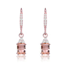 Beautifully crafted Morganite Earings. The Rose Gold Plating and Clear Cubic Zirconia accents with Center Morganite Crystal in the middle is great fit for every occasion. Available in Emrald green in Rhodim plating as well.