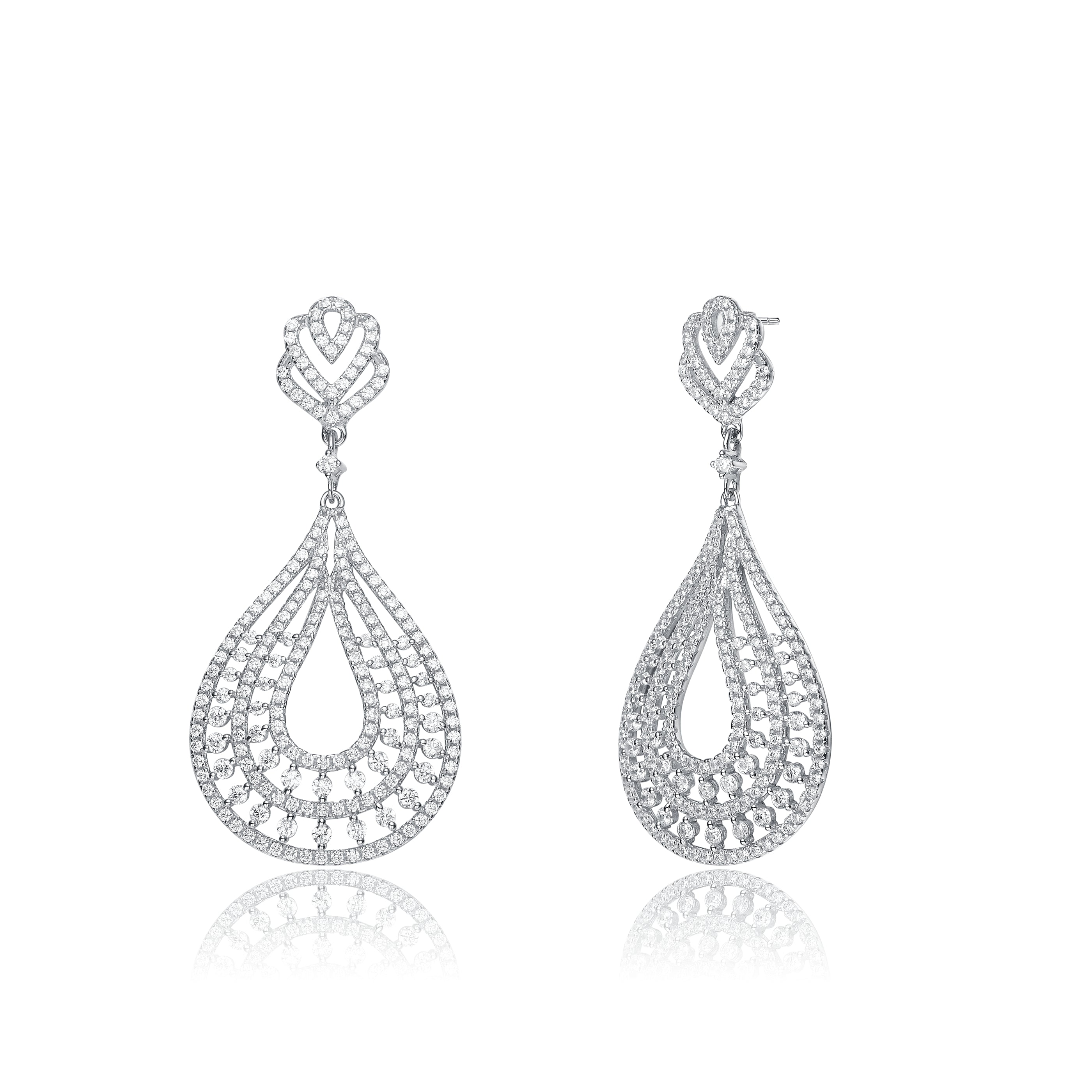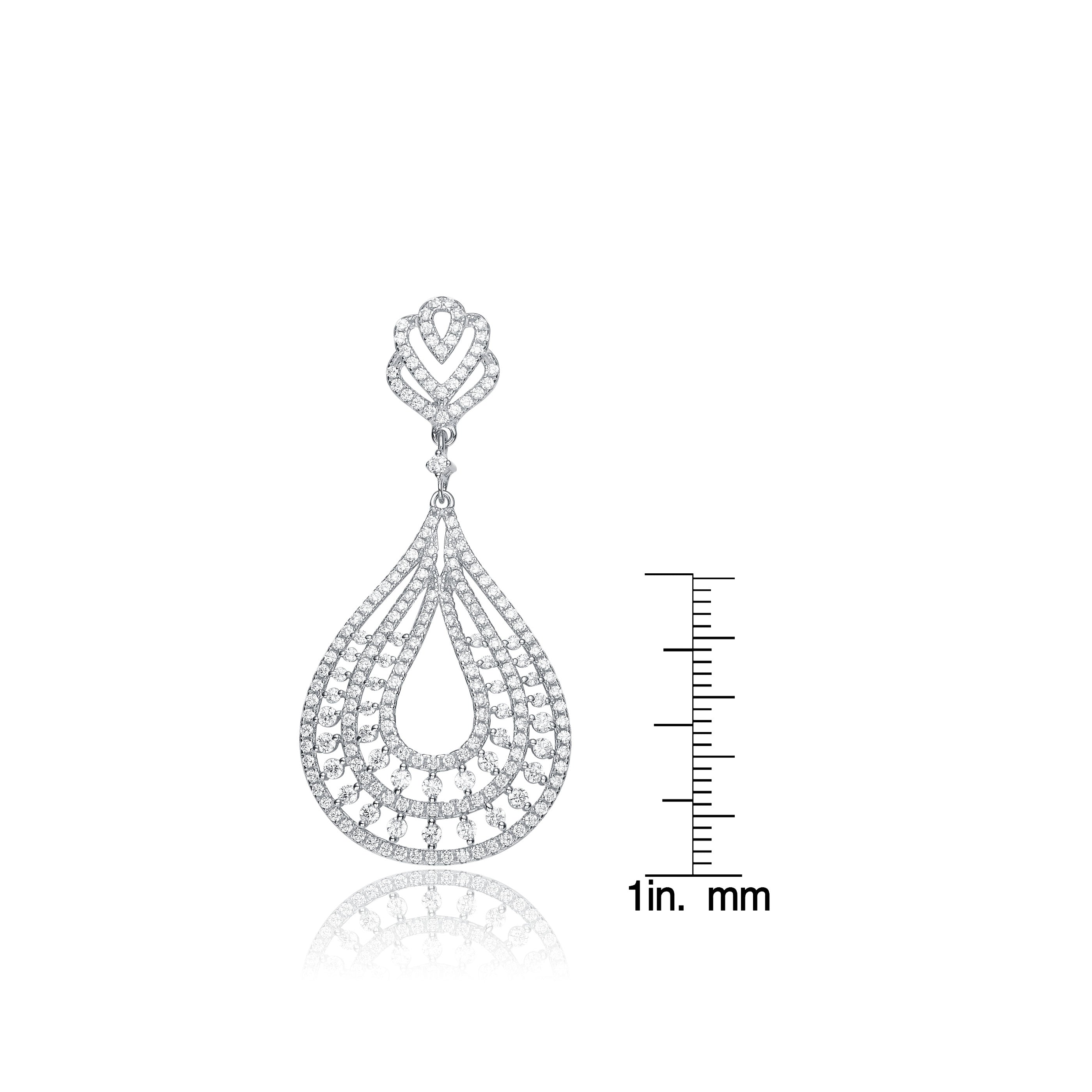 For a fancy and formal look wear these sterling silver earrings. They are in the shape of a pear and lined with clear cubic zirconia stones.
