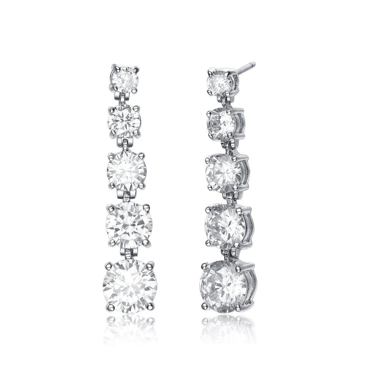 Clear cubic zirconia stones cut into multi-sized squares create a linear pyramid. These earrings are guaranteed to captivate and add a level of pizazz.