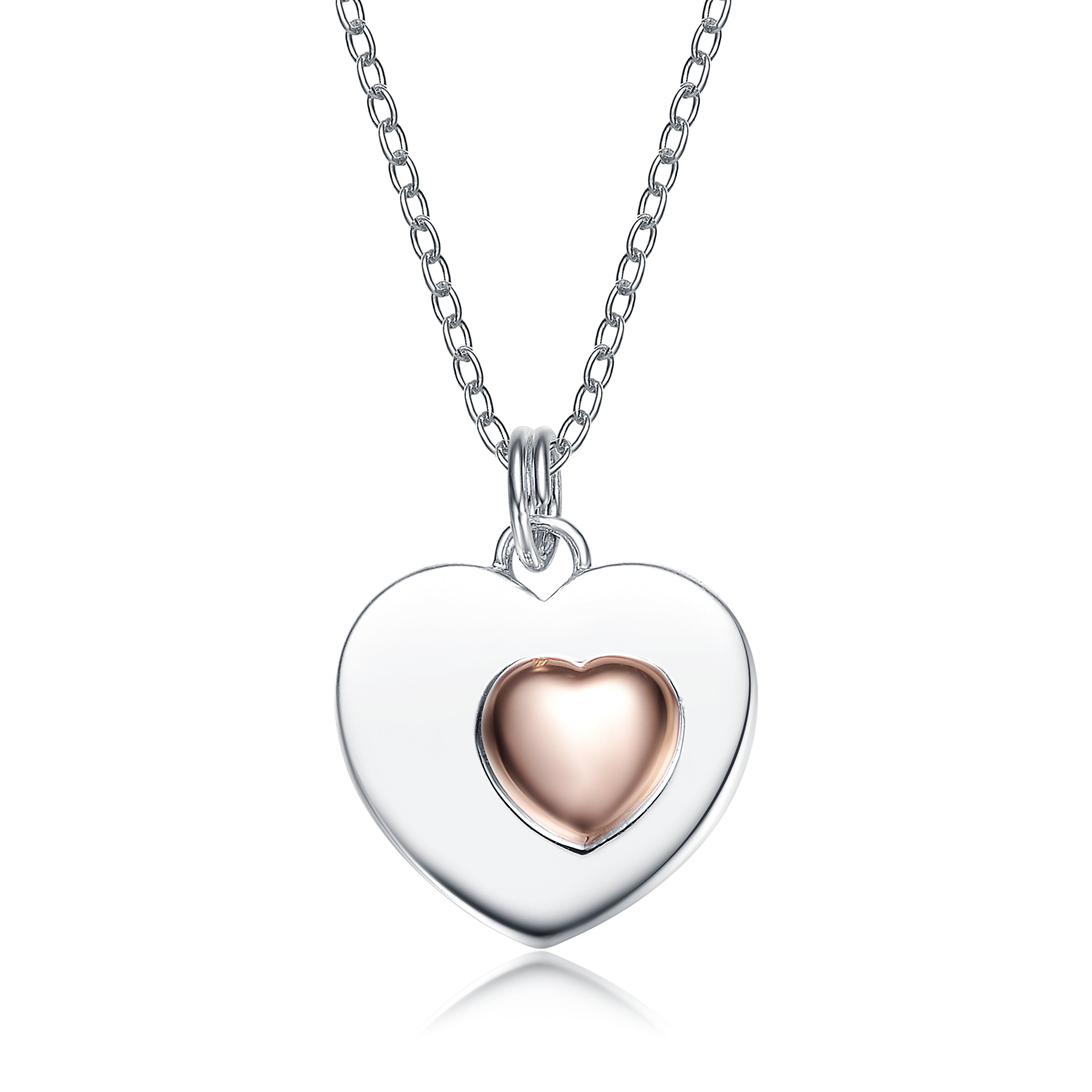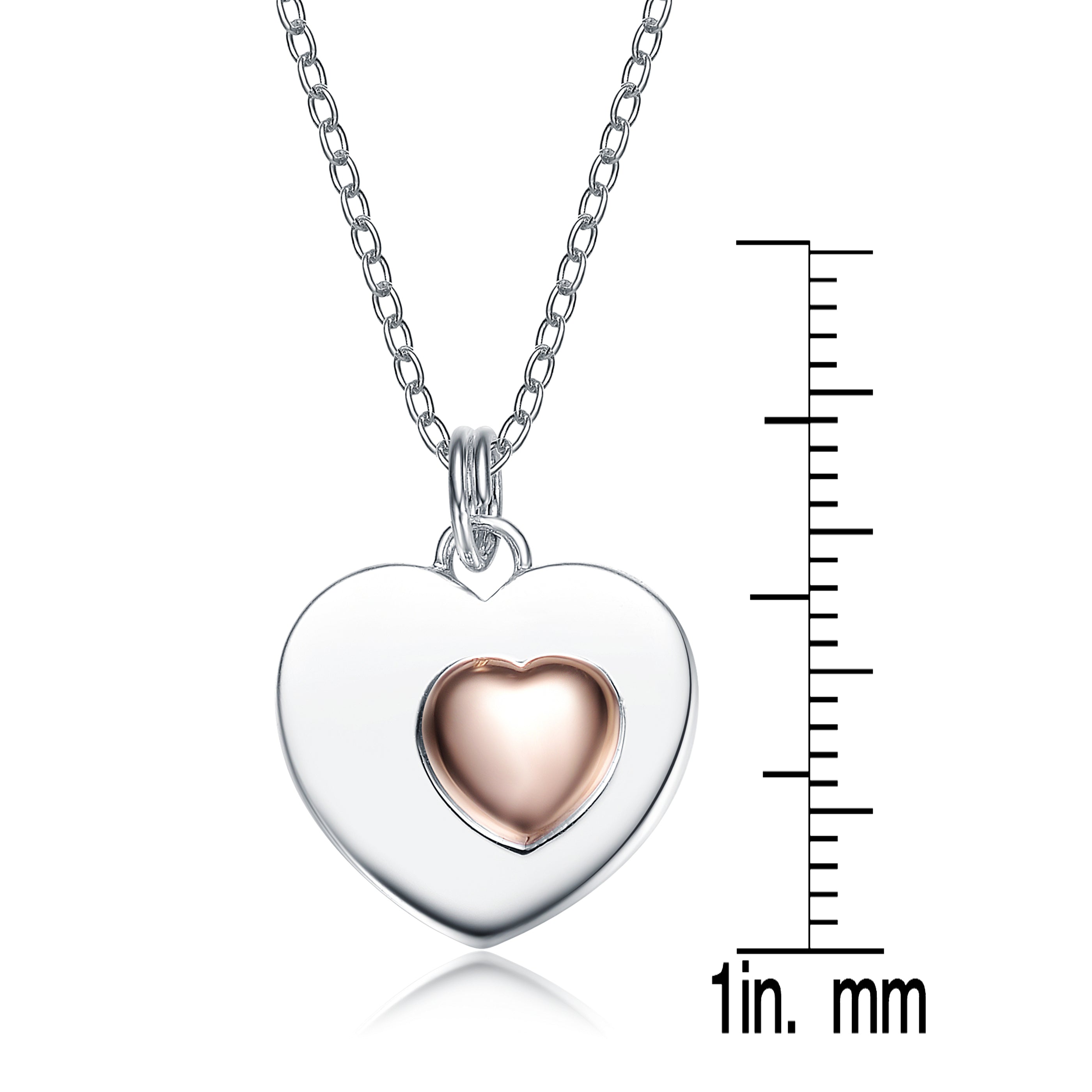This unique and amazing piece is an ideal addition to any outfit. Each piece features a sterling silver heart with a small copper color heart within.
