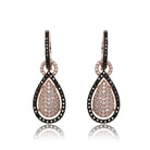Sterling Silver Cubic Zirconia Drop Earrings. These enticing pear-shape drop earrings are decorated with black and white round-cut cubic zirconia stones. Crafted of .925 sterling silver with 18K Rose Gold Plating, the earrings secure with clip-in clasps.