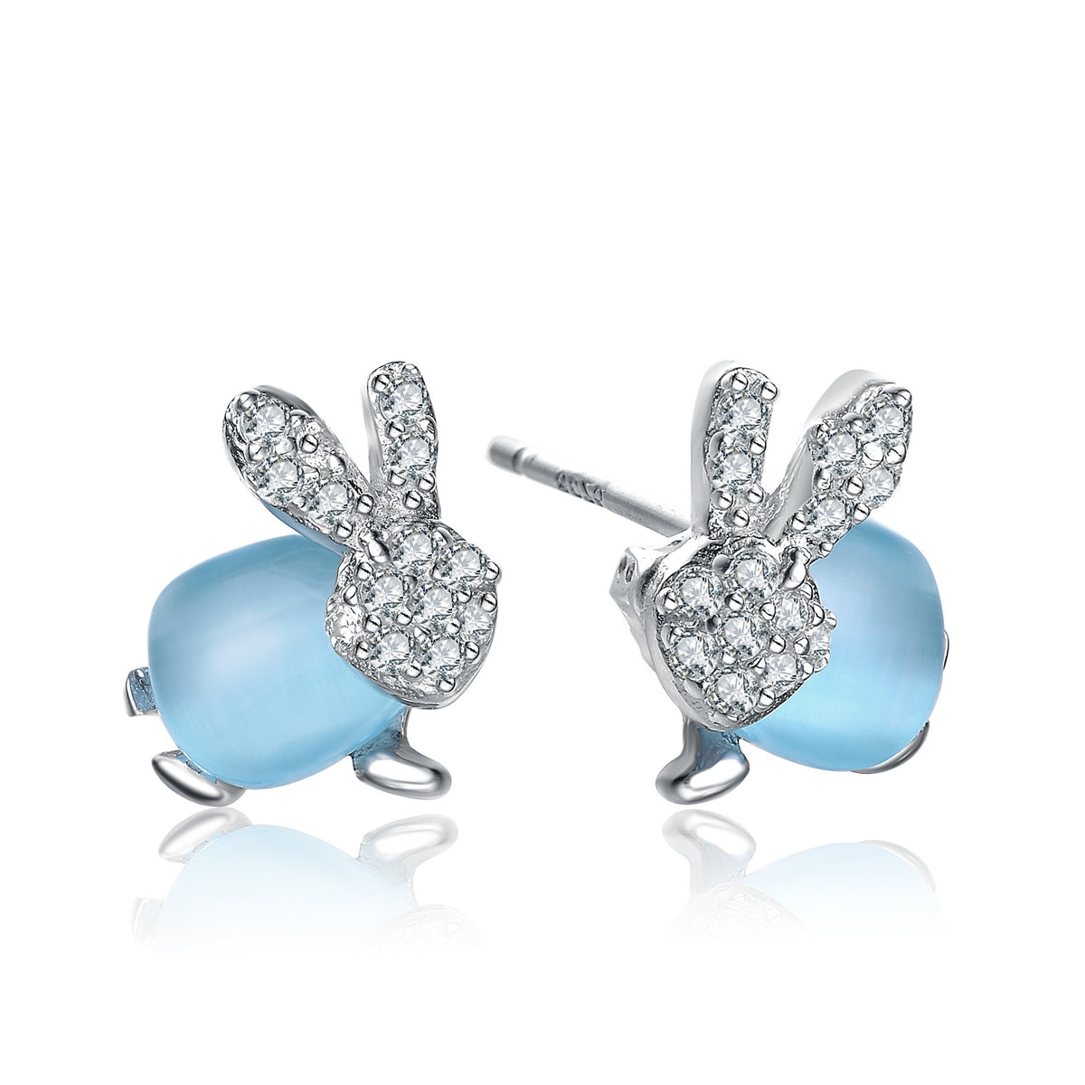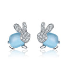 A sky blue bead is used for the body of a bunny and clear pave cubic zirconia stones are used for ears. These earrings are ideal for animal lovers.