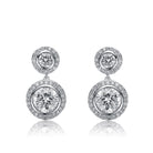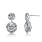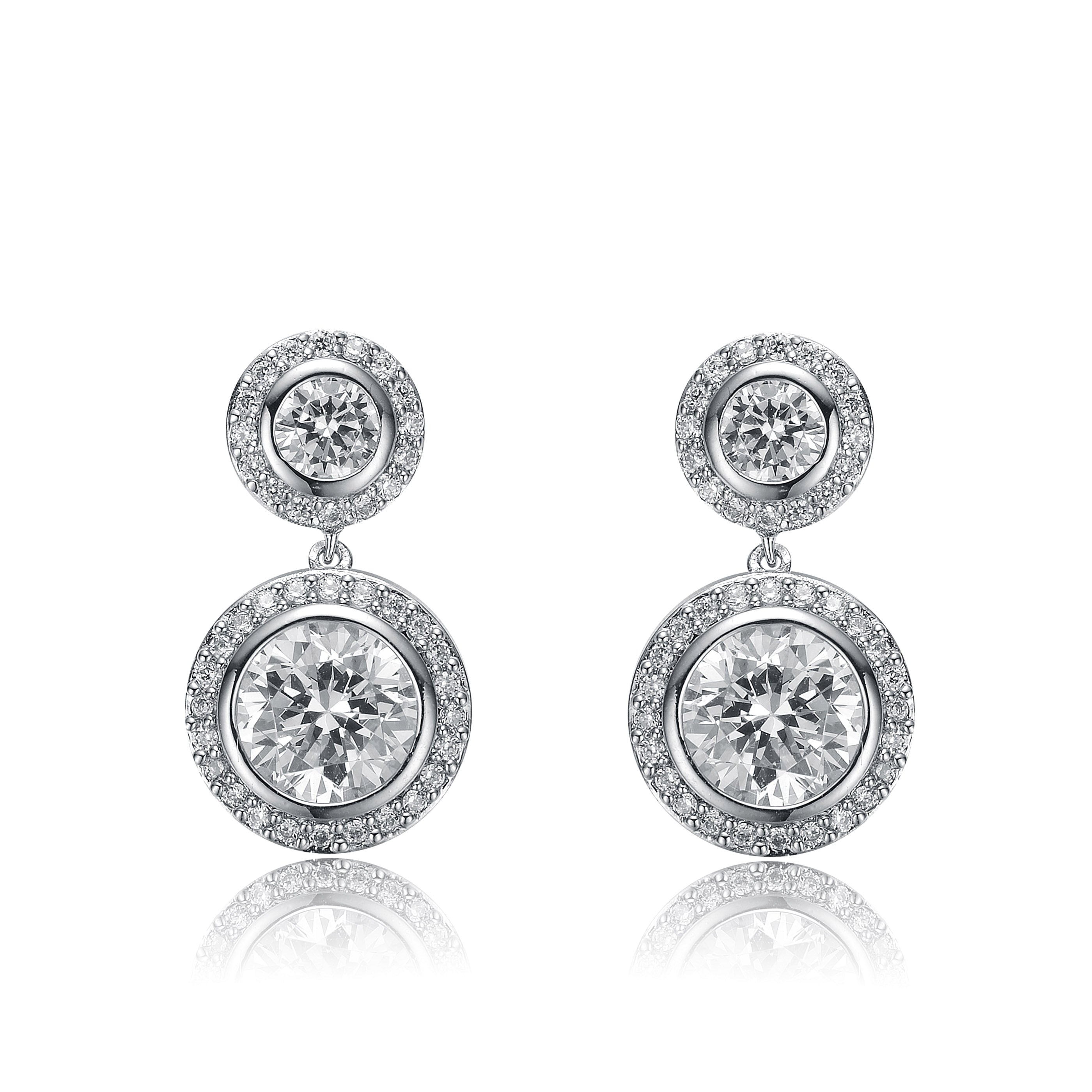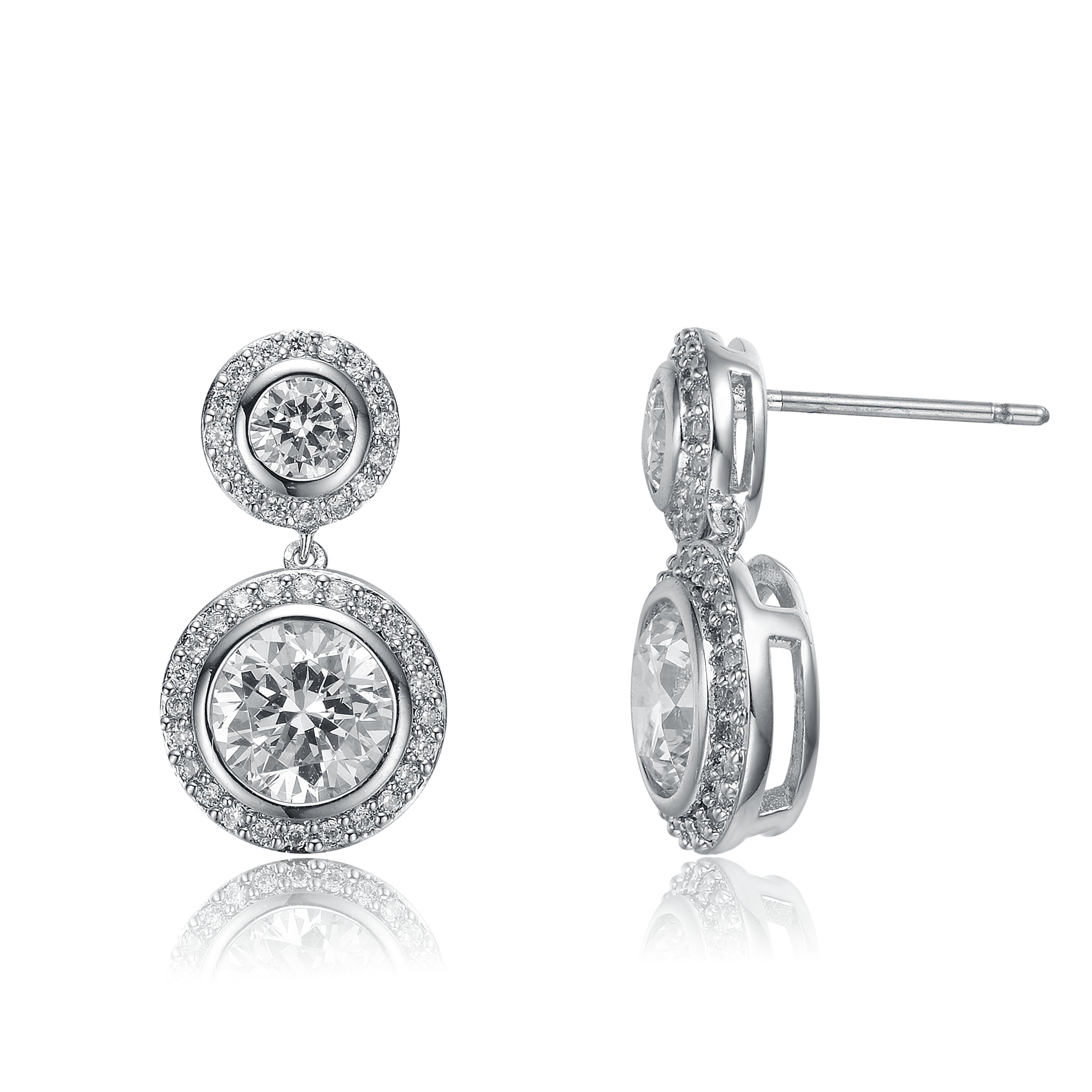 These earrings are simply stunning. Each set features a duo of gleaming white solitaires surrounded by smaller white stones.