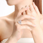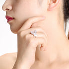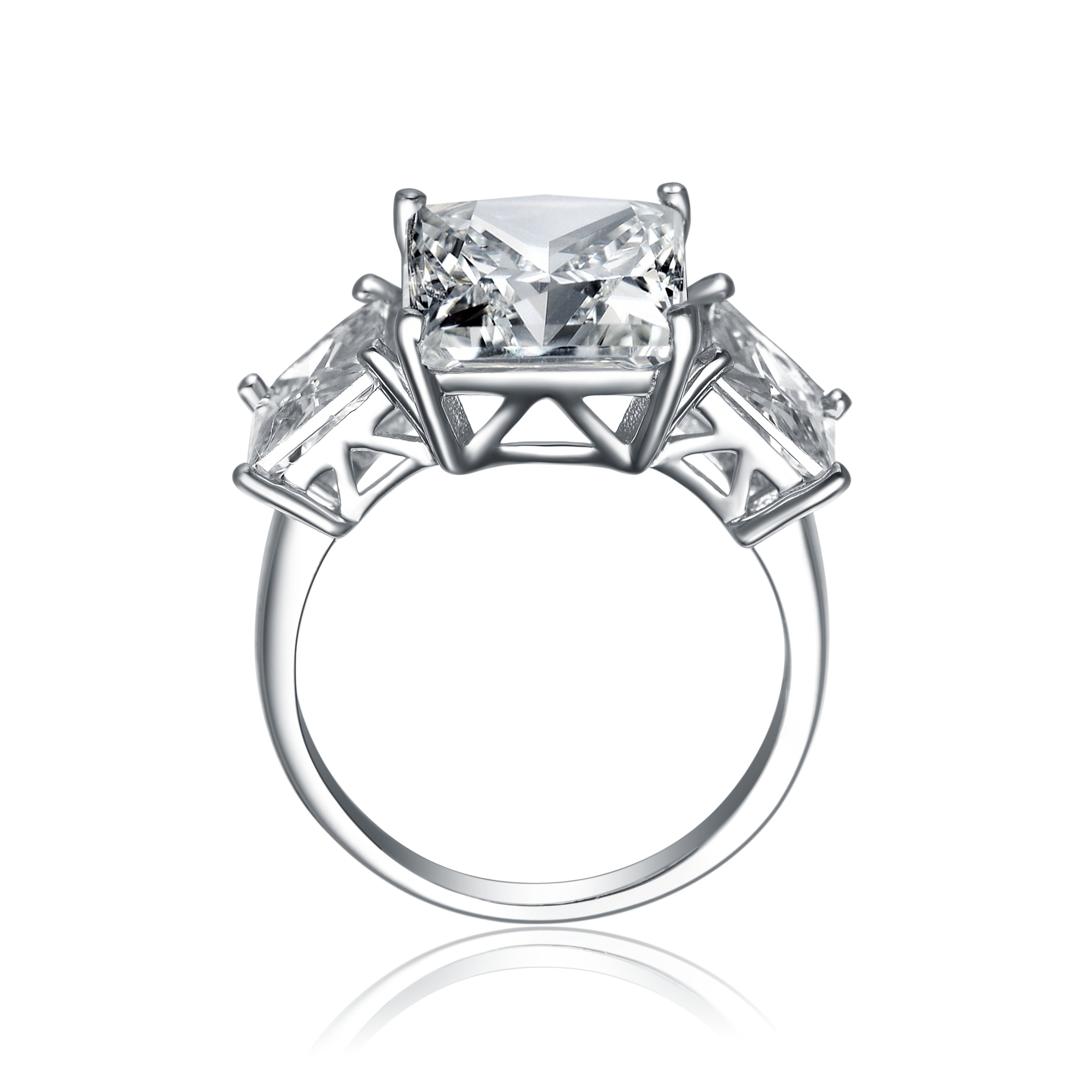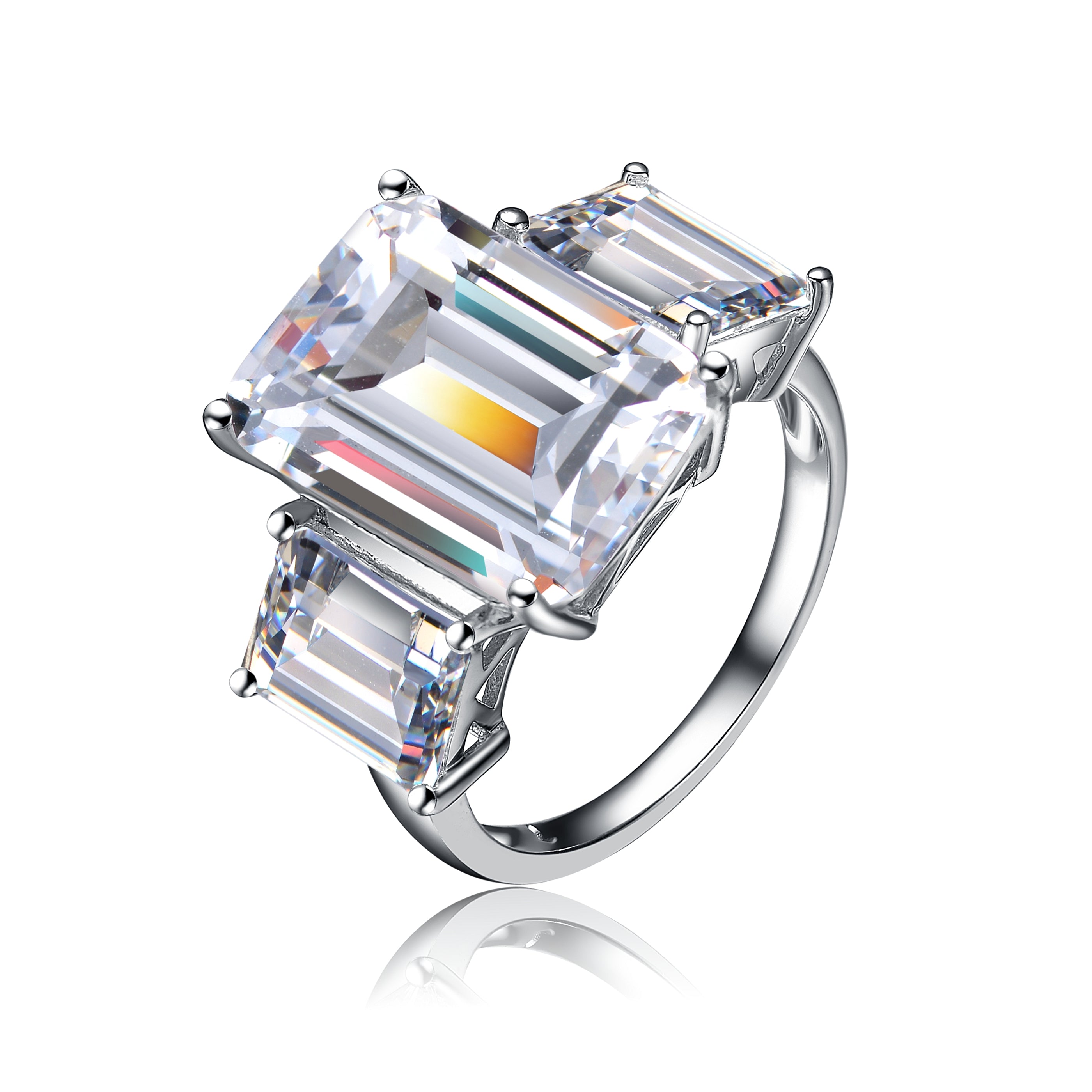Emerald-cut clear cubic zirconia stones are the central figures of this sterling silver ring. It can make a desirable collector’s item.