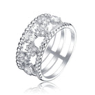 This sterling silver ring carries a vintage feel. It uses clear cubic zirconia stones in an ornate design that’s sure to win admiration. It's all you need to blend in with the crowd. This is the perfect addition for your next wedding. Available in ring sizes 6, 7, 8