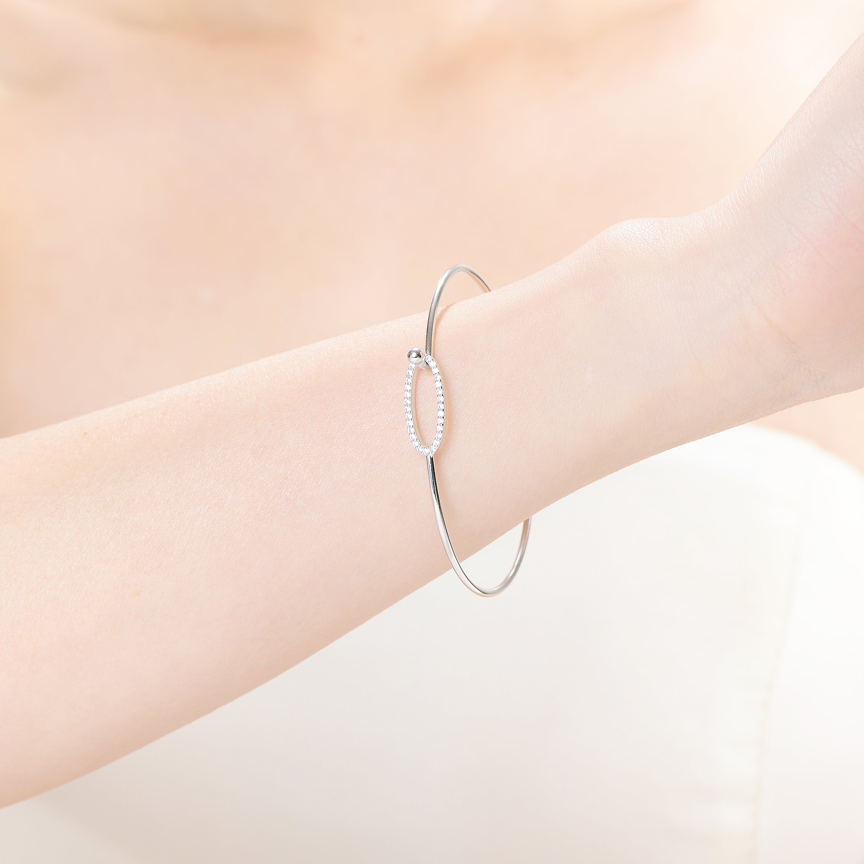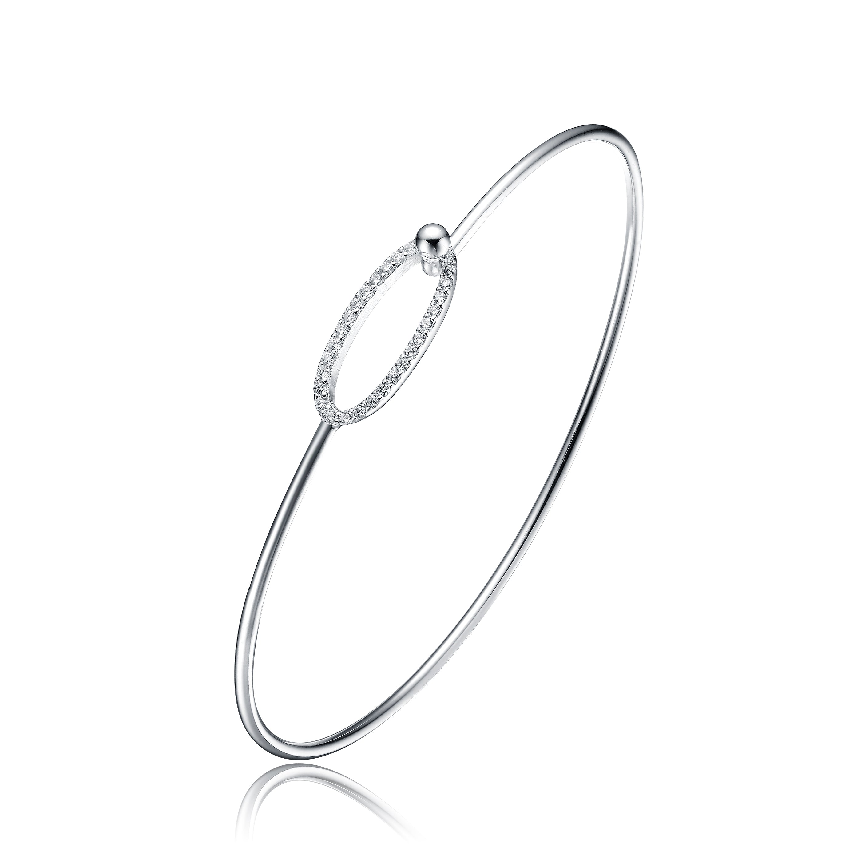 This charming bangle highlights an open oval of dazzling cubic zirconia stones for a clean and polished look.