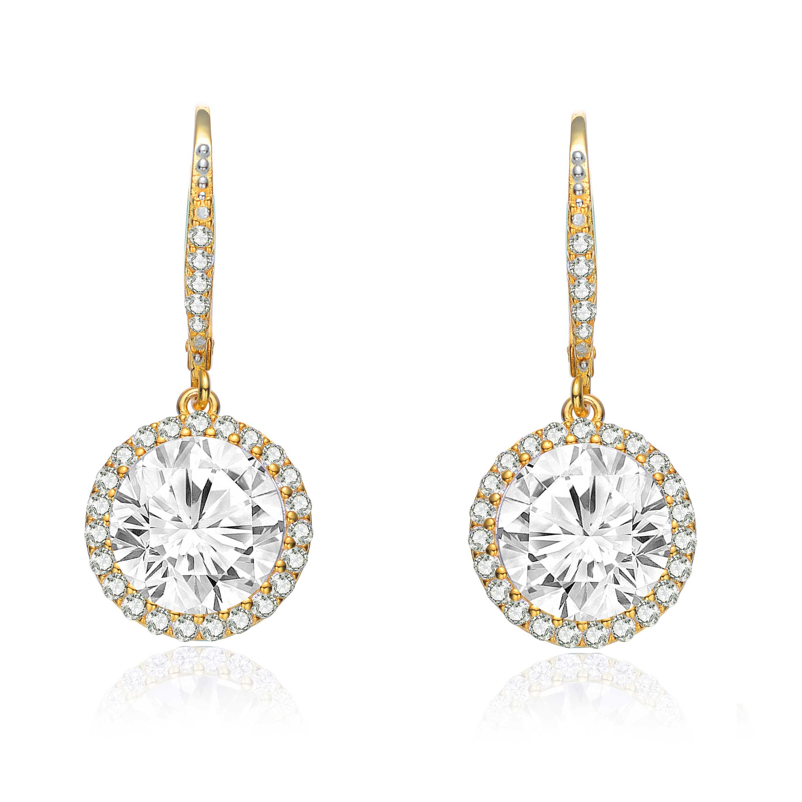 Sterling Silver 14K Gold Plated Cubic Zirconia Accented stones. Step out in style wearing these gold tone plated earrings. These earrings are adored with sparkling CZ round stones. These beautiful earrings are secured with lever backs. The delicate design makes this earring dainty and elegant.