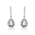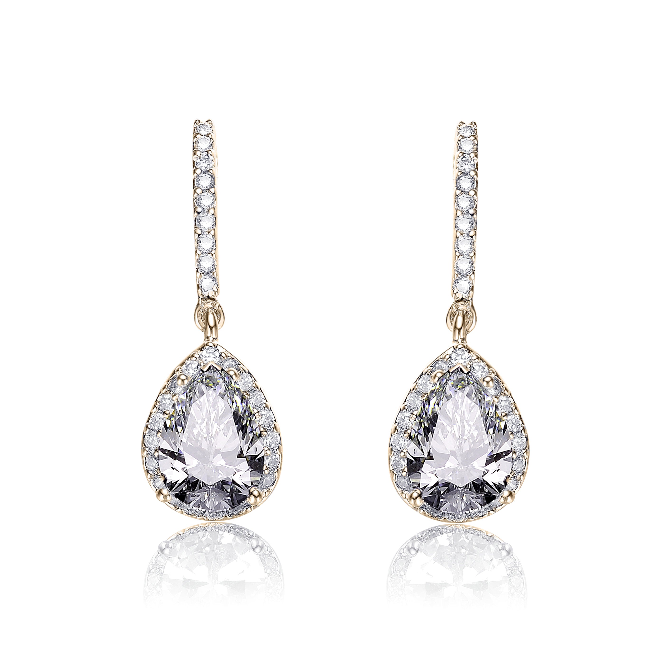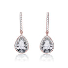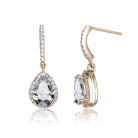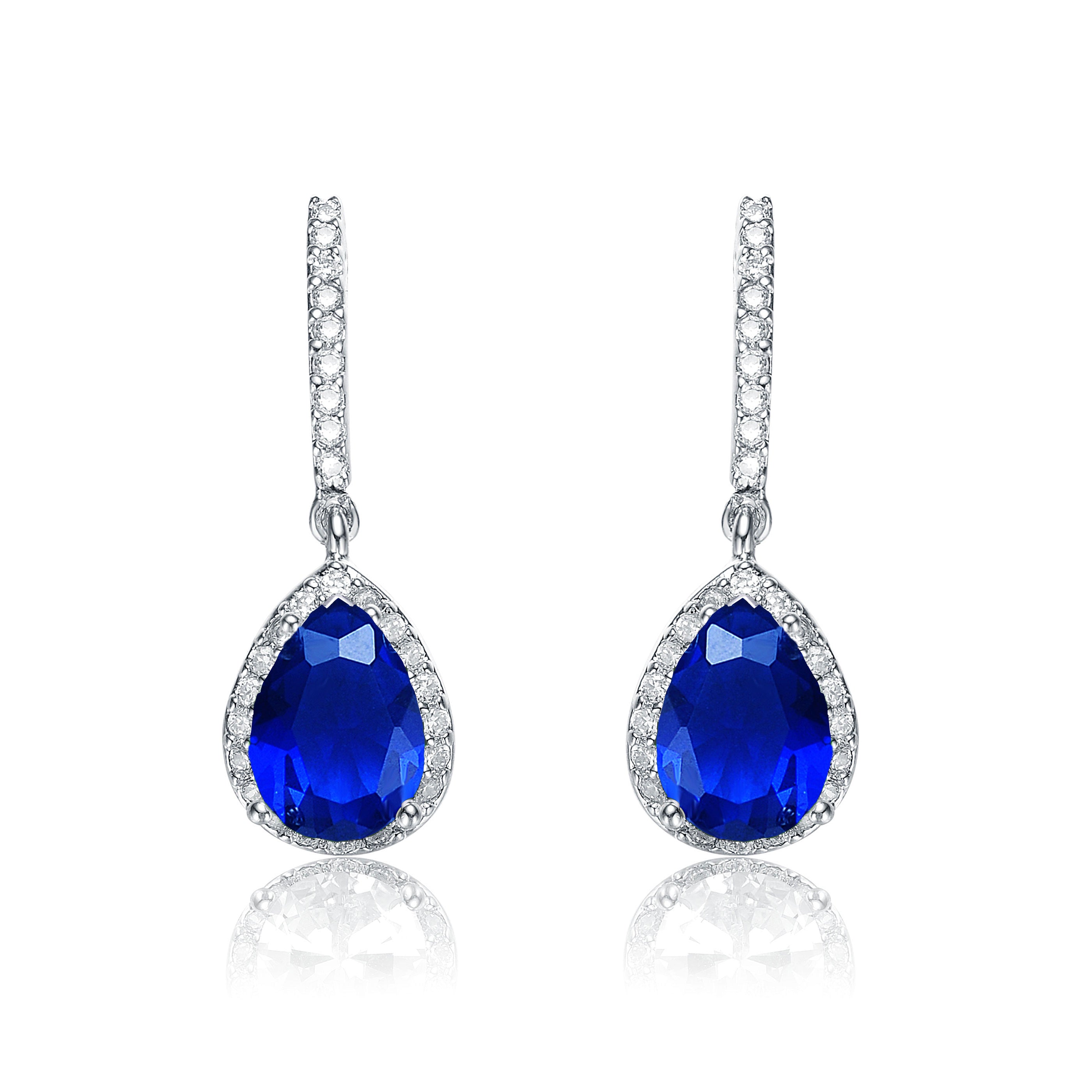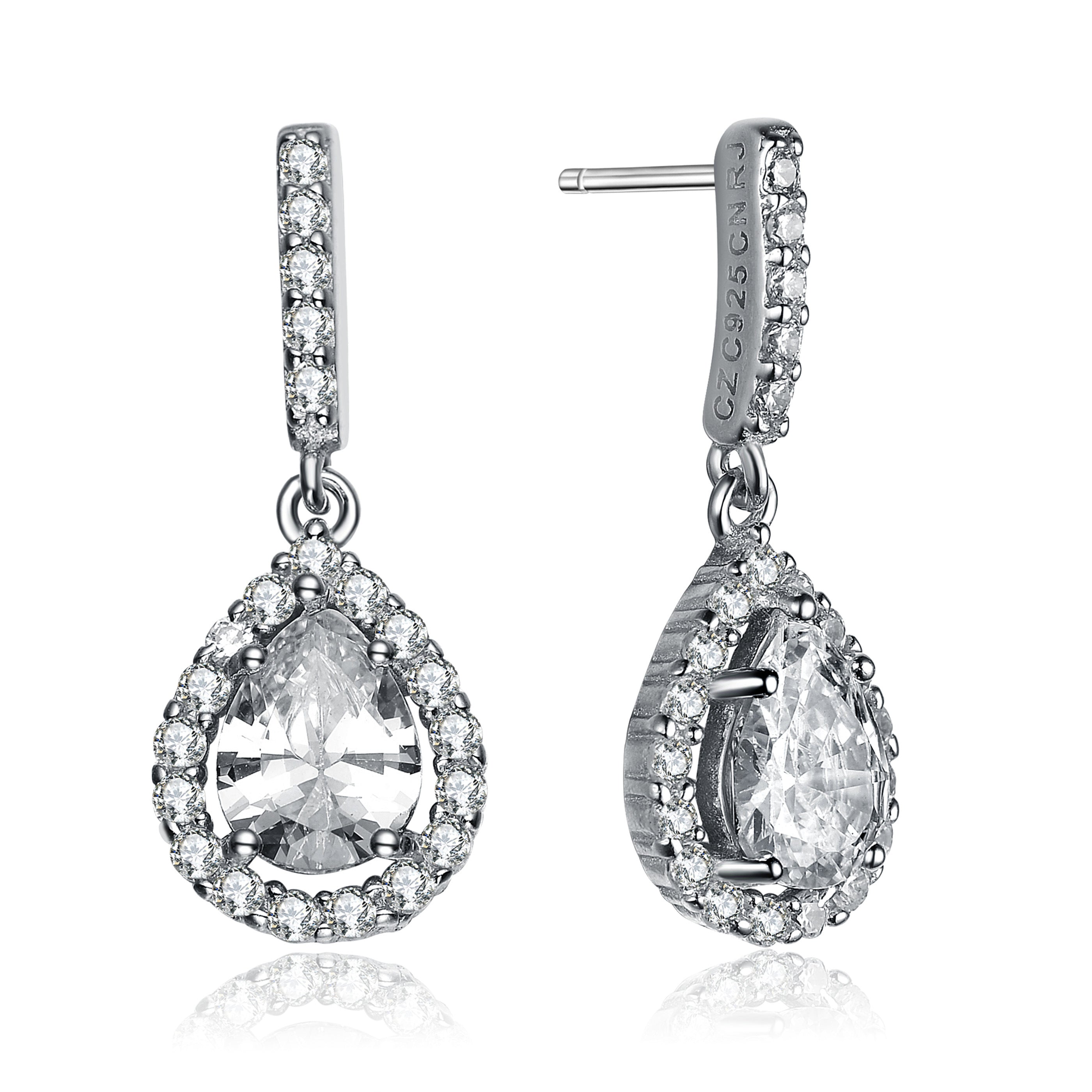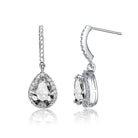 Elegant and refined, these sterling silver drop earrings showcase a pear-shaped center stone framed by sparkling round-cut cubic zirconia accents for added brilliance. Designed to offer timeless sophistication, each pair is crafted from .925 sterling silver and secured with classic butterfly back closures for comfortable wear. A versatile style that transitions effortlessly from day to evening, these earrings are available in your choice of Gold, Rose Gold, Sapphire, or White.