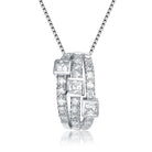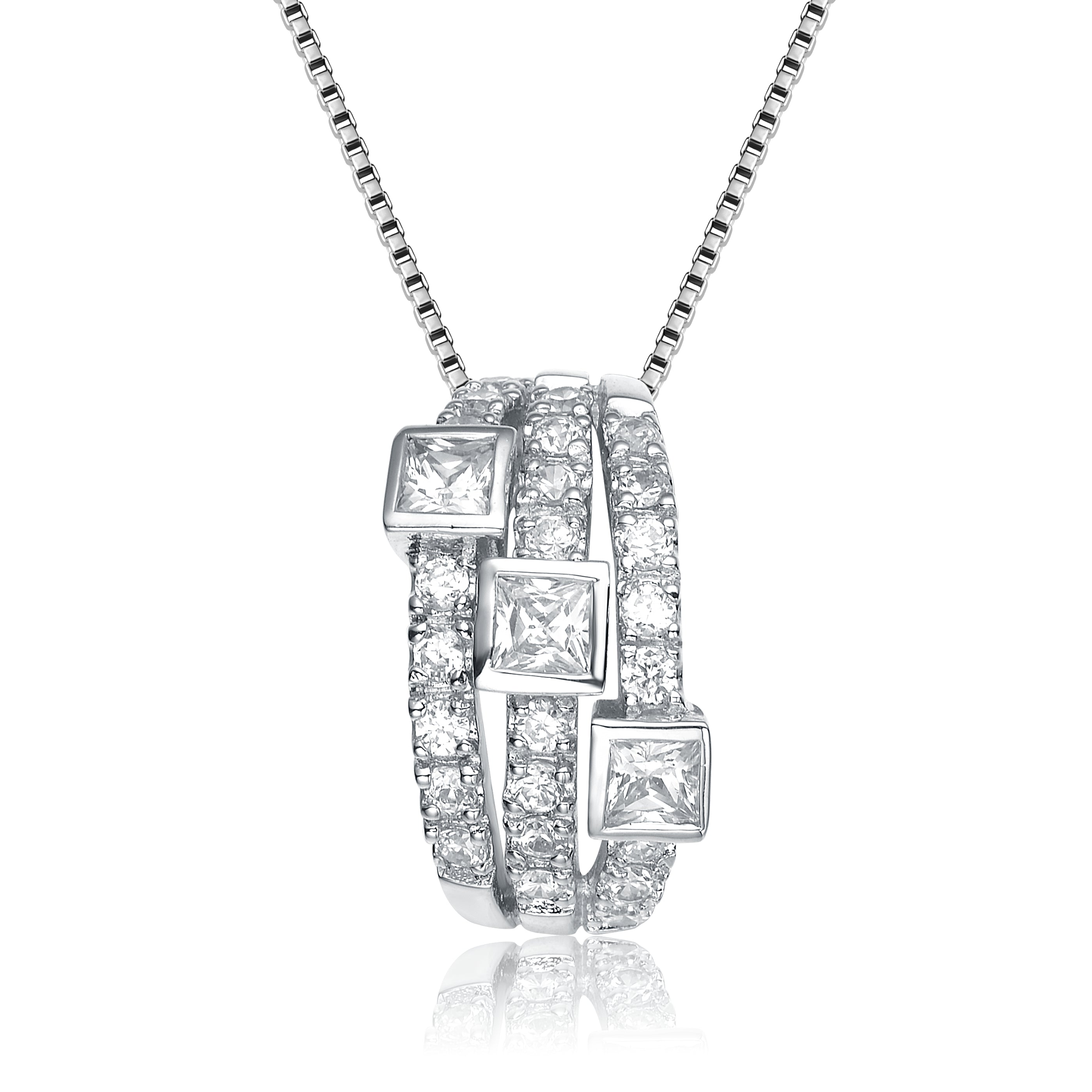 Three rings of clear cubic zirconia stones are side by side in this chic sterling silver necklace. Wear it at night and it will gleam under any light.