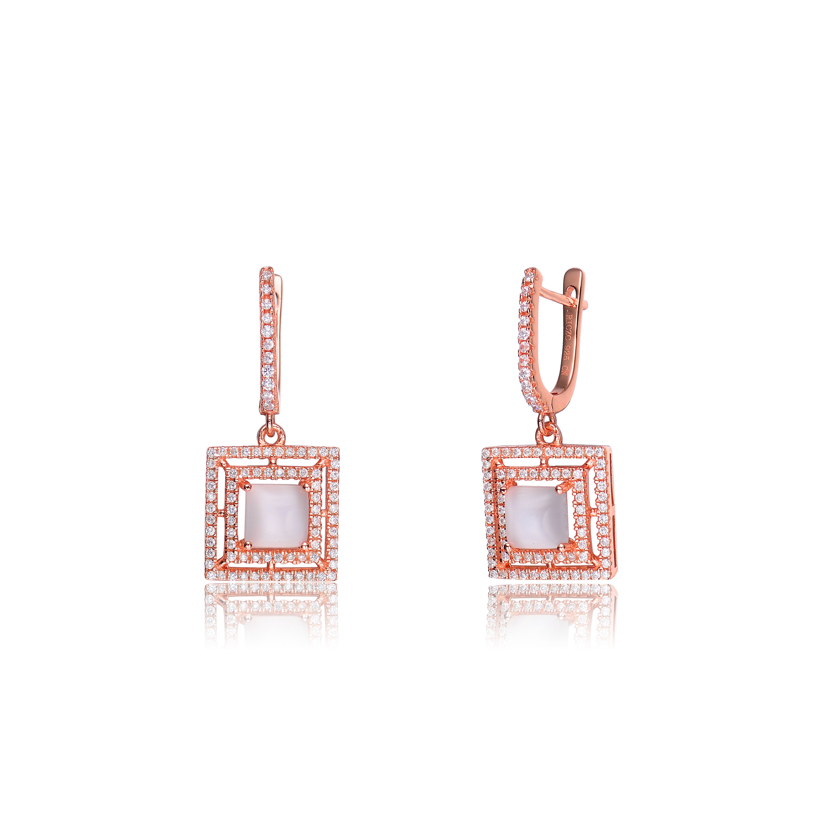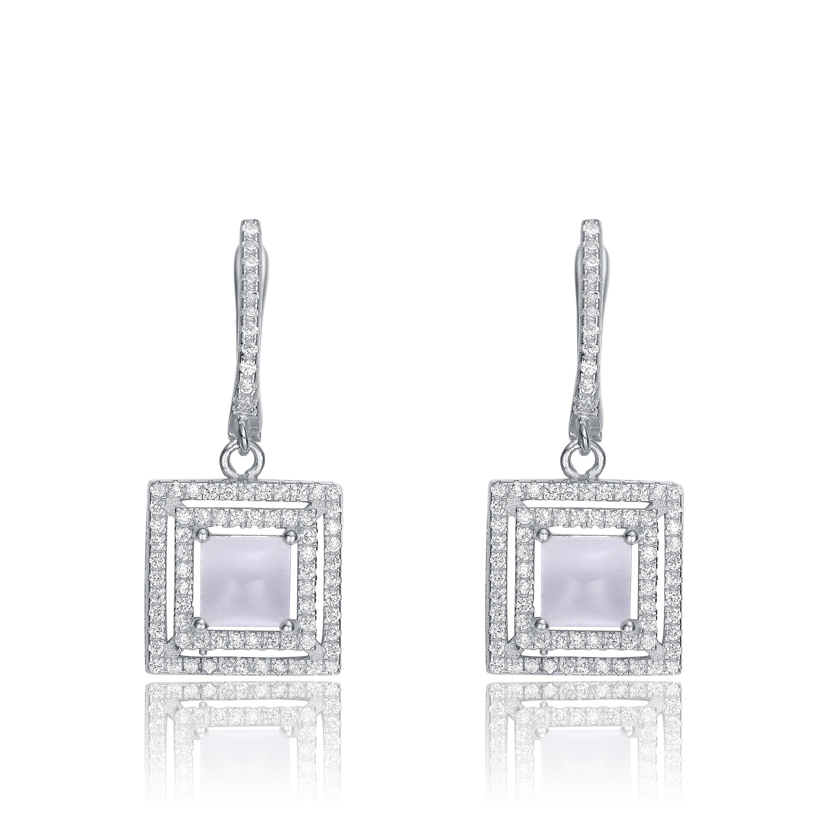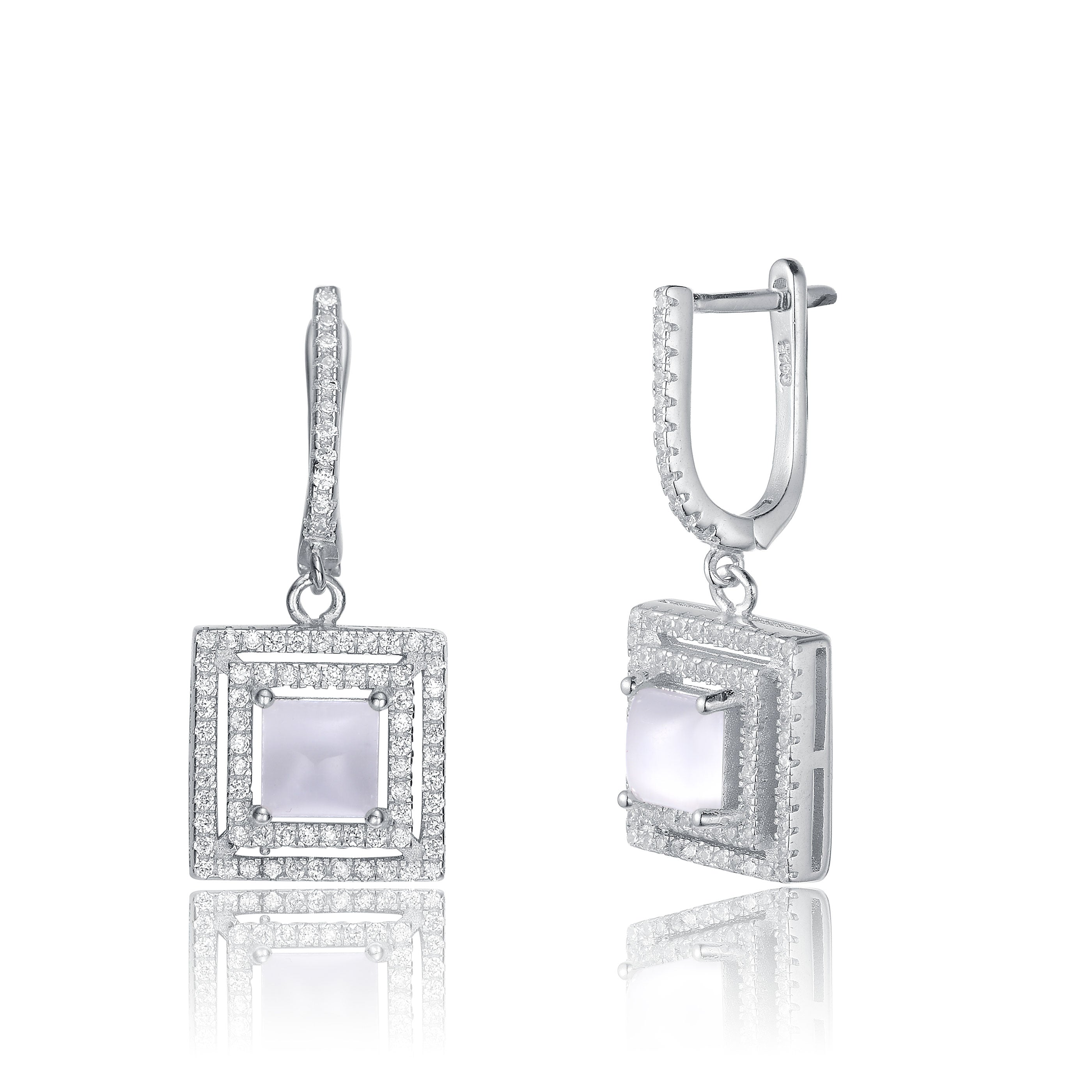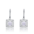 These simple yet stunning earrings are perfect for any occasion. Each set features a gleaming square shaped cubic zirconia stone accented with white solitaires.