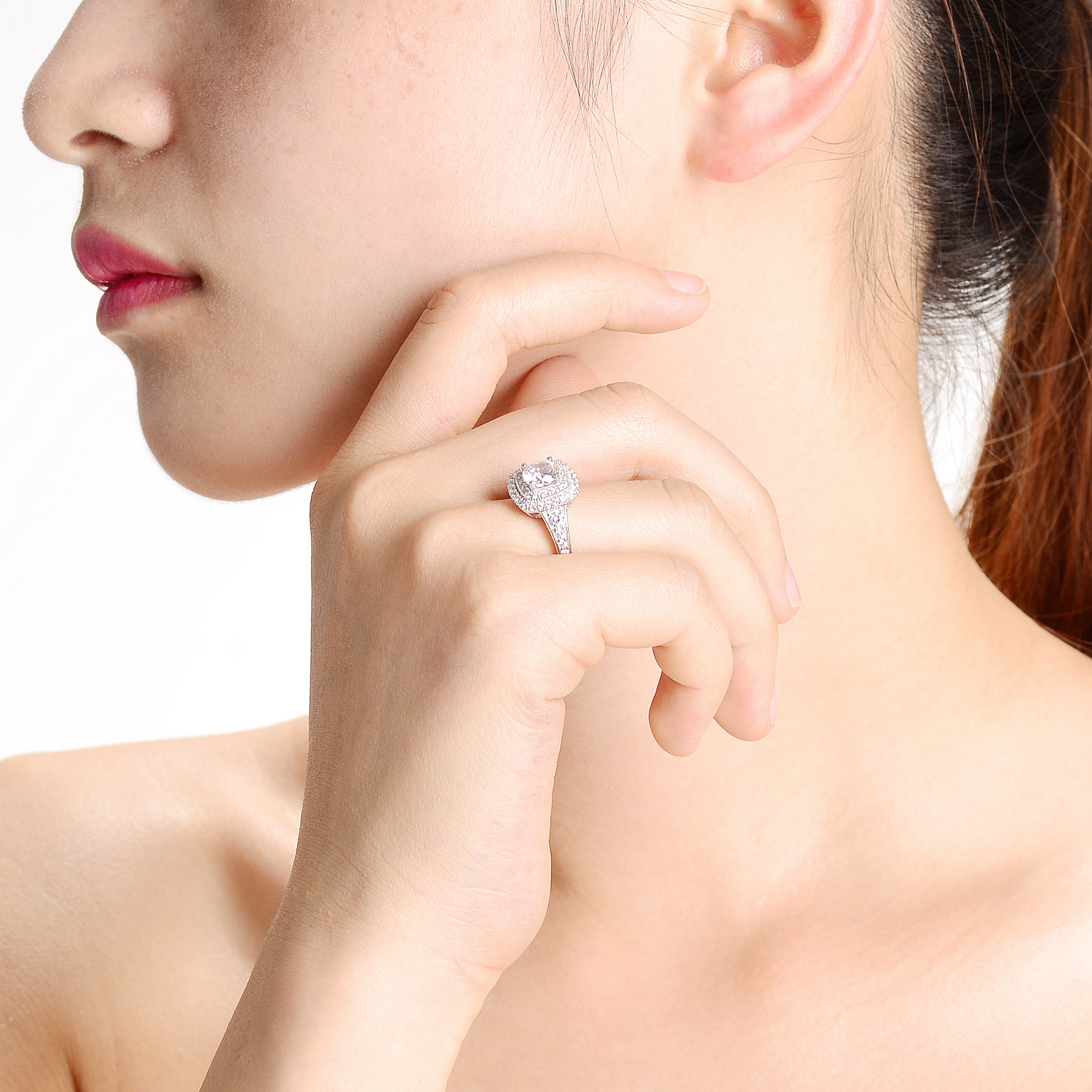 Make a statement when you wear this sterling silver ring. It features layers of clear cubic zirconia stones which are ideal for those who love bling.