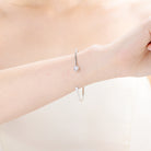 This sterling silver bangle offers a pretty simple approach by using a small solid circle of pave clear cubic zirconia stones. This bracelet is great for casual atmospheres.