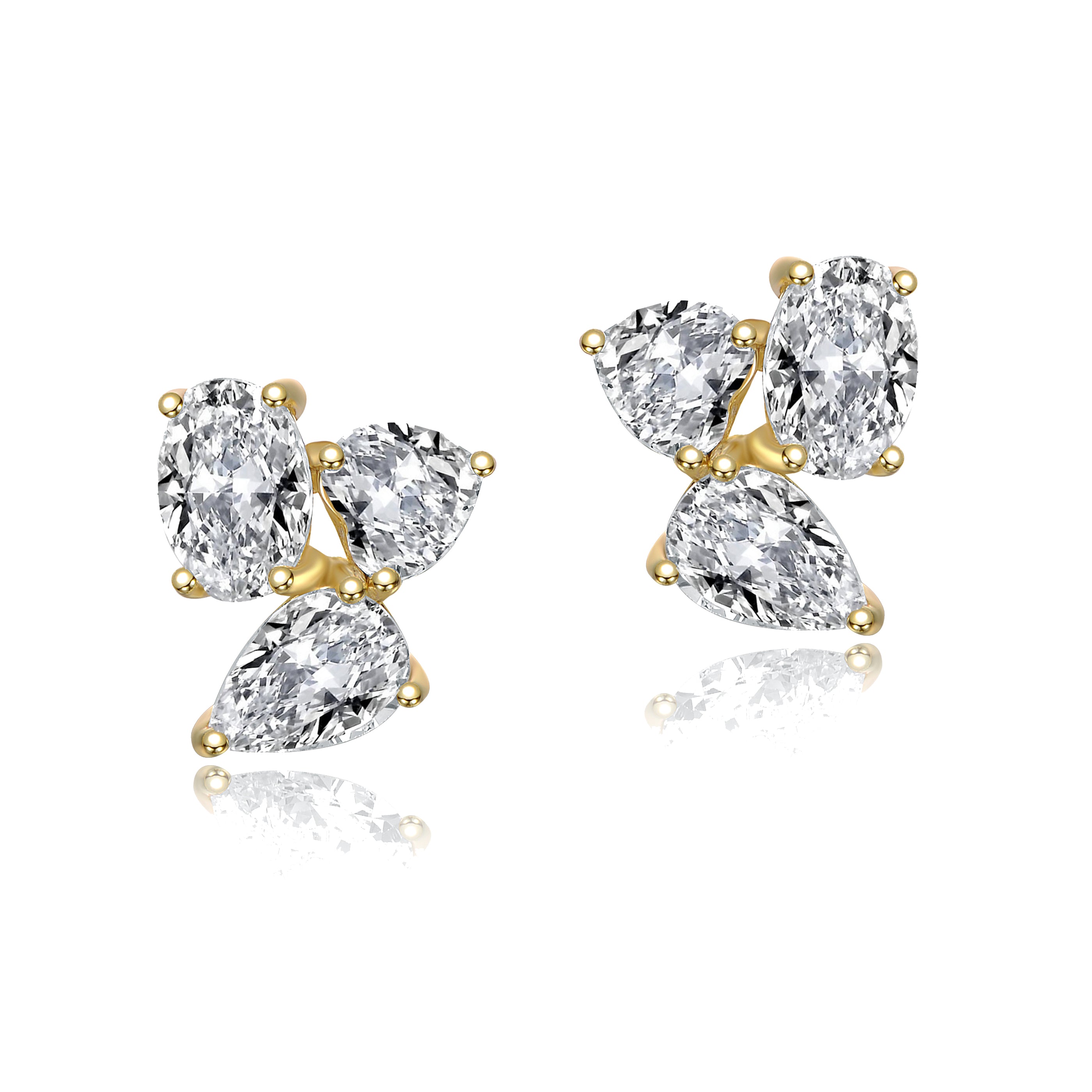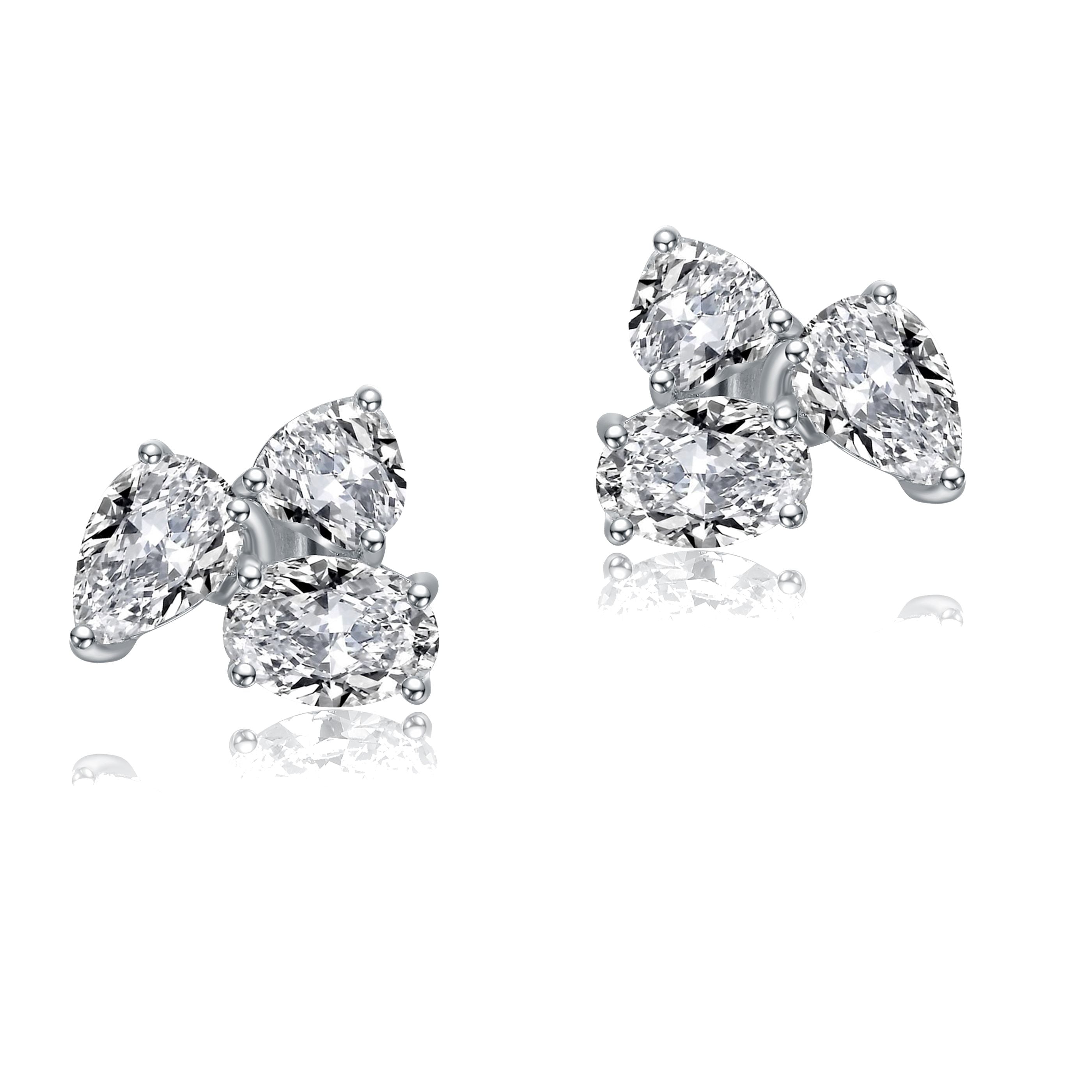 Sterling Silver Cubic Zirconia Triple Cluster Stud Earrings. These brightly polished sterling silver stud earrings feature mixed-cut white cubic zirconia prong set in a dazzling trio of color and sparkle, elevating any look with effortless glamor and a touch of fire. Pin and post backs keep these luxe earrings in place, making them the ultimate way to take your day wardrobe into the night with ease of wear.