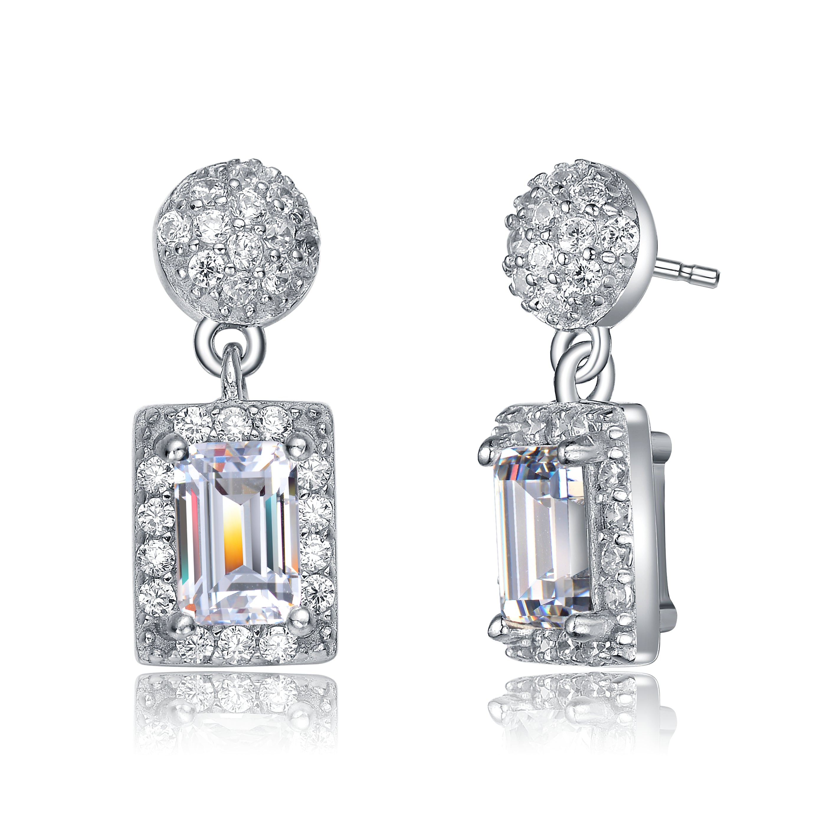 Sterling Silver Emerald Cut Cubic Zirconia Drop Earrings