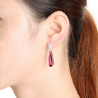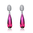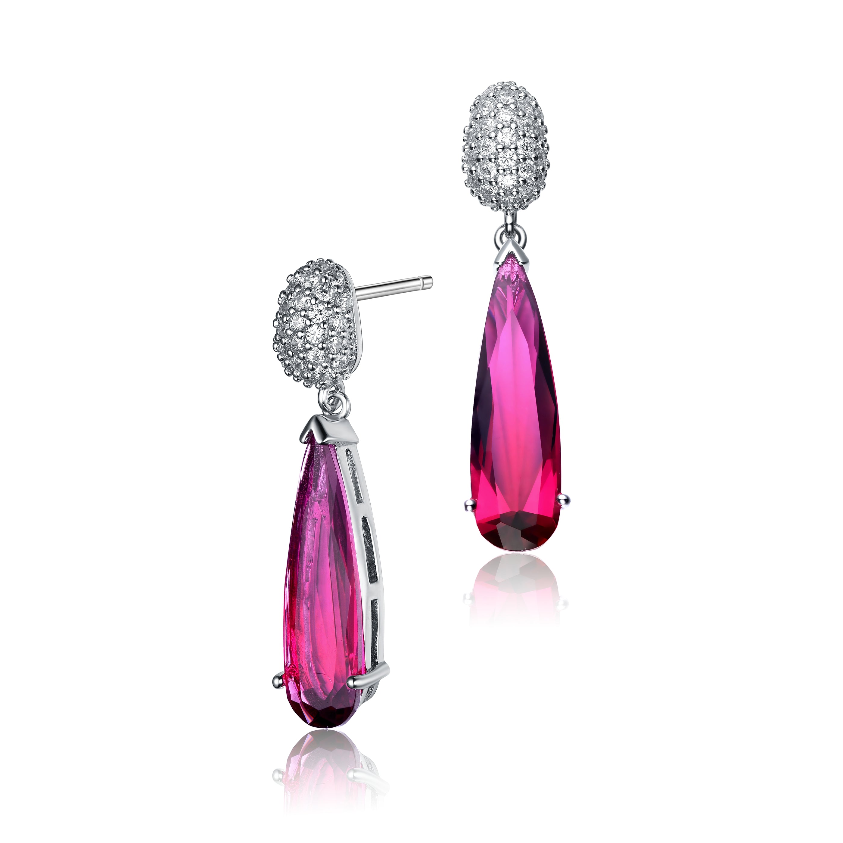 For a chic look, try adding this sterling silver set. It features a large fuchsia cubic zirconia that dangles from a post of pave clear cubic zirconia stones.