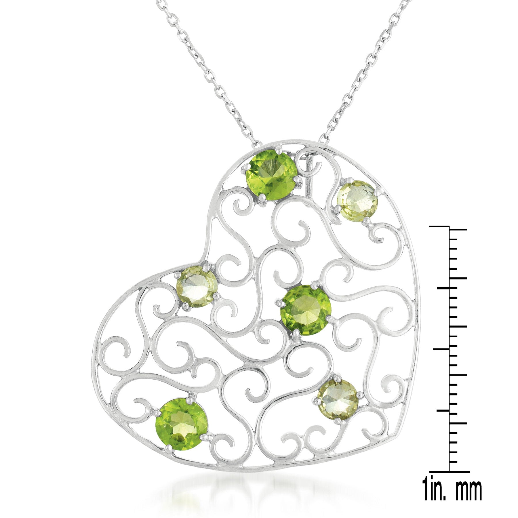 Get to the heart of the matter when owning this sterling silver necklace. It is crafted into an intricate heart shape and features peridot stones.