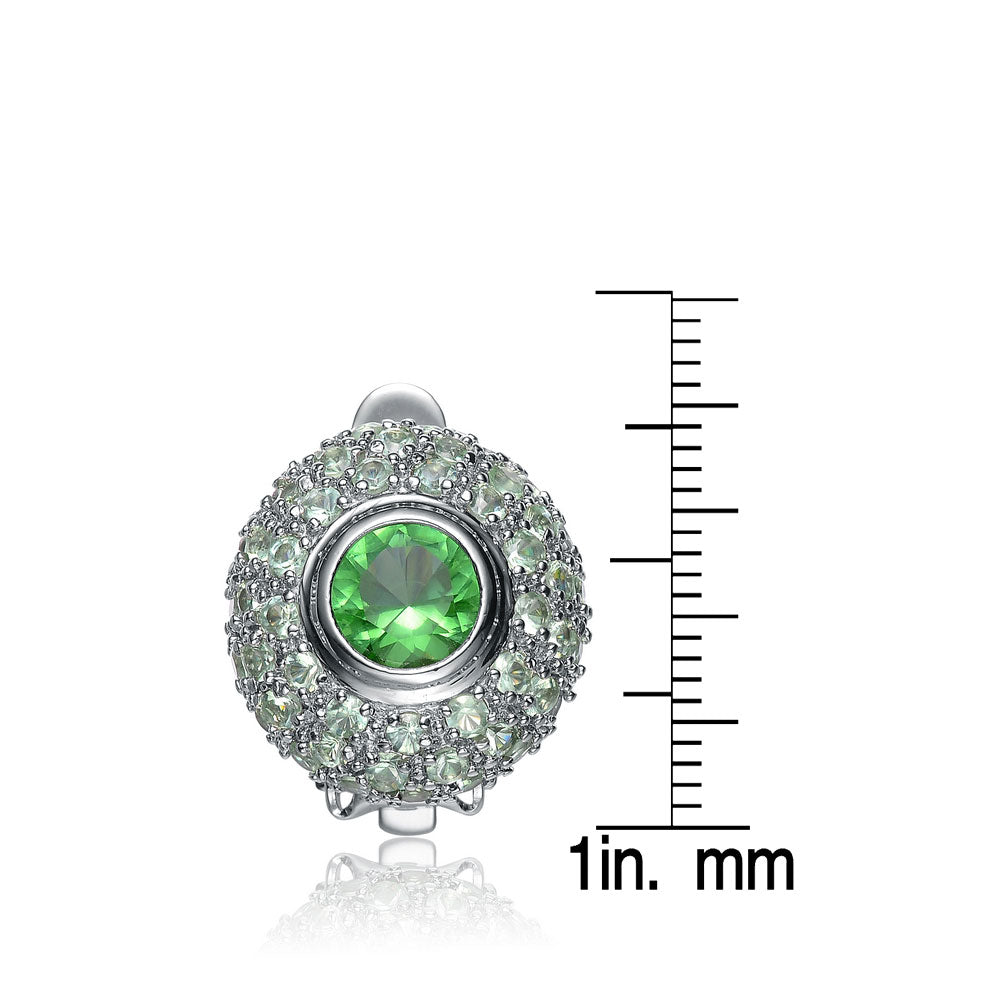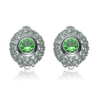 These bewitching set of stud earrings have an antique feel. A green circular cubic zirconia is at the forefront and surrounded by clear cubic zirconia stones.Β
