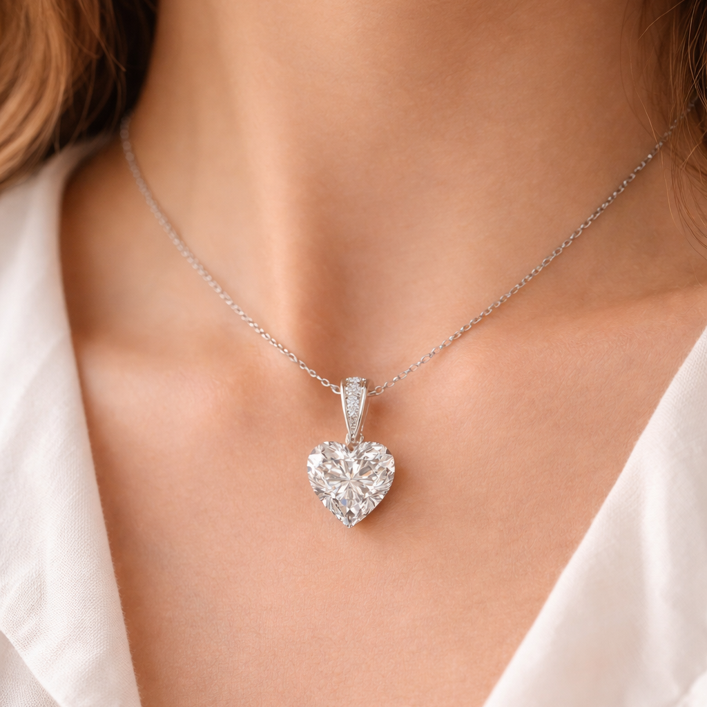 This fine lovely classic pendant features a white dazzling heart-shape cubic zirconia stone. Crafted of .925 sterling silver the necklace secures with a spring ring clasp. Comes in more colors so that your collection grows.