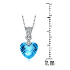 This enchanting sterling silver necklace has a large light blue cubic zirconia stone shaped like a heart; this huge stone is attached to a large silver clasp using a -shaped, intricately-designed silver piece. The clasp also has its fair share of attention with a detailed silver design.